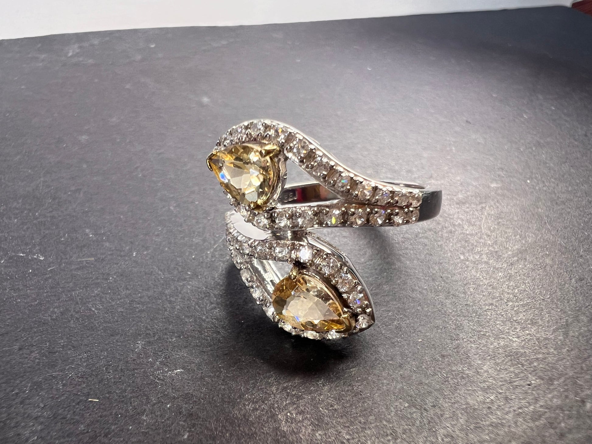 Yellow Beryl and Zircon Sterling Silver Bypass Ring size 9