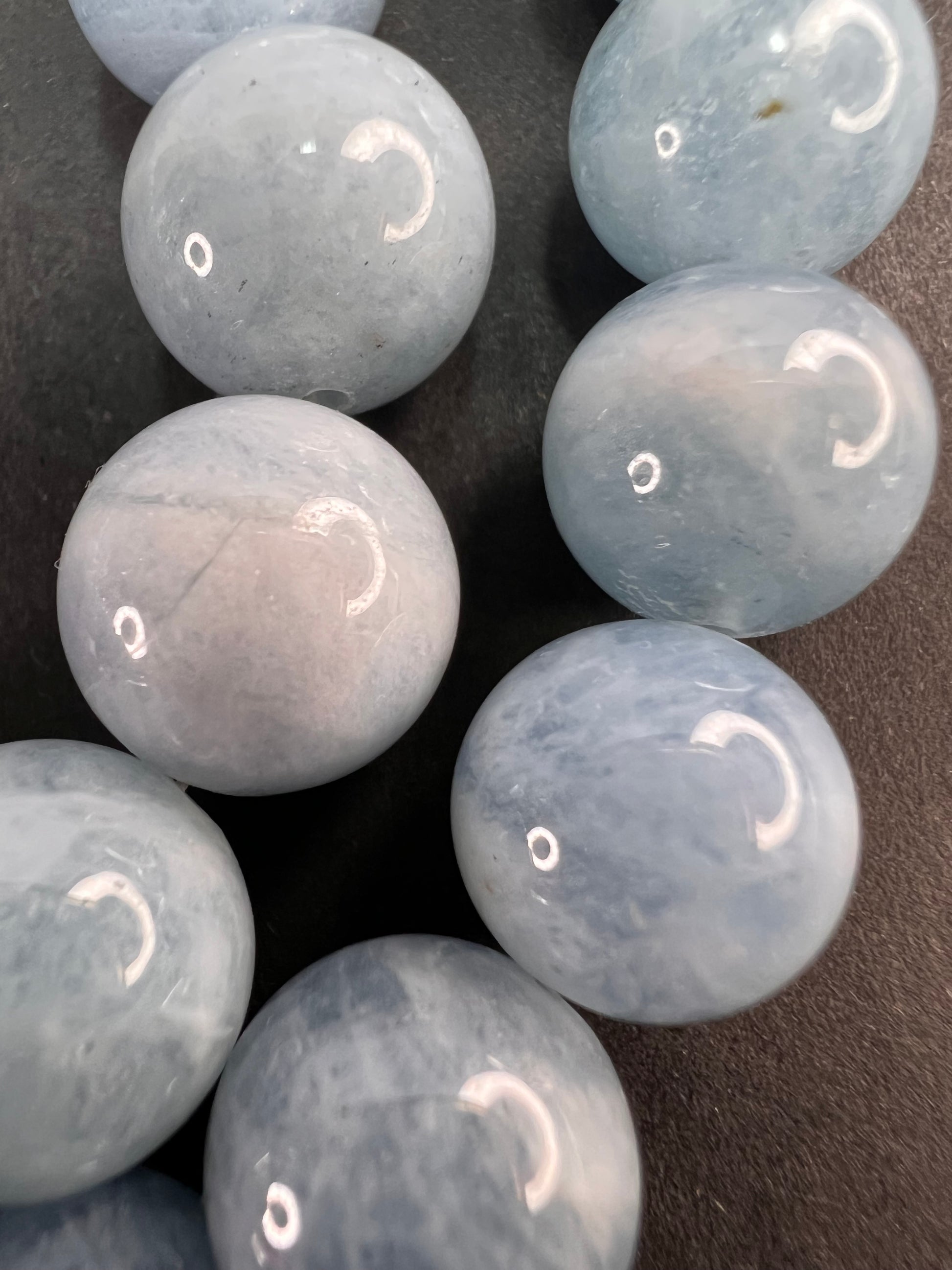 Aquamarine 11mm beaded necklace with sterling silver clasp