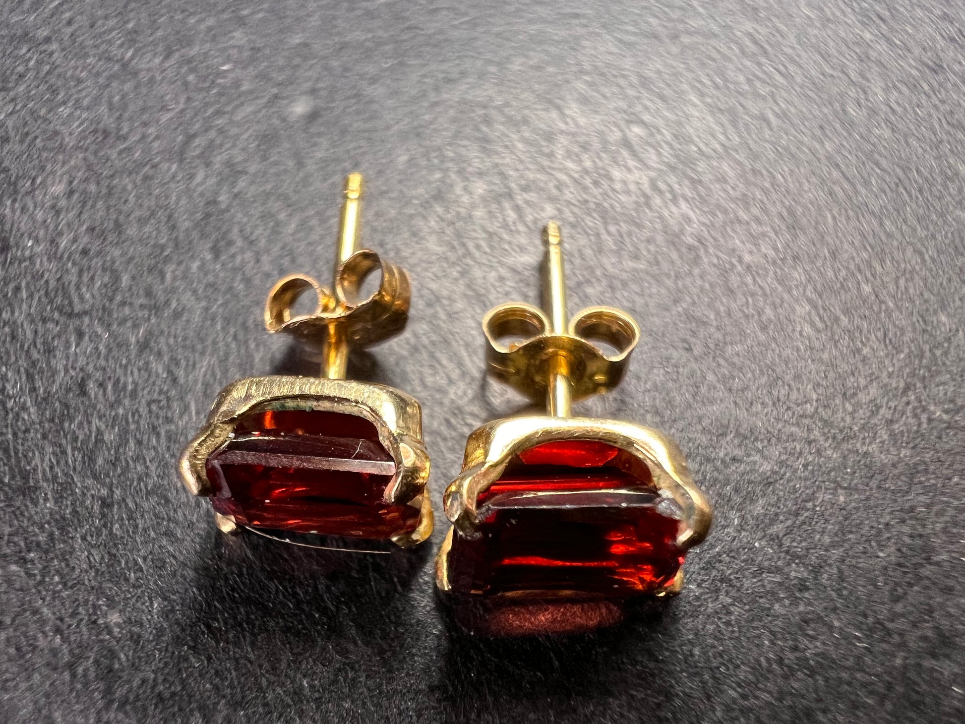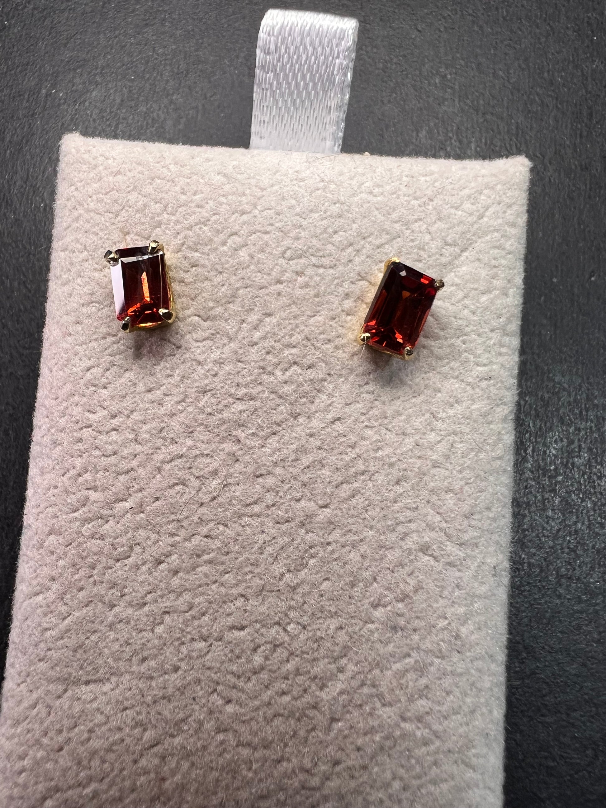 14k Gold Emerald-Cut Garnet Stud Earrings
