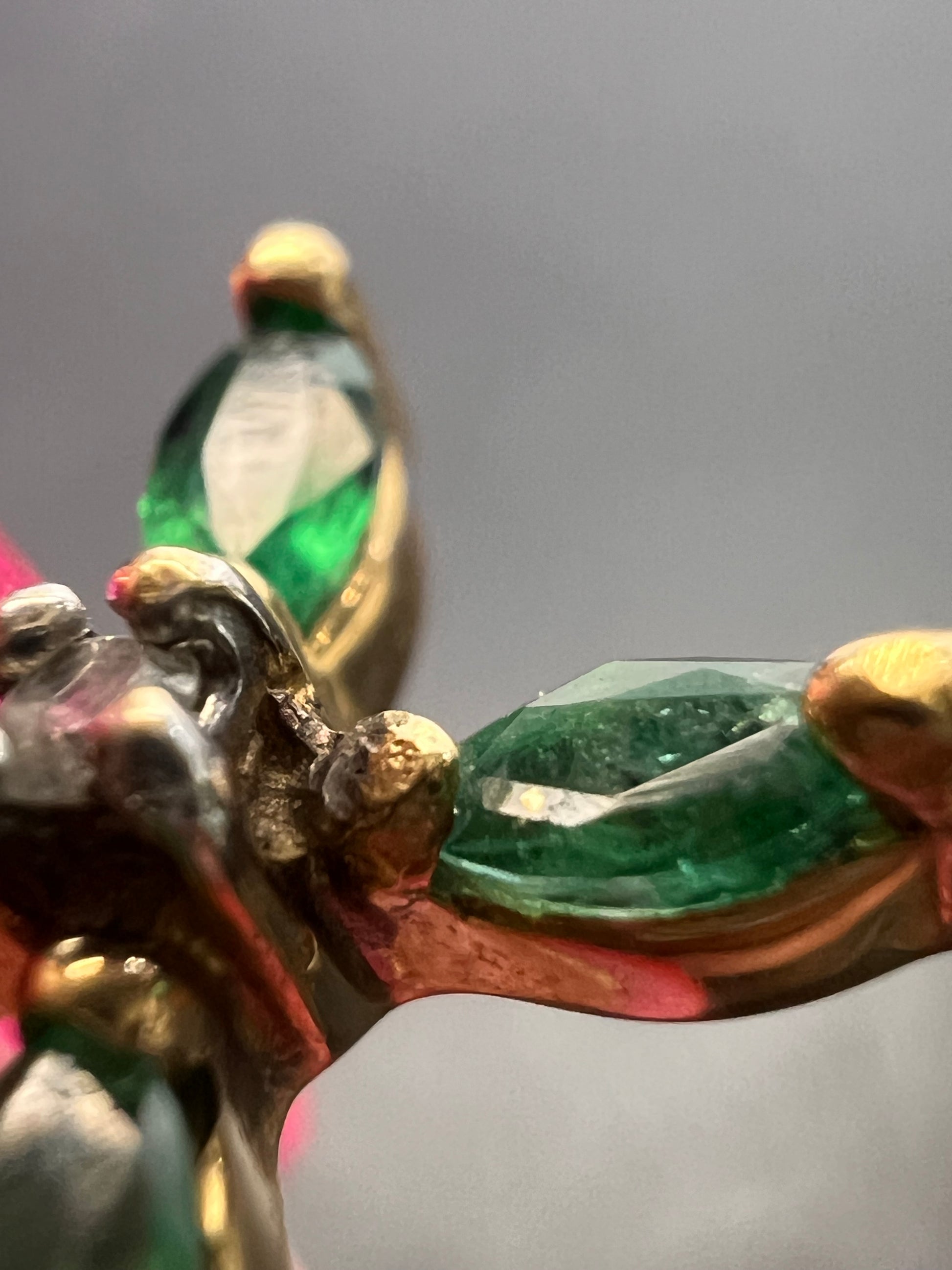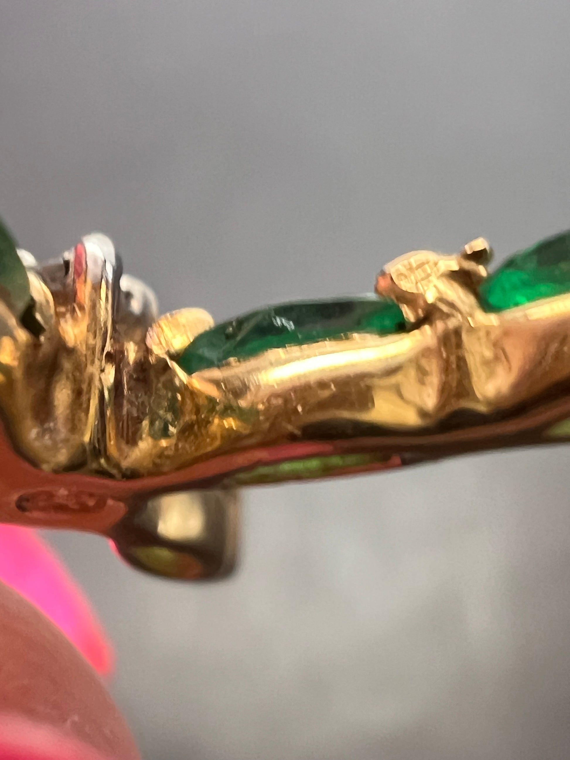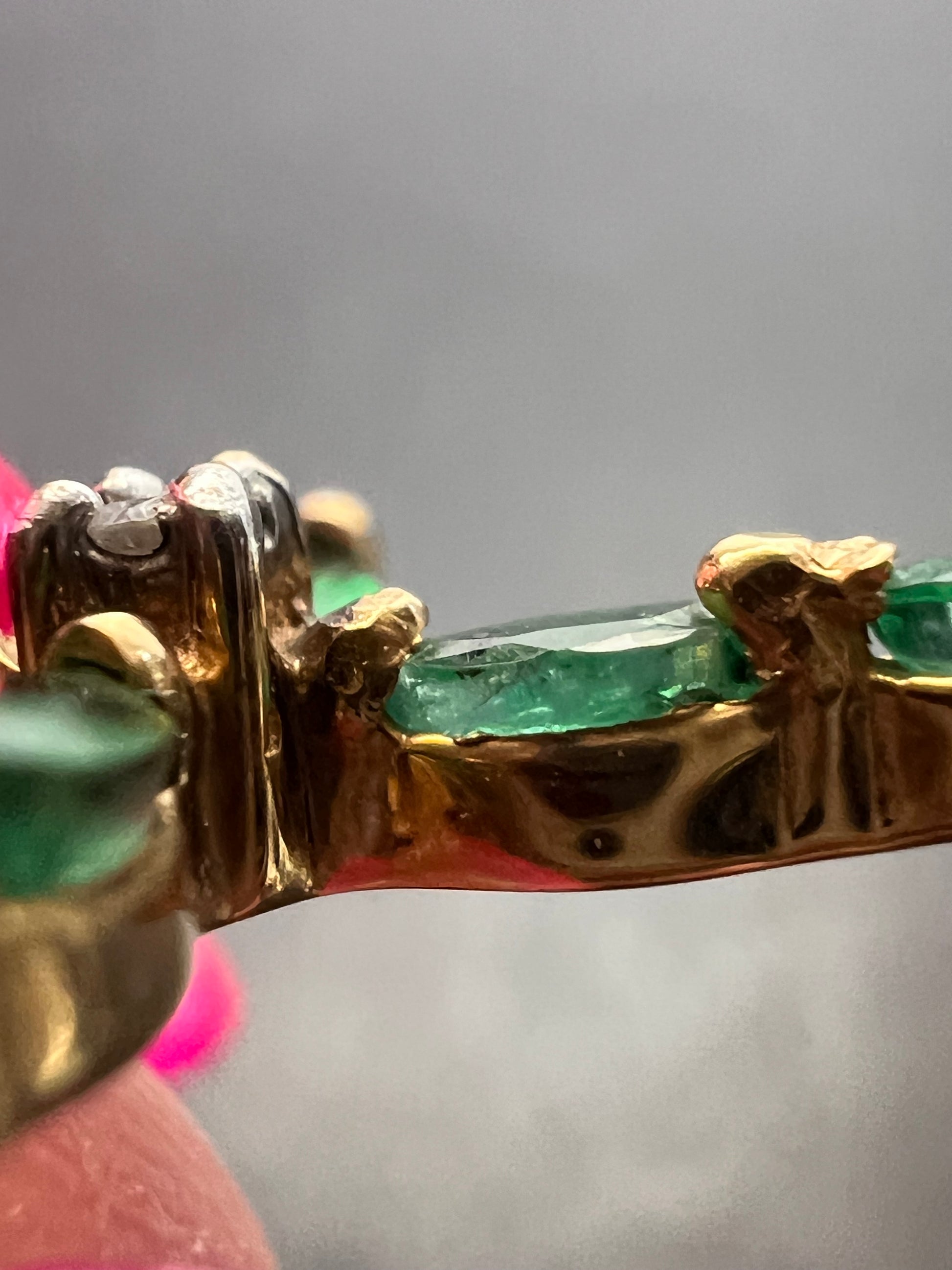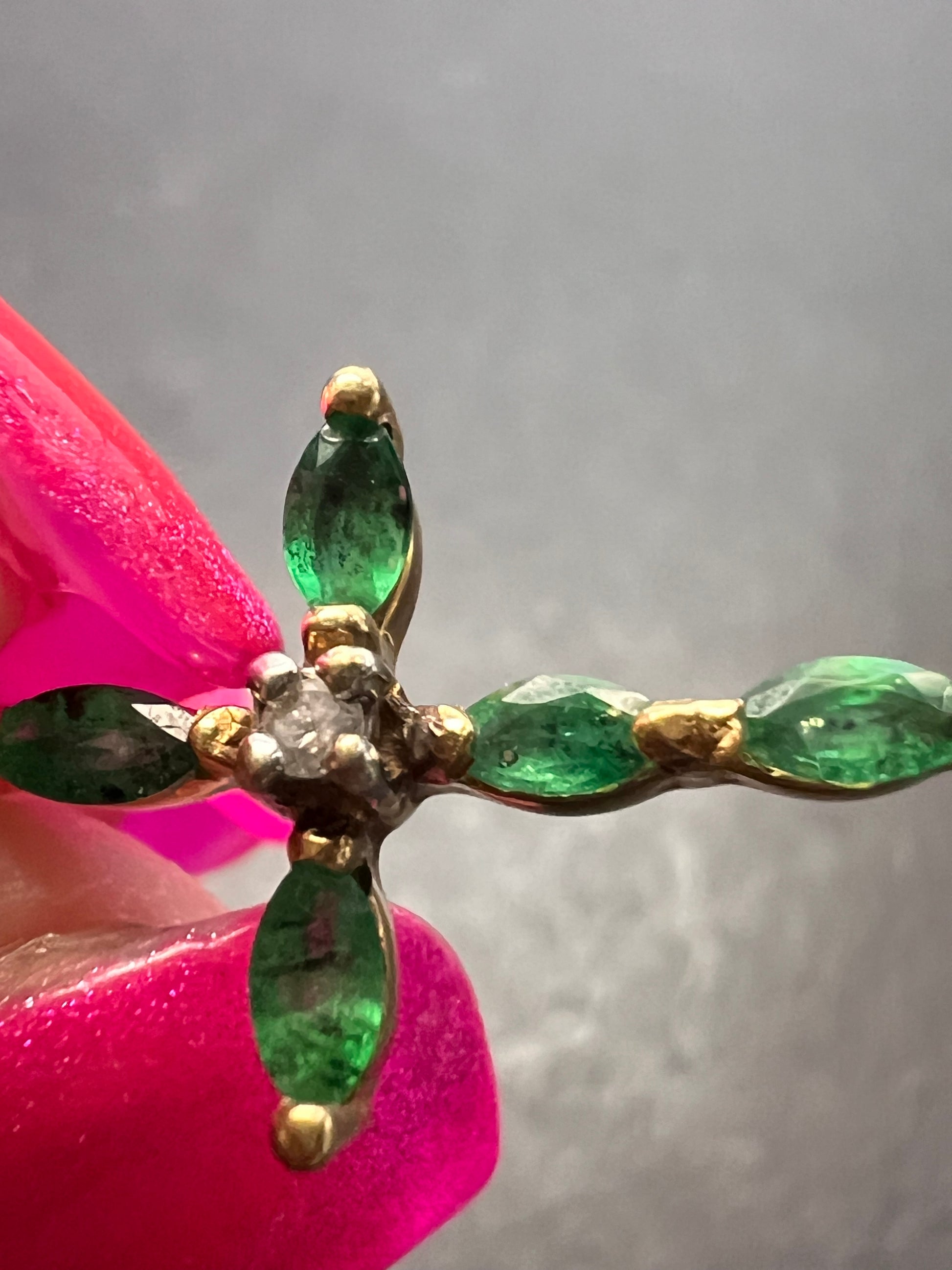 14k yellow gold cross pendant with emeralds and a diamond in the center. Stones have been tested for authenticity . Gold has been acid tested for purity. Total weight is 1.18 grams