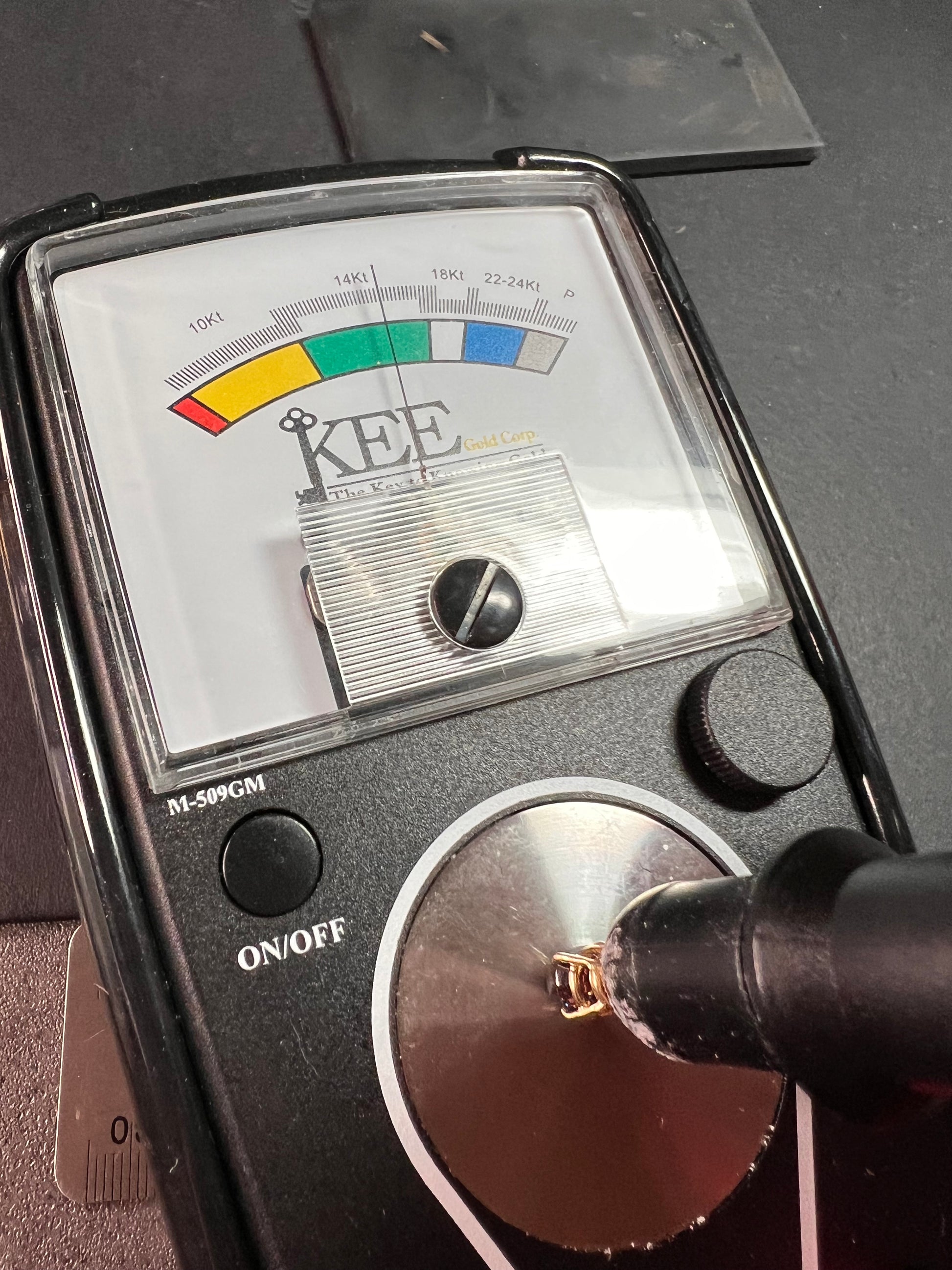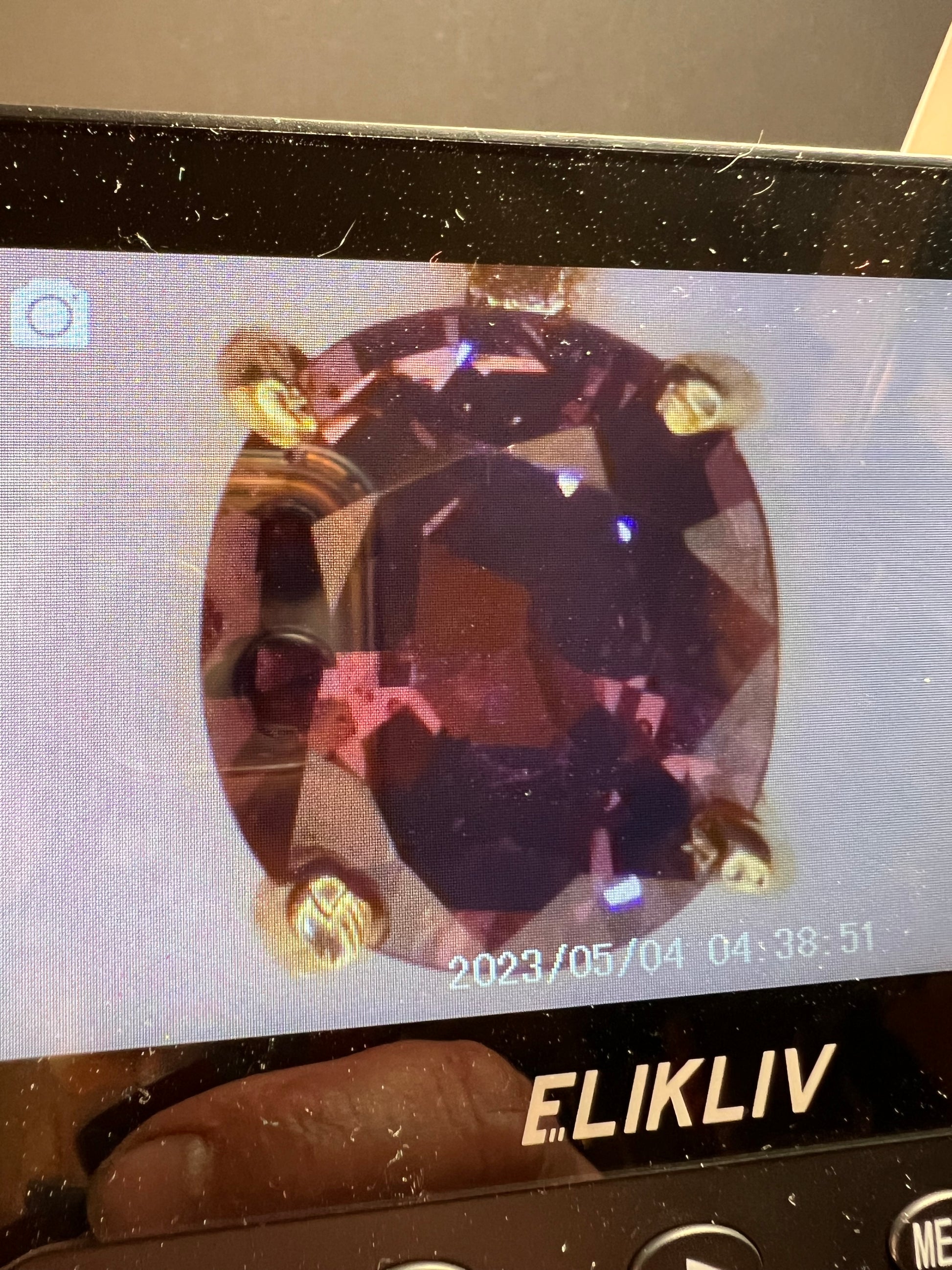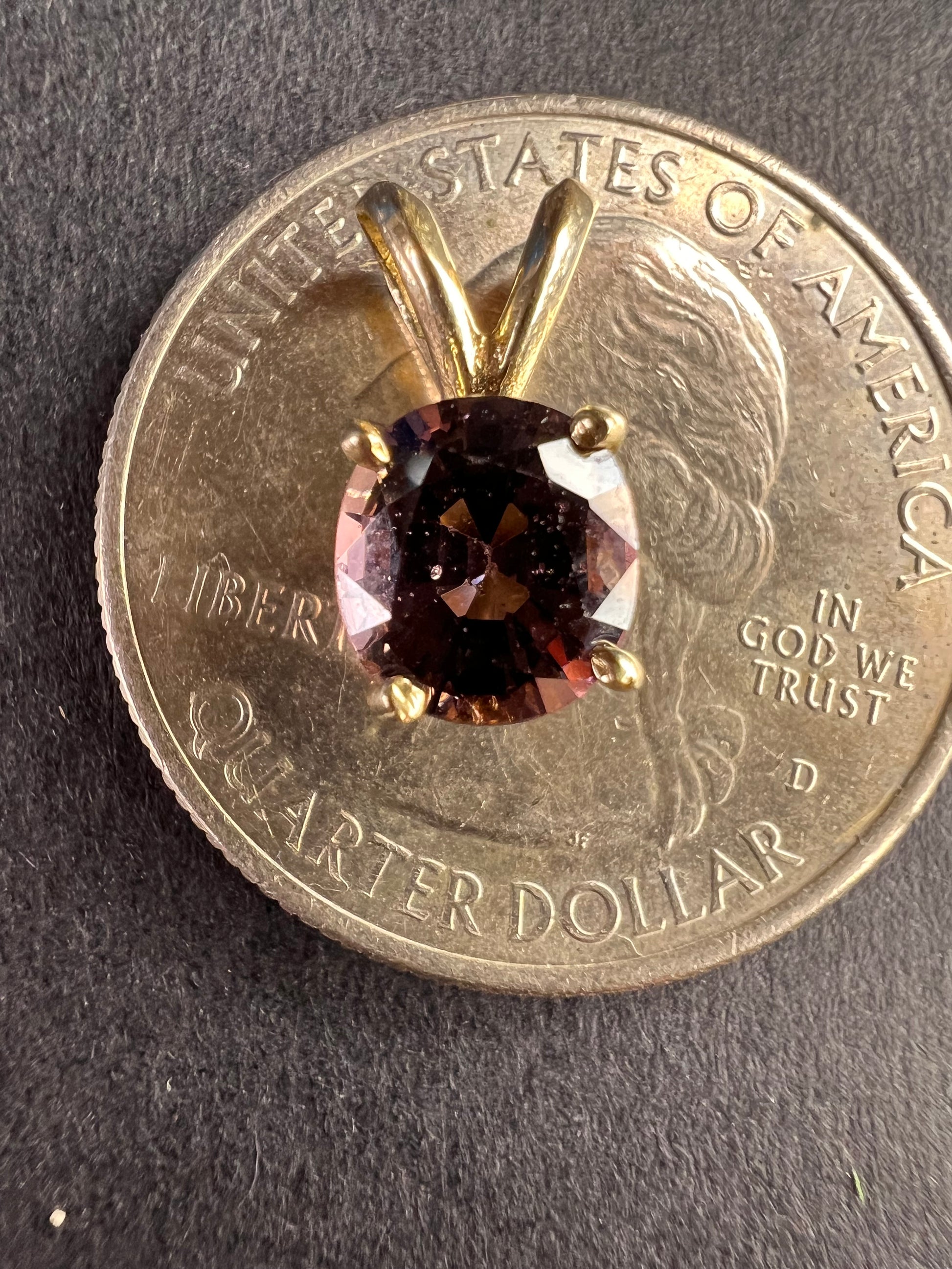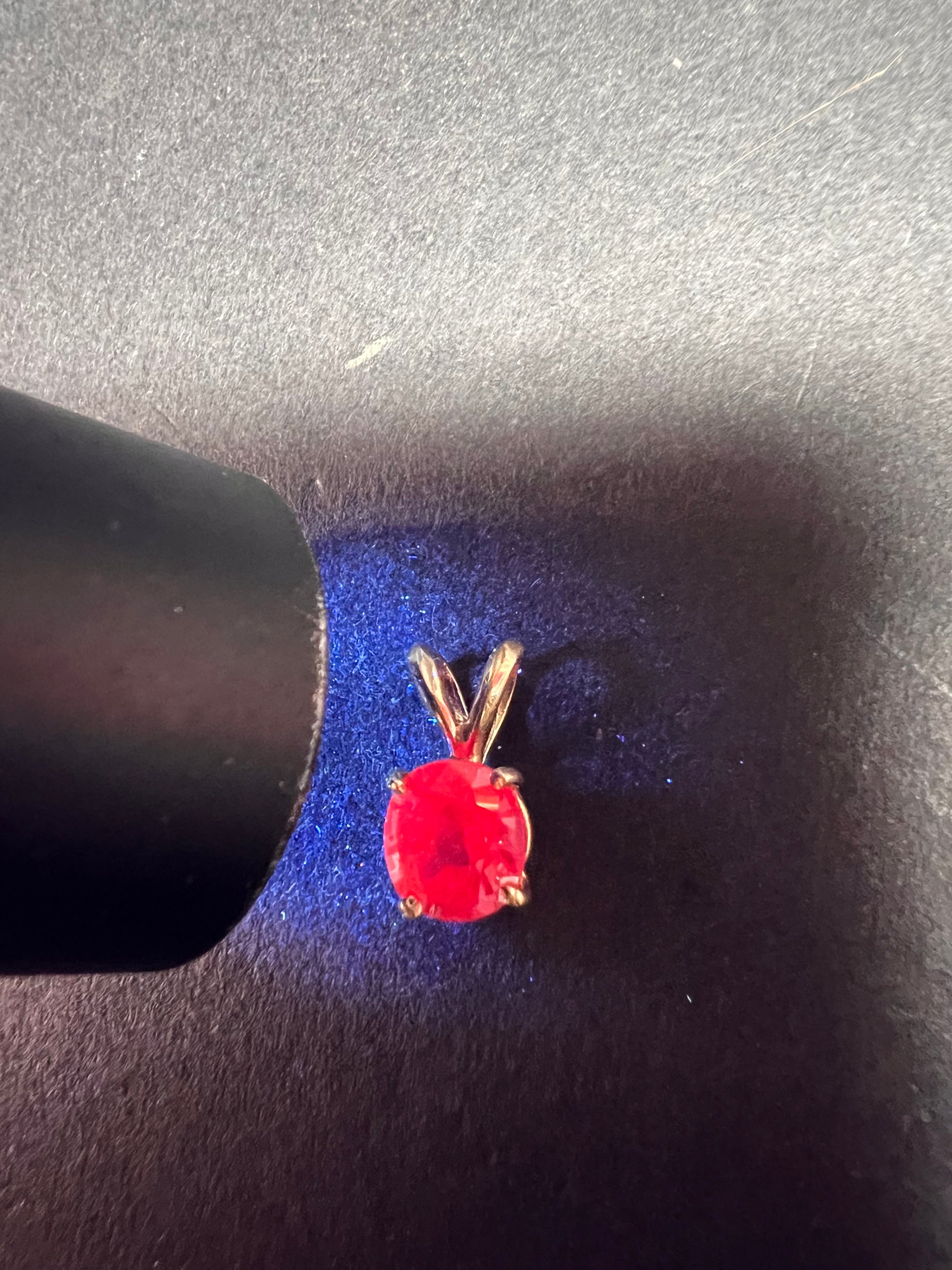 Purple spinel gemstone prong set in authentic 14k yellow gold. Stones measures roughly 6.5mm x 7mm. No purity stamp found on pendant but it has been acid tested , tested with a Kee gold tester as well as my local refinery. (See photos). Gemstone has been tested with a presidium gem tester as well as viewed under magnification and verified through a jeweler but no papers as that’s an extra costly expense. Spinel had lots of natural inclusions and glows bright red under UV light and has a total weight of .83 grams. This is for the pendant only. Chain not included.