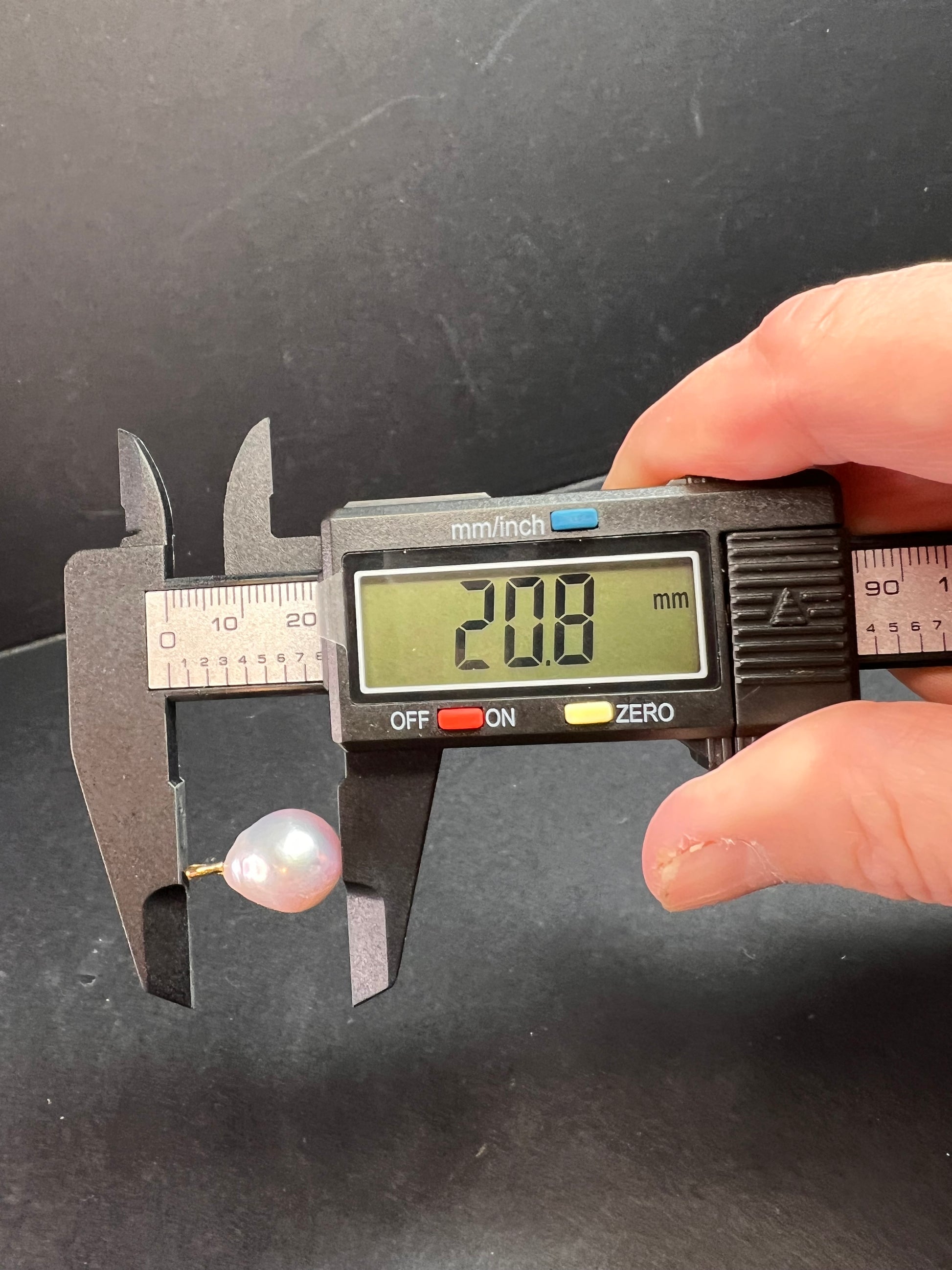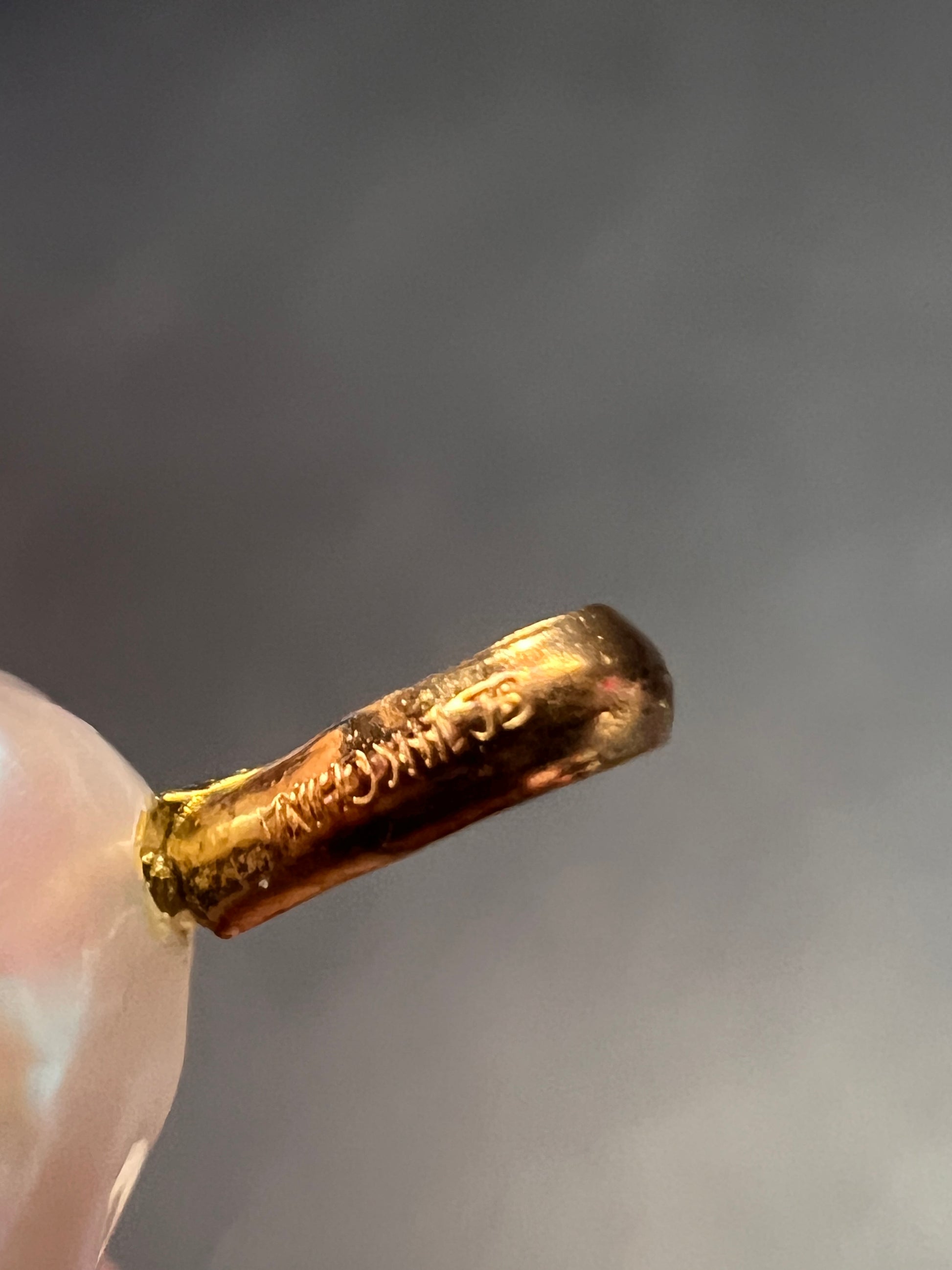 Genuine baroque pearl measuring 20.8x12.5 mm with a 14k authentic rose gold pendant bale. Gold has been acid tested for purity verification. Total weight is 3.17 grams. Pearl color is a light pink to mauve color. Stamps include 76 14k China