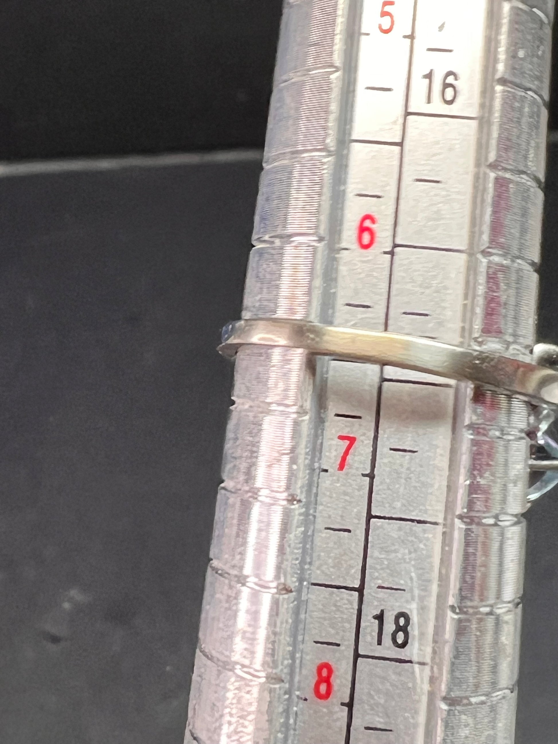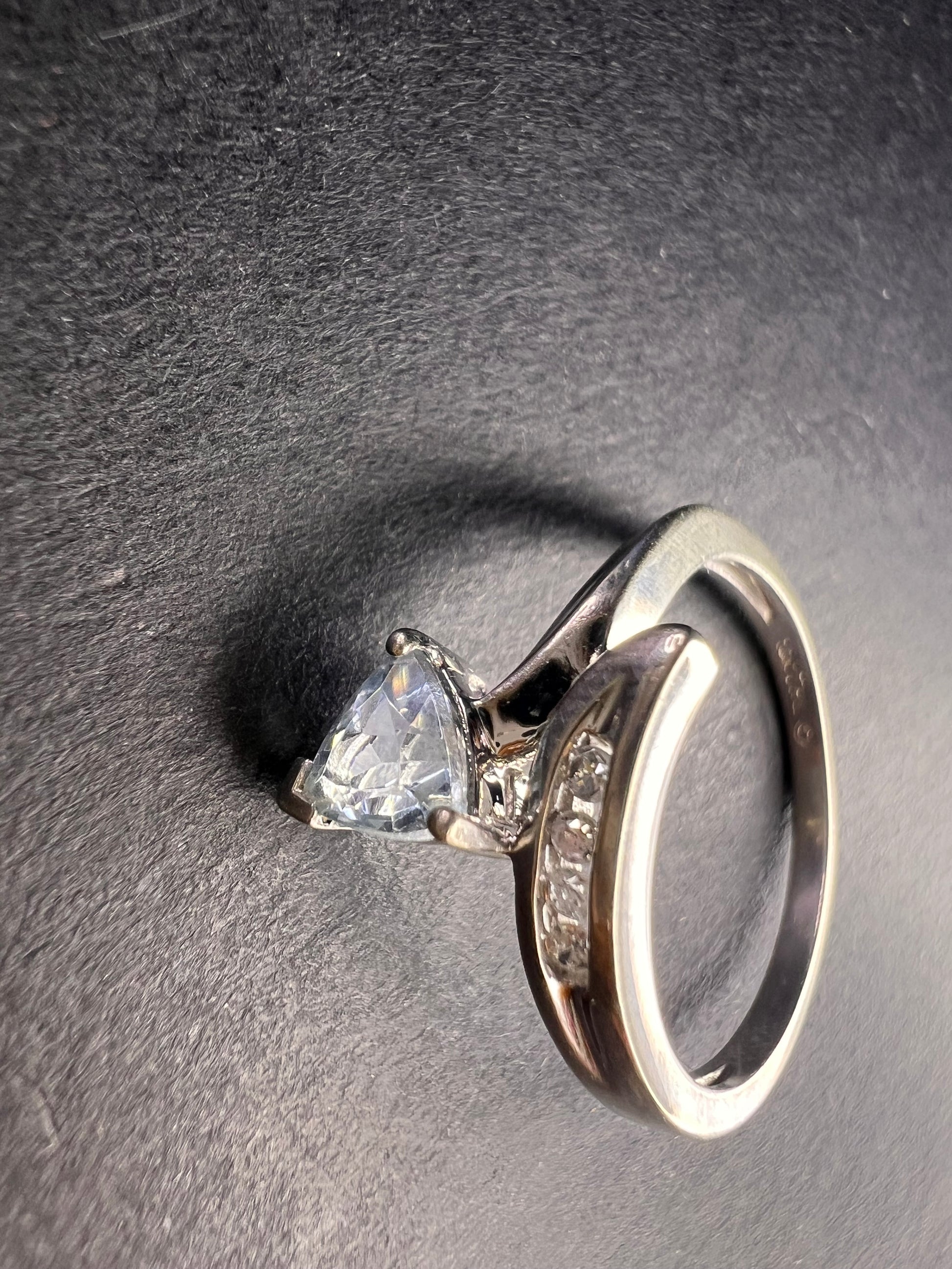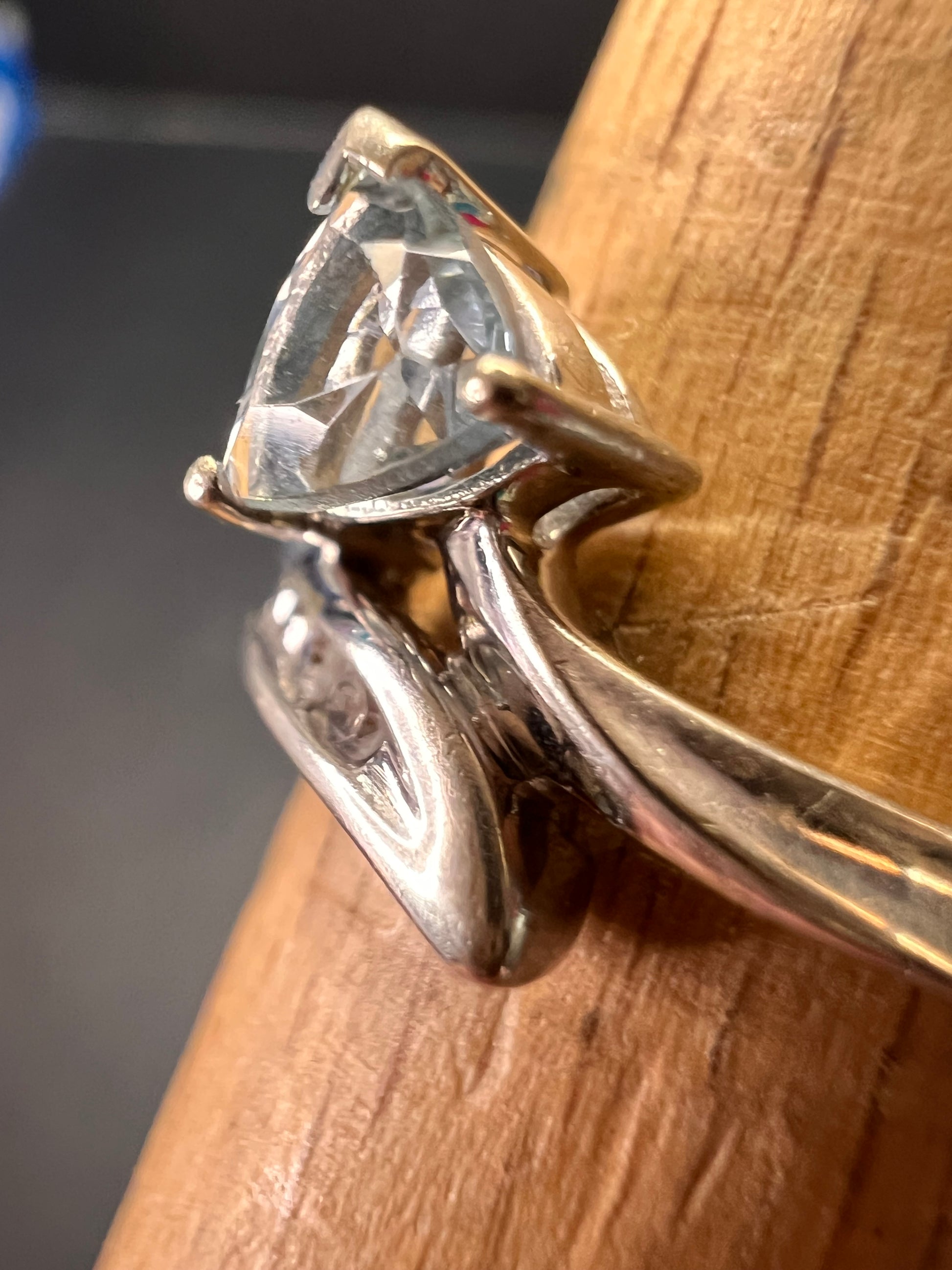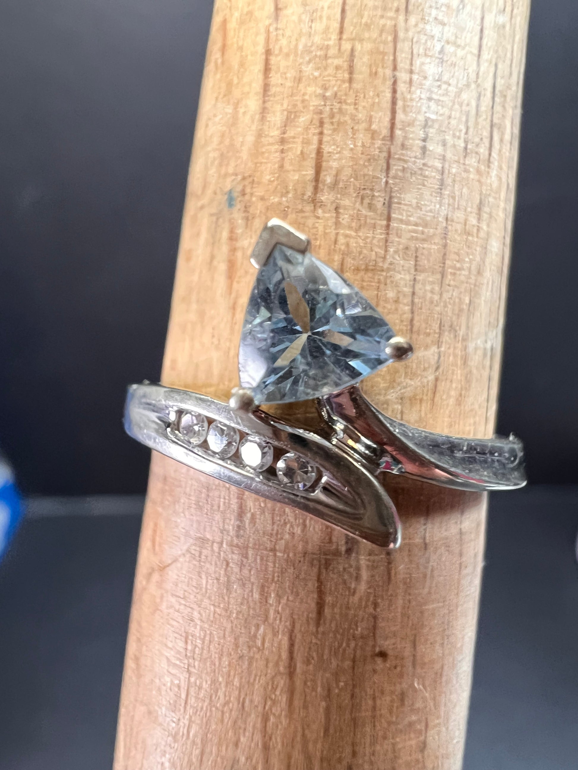 14k white gold Samuel Aaron trillion cut aquamarine and diamond ring size 6.5