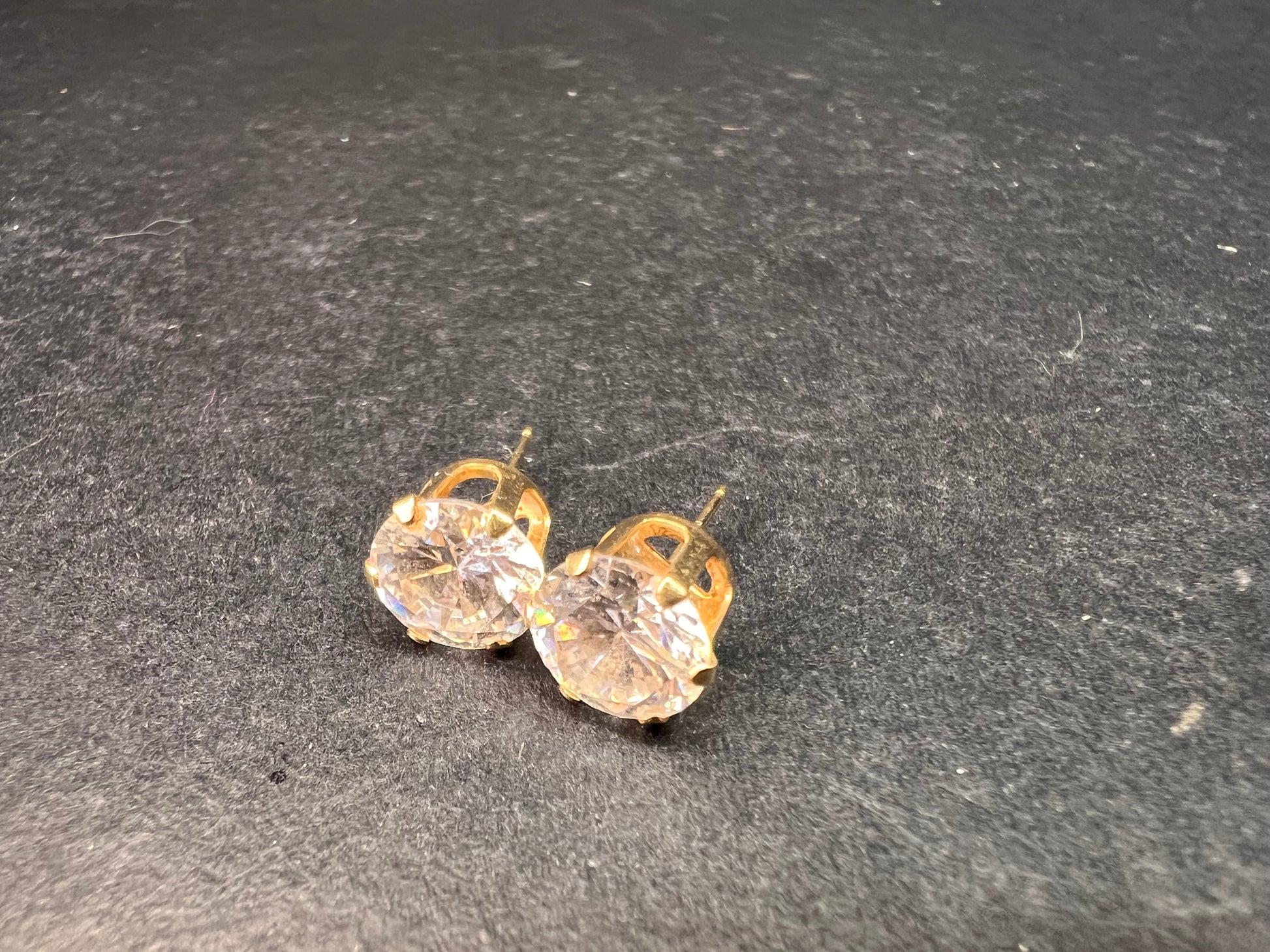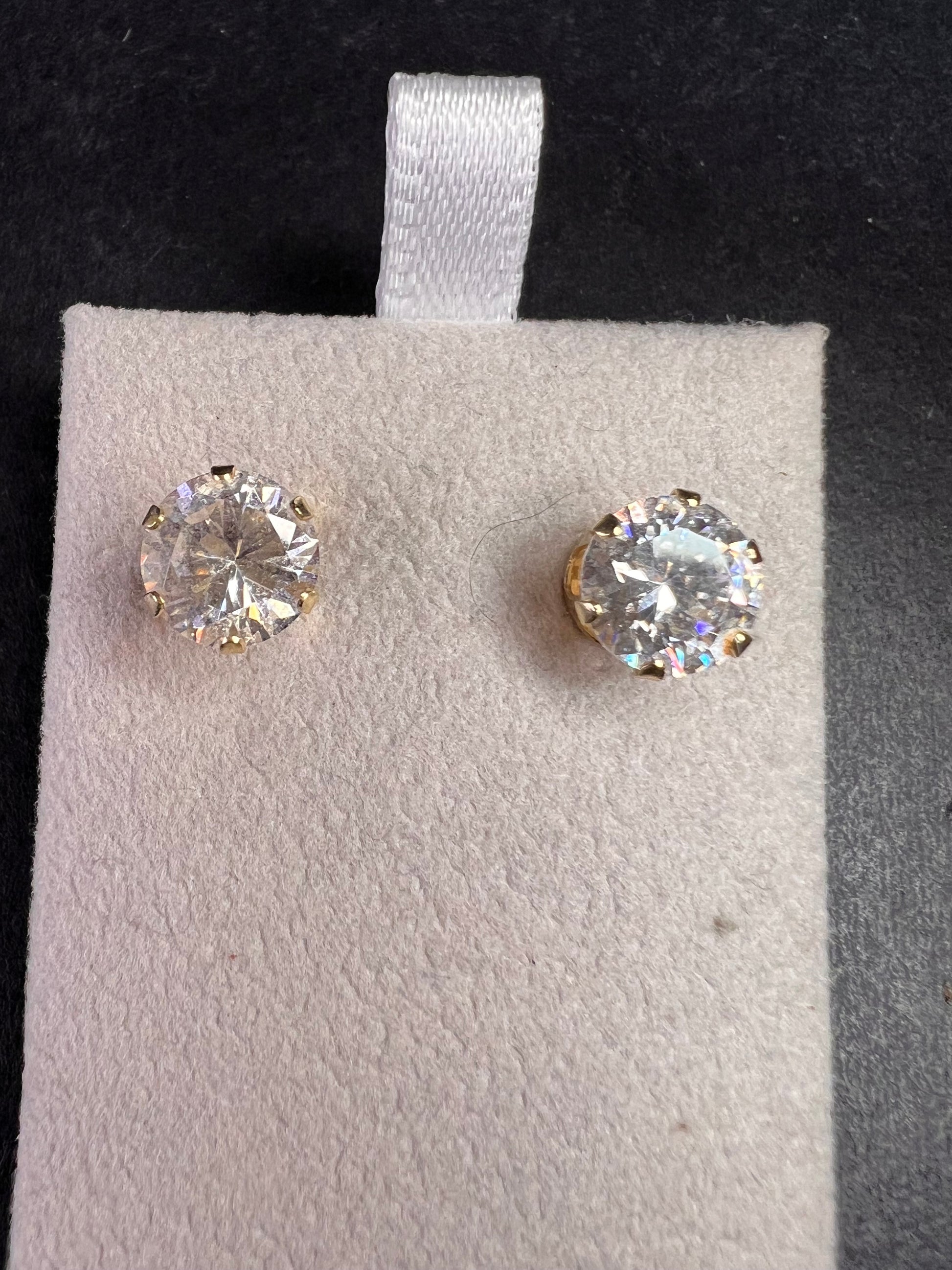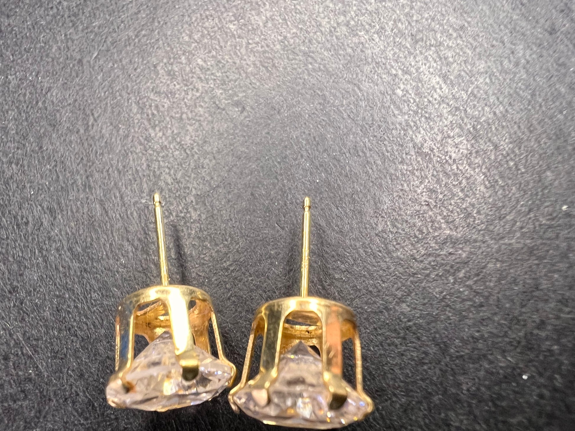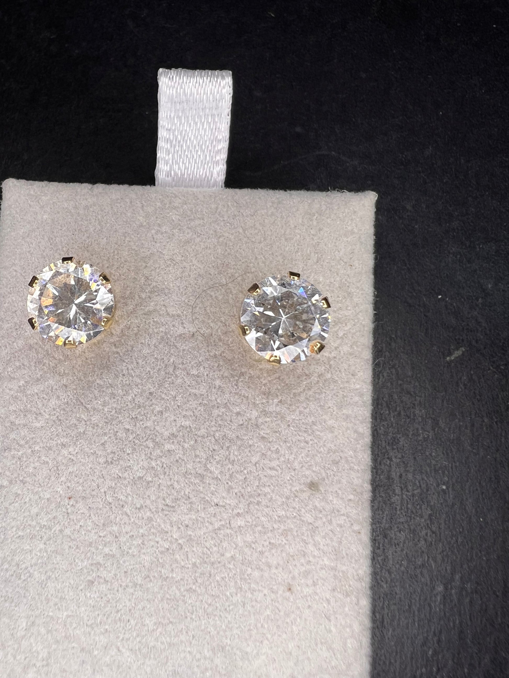 14k Yellow Gold 8.5mm CZ Stud Earrings Pre Owned With Replacement Backs