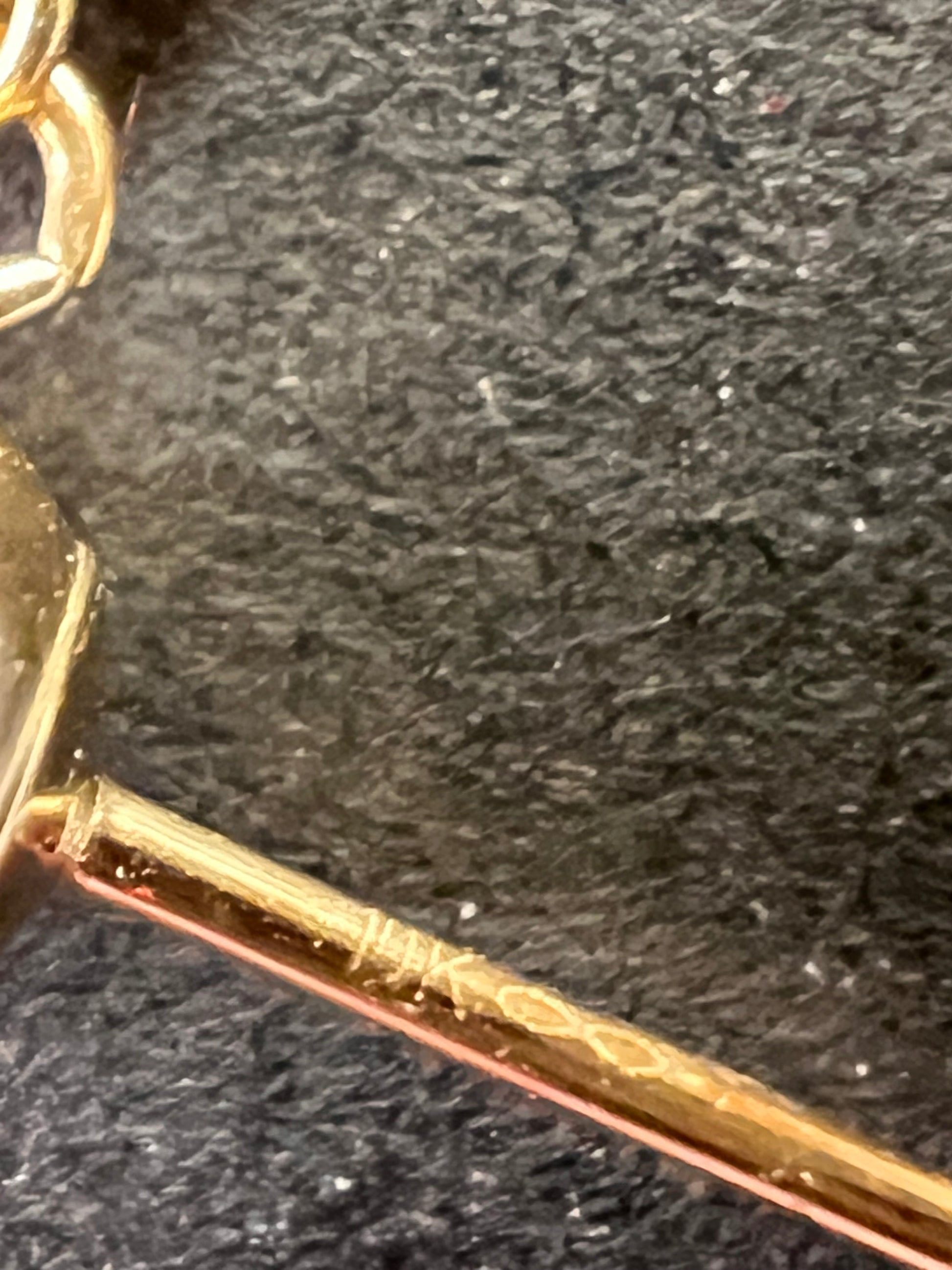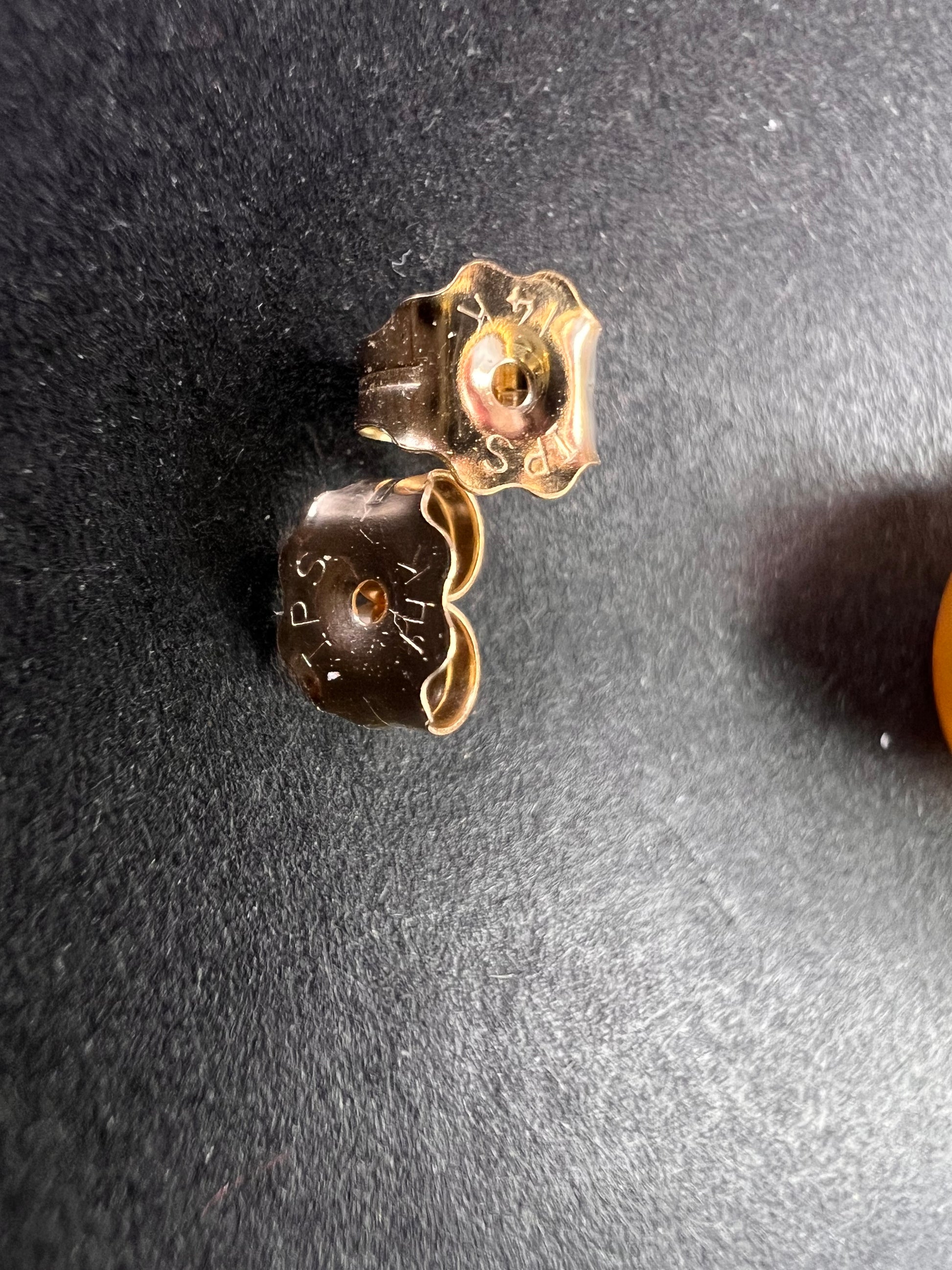 These are a brand new pair of earrings without original tags from an estate purchase. Original packaging was non descriptive, unmarked and discarded. Please note that one of the gold balls has a tinsy little dent in it as is the nature with the softness of 14k gold.