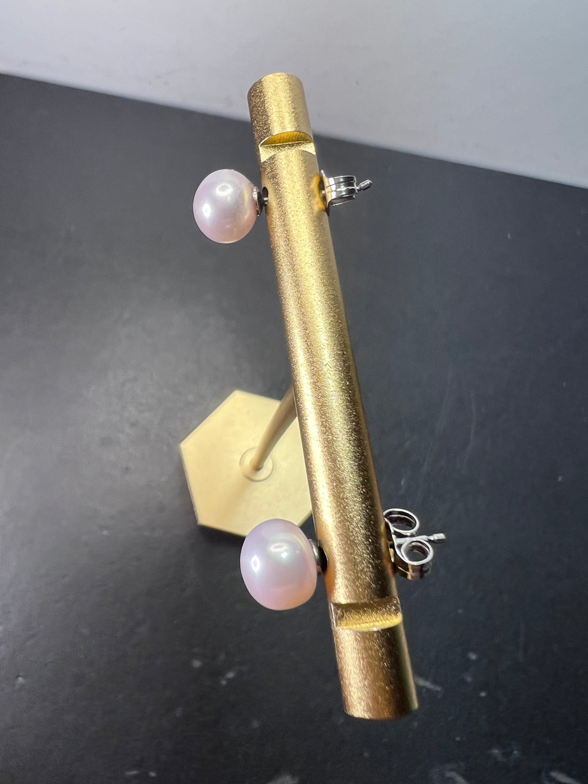 8mm pink cultured pearl stud earrings with sterling silver posts