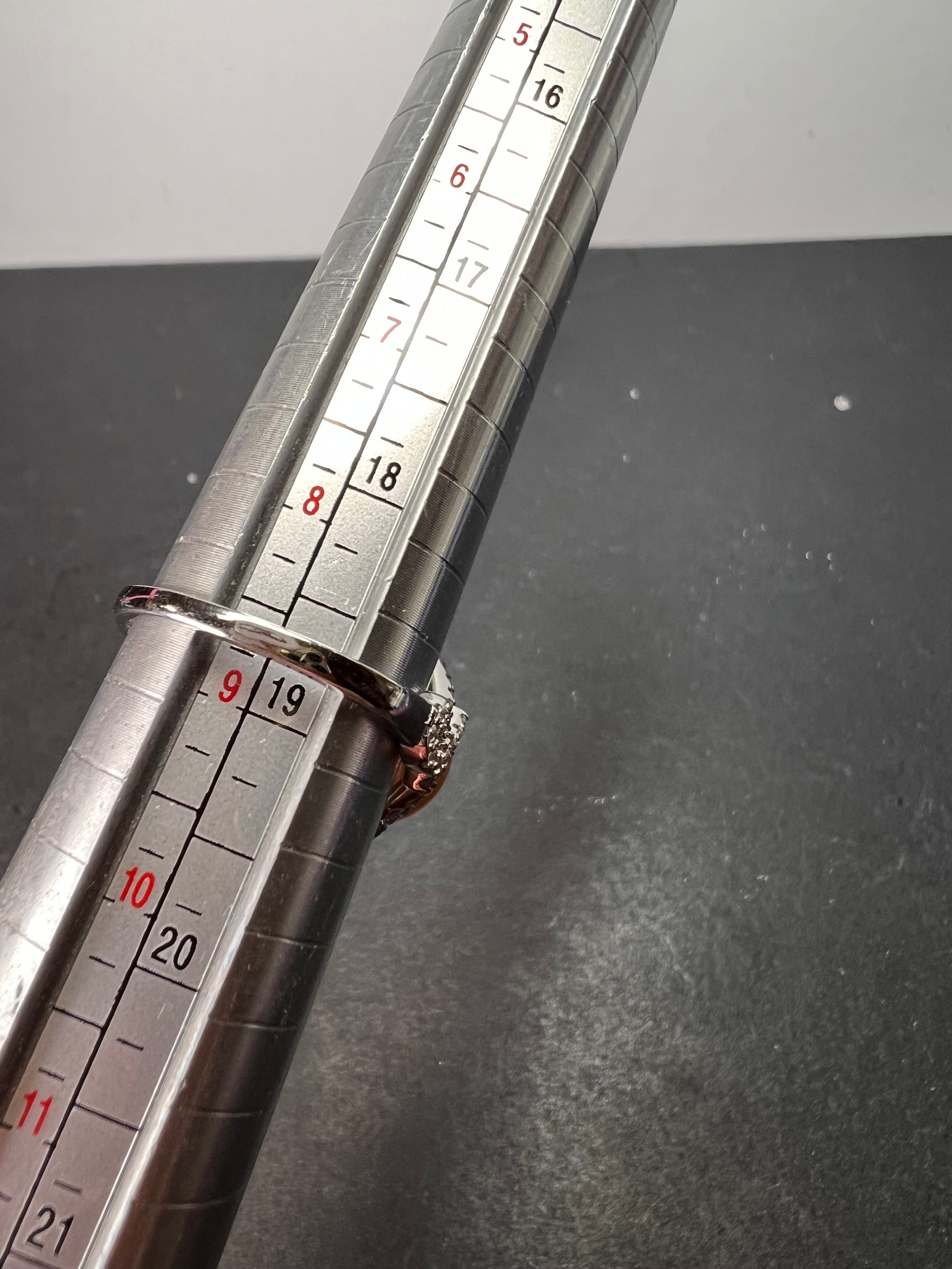 Natural Color Deep Gold 11mm Golden South Sea Cultured Pearl and Zircon ring in rhodium over Sterling silver size 9