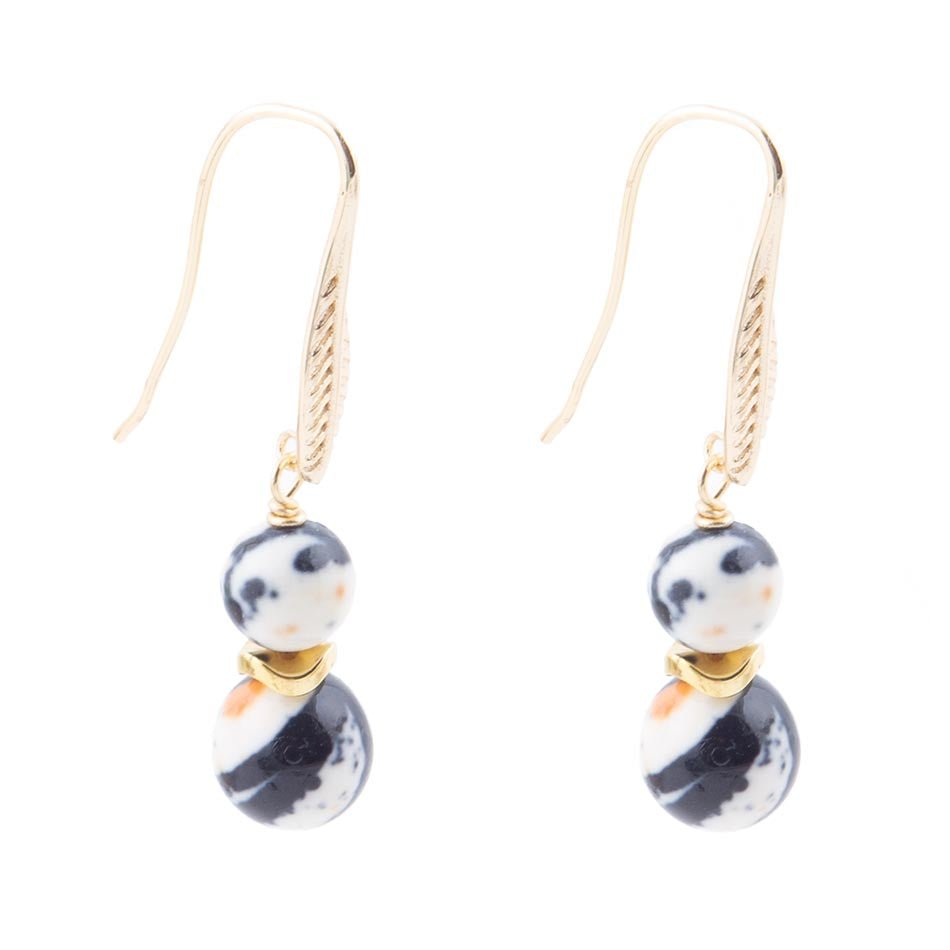 Barse Agate Black and White Neutrals Golden Drop Earrings