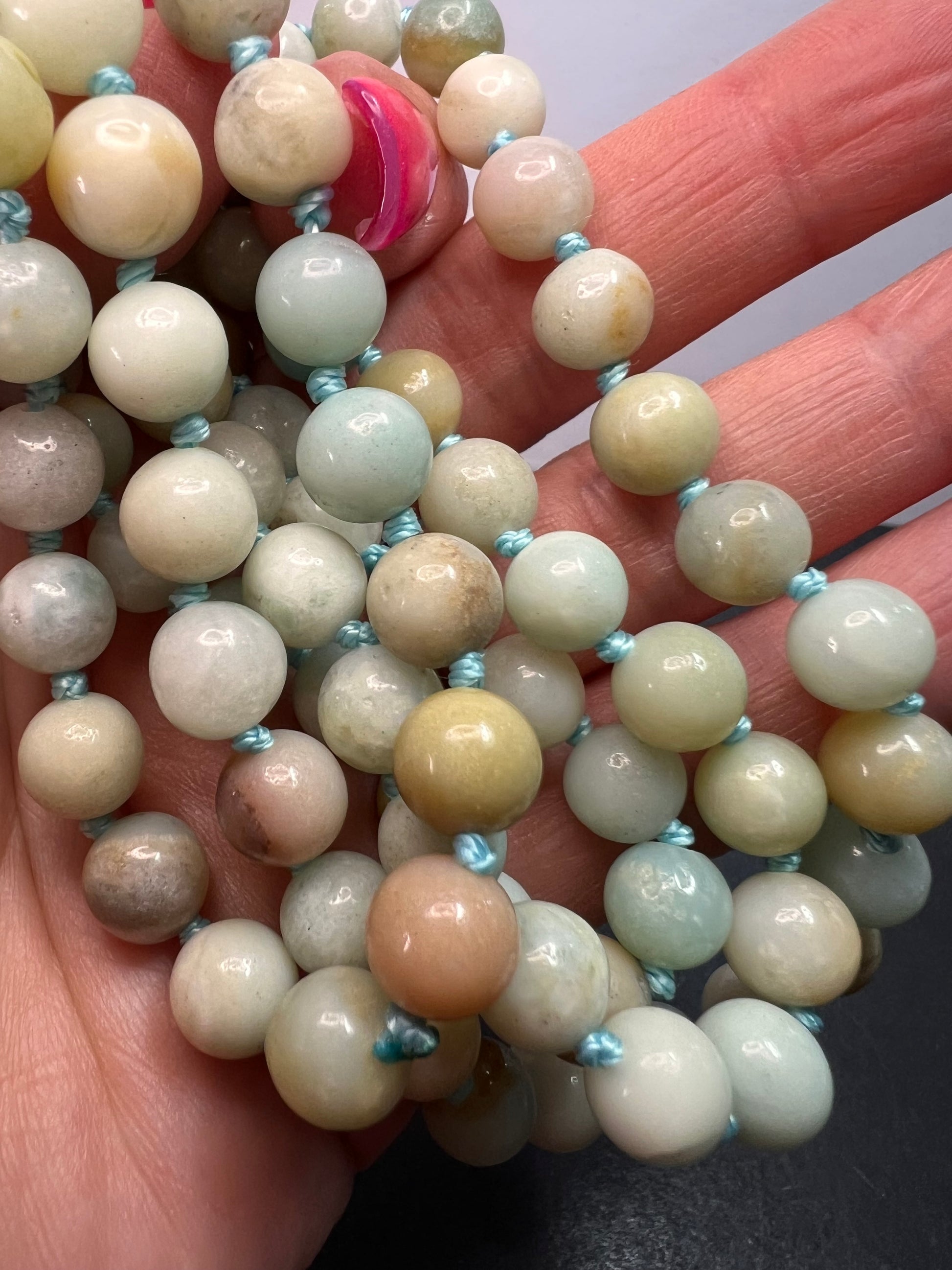 Amazonite knotted mala style endless necklace