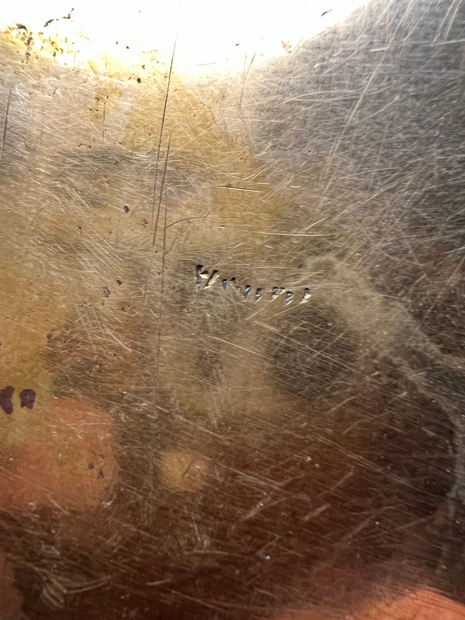This 10” diameter antique Chinese brass bowl is a heavy, high-quality piece weighing 1lb 1oz and featuring hand-etched "Dancing Dragons" surrounding a central symbol for good fortune. Dating to the 1920s, this fine brass bowl has a depth of just under 2" and a beautiful aged patina consistent with its age. It is in excellent vintage condition, marked "CHINA" on the reverse, and fits perfectly as an MCM centerpiece or global-inspired shelf decor.