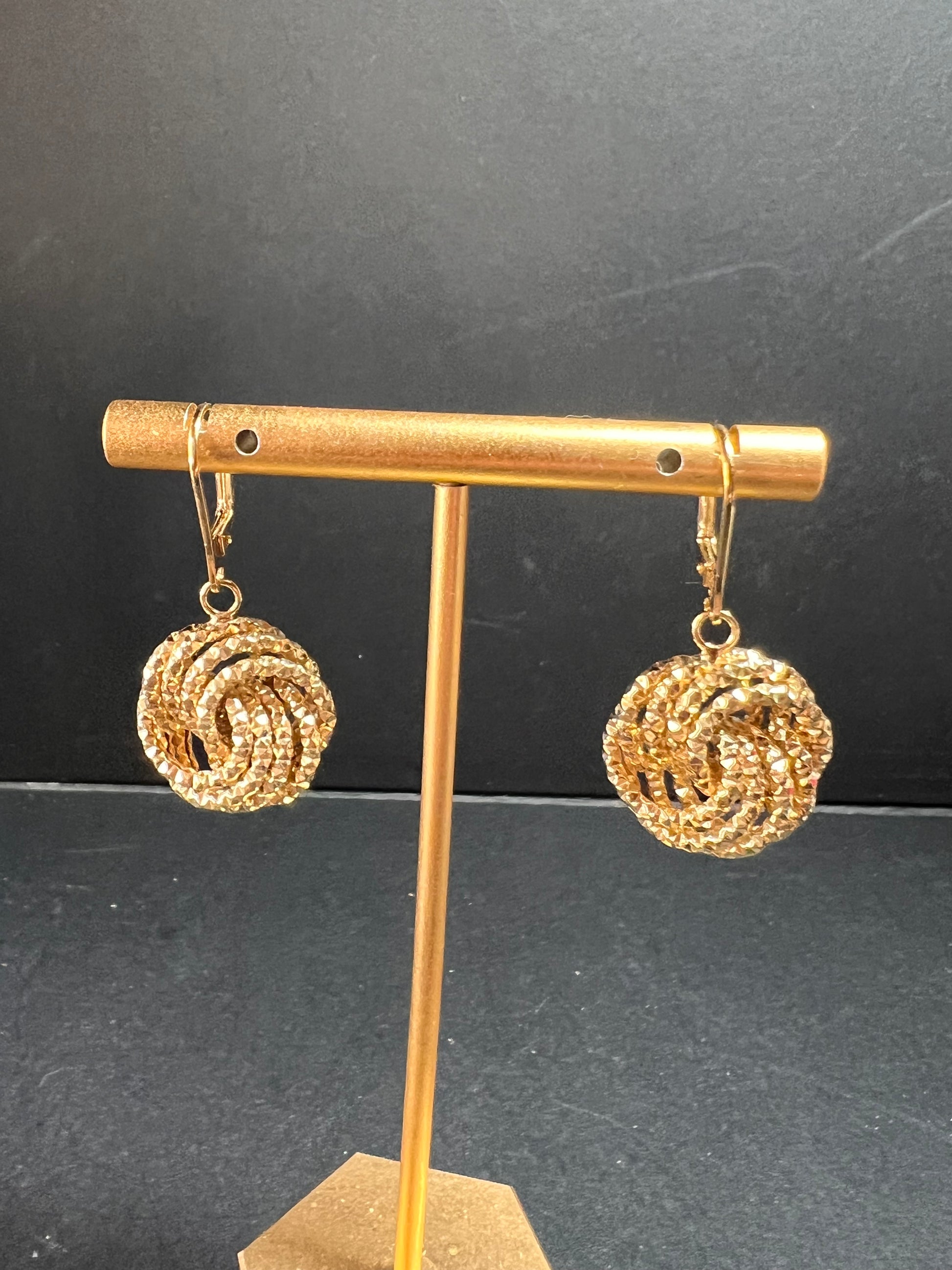 14-18k yellow gold plated over authentic 925 sterling silver lever back earrings. Stamped 925 AK Turkey for Atasay Kuyumculuk. Total weight is 5.92 grams. Length is just over 1.5 inches or so.