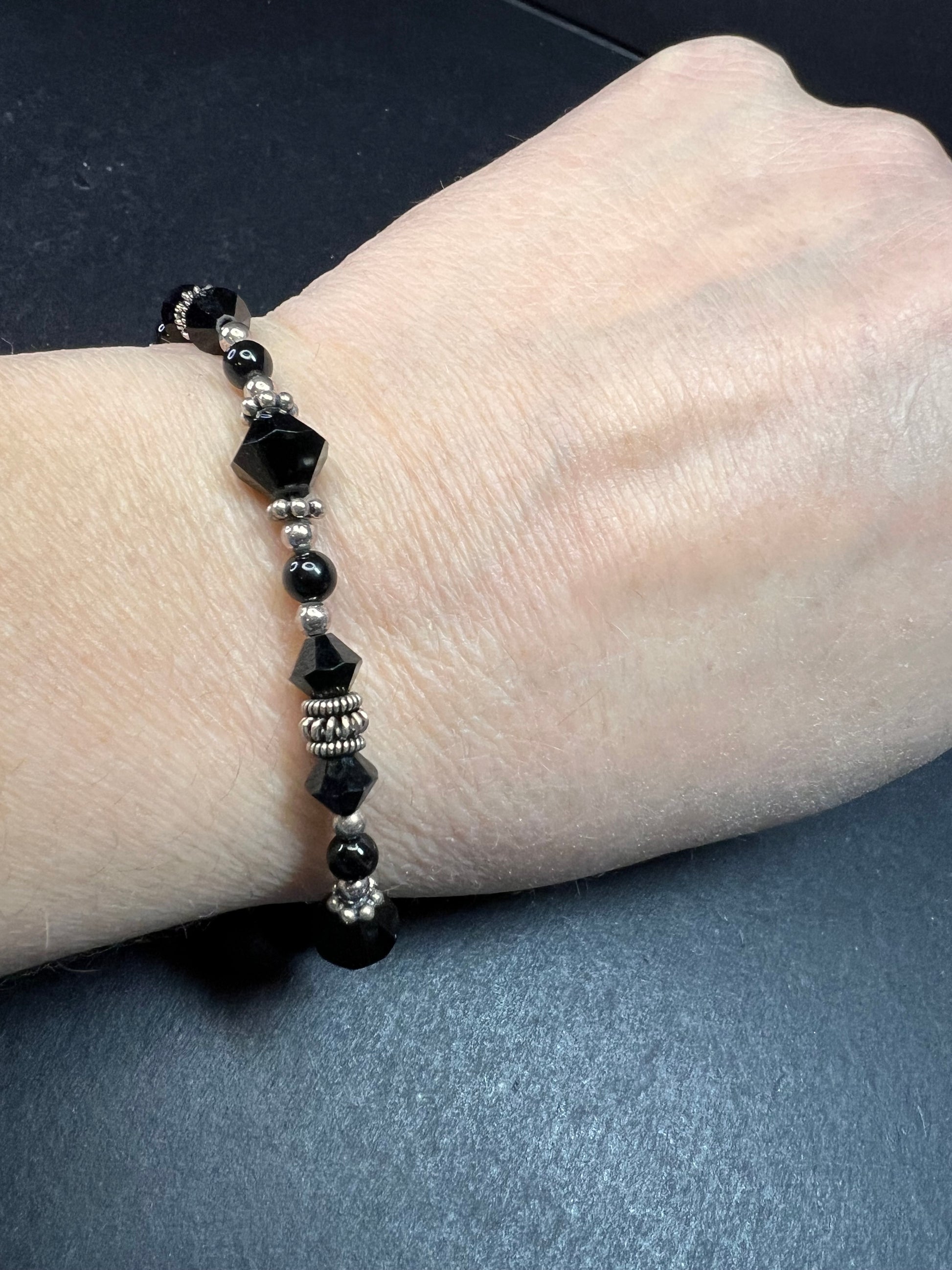 Black Swarovski Crystal & Bali Sterling Silver Beaded Bracelet – 7.75”