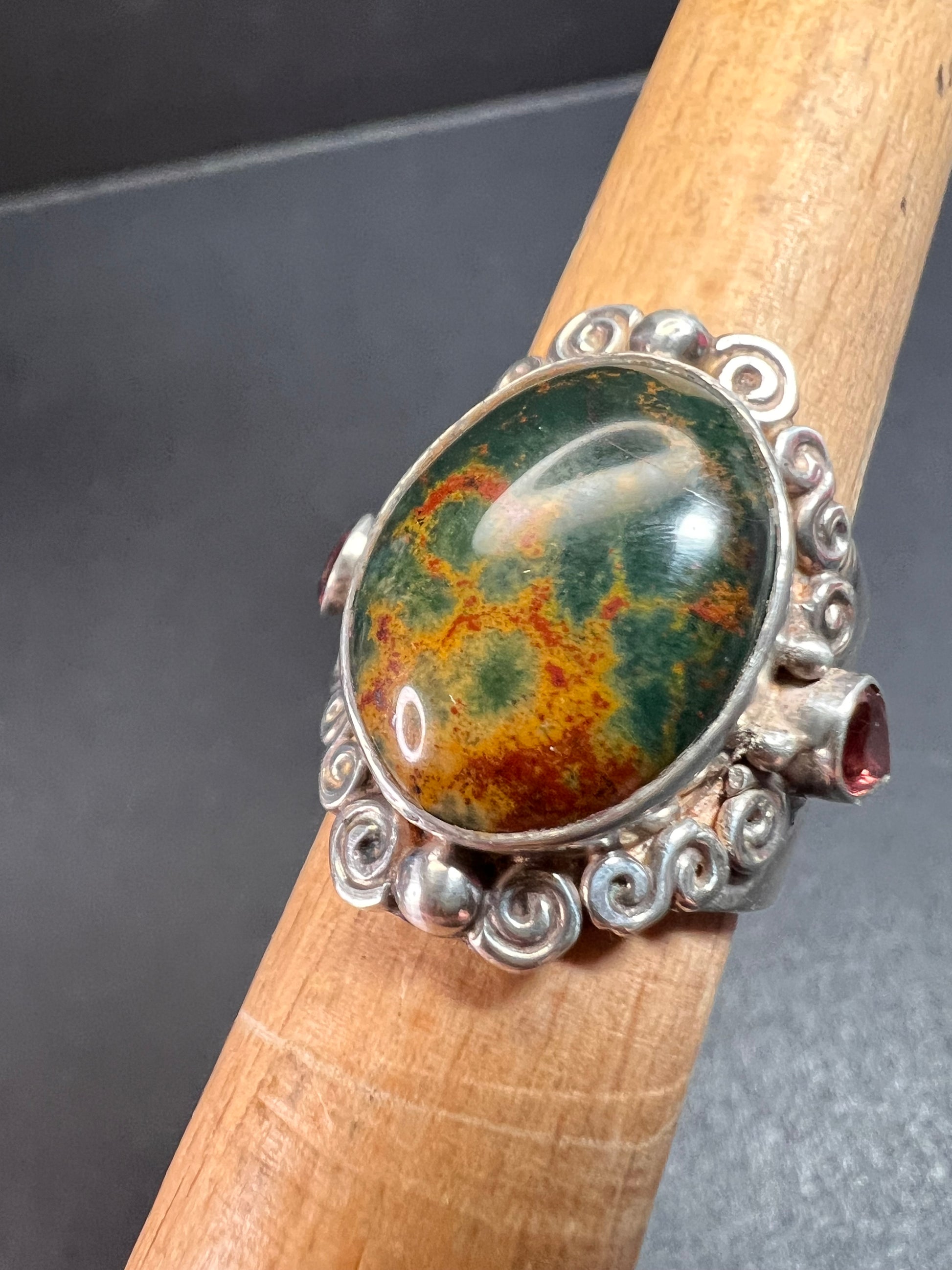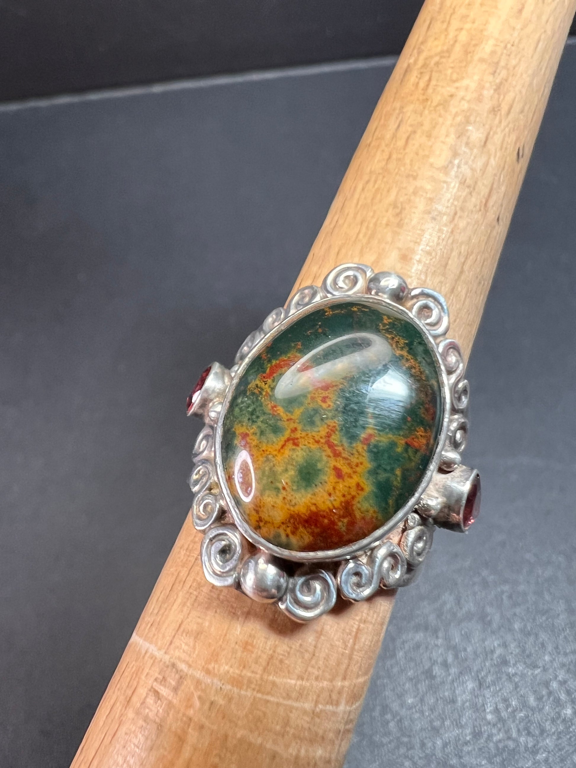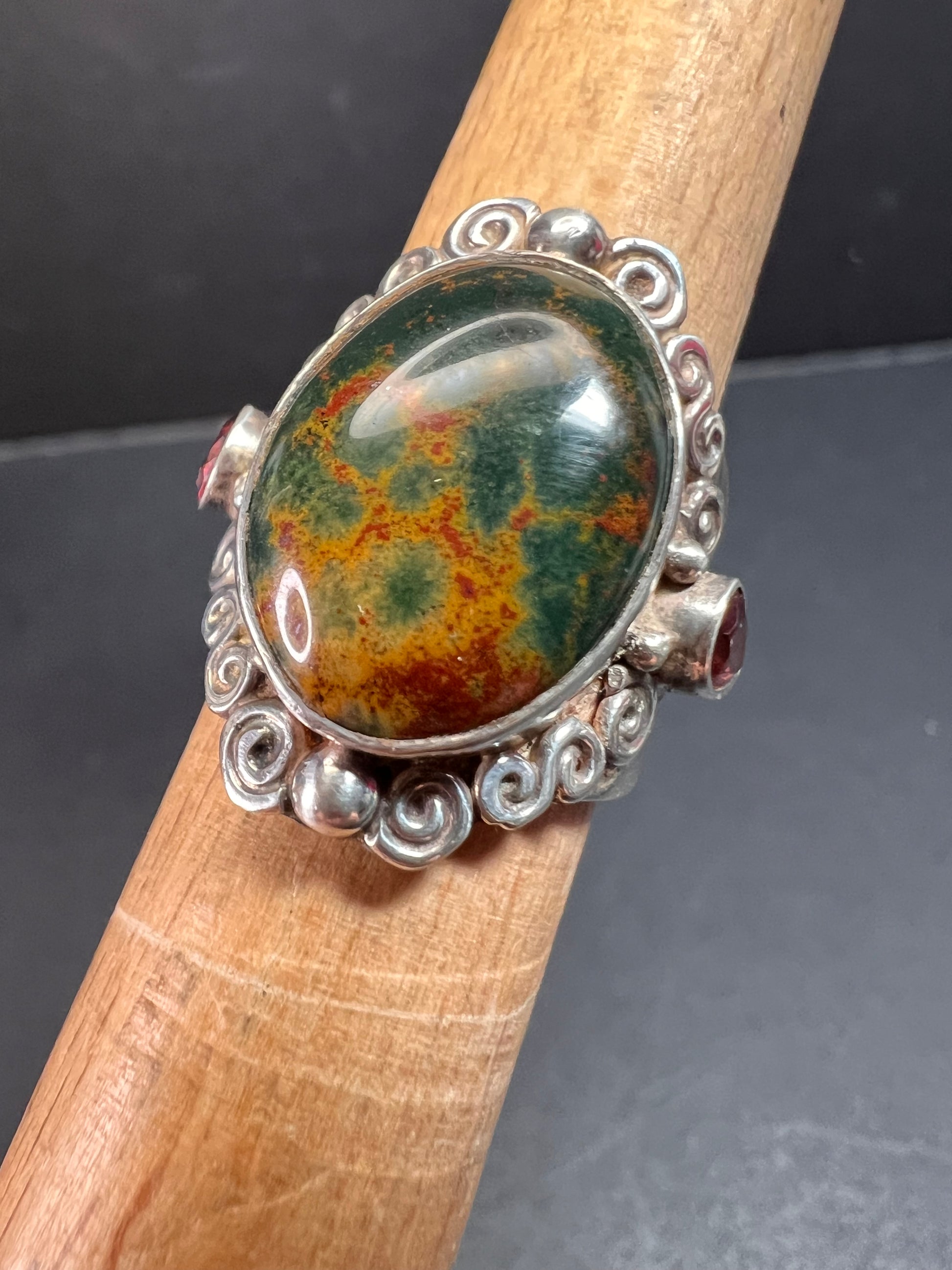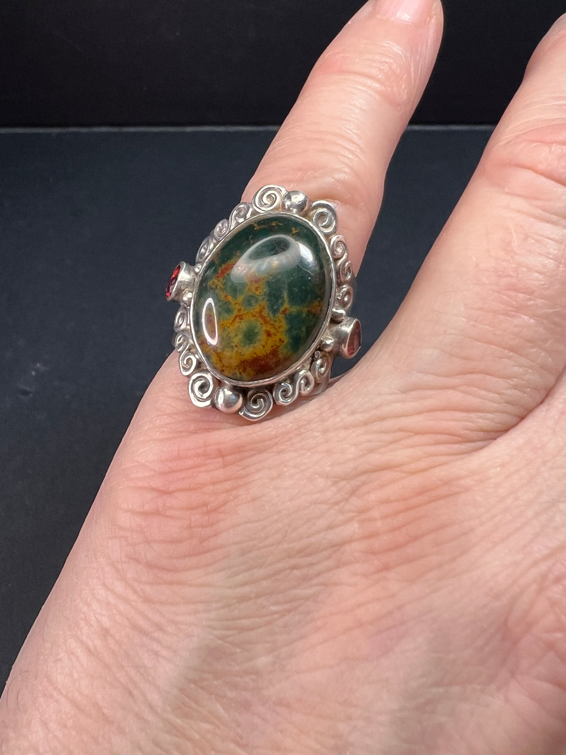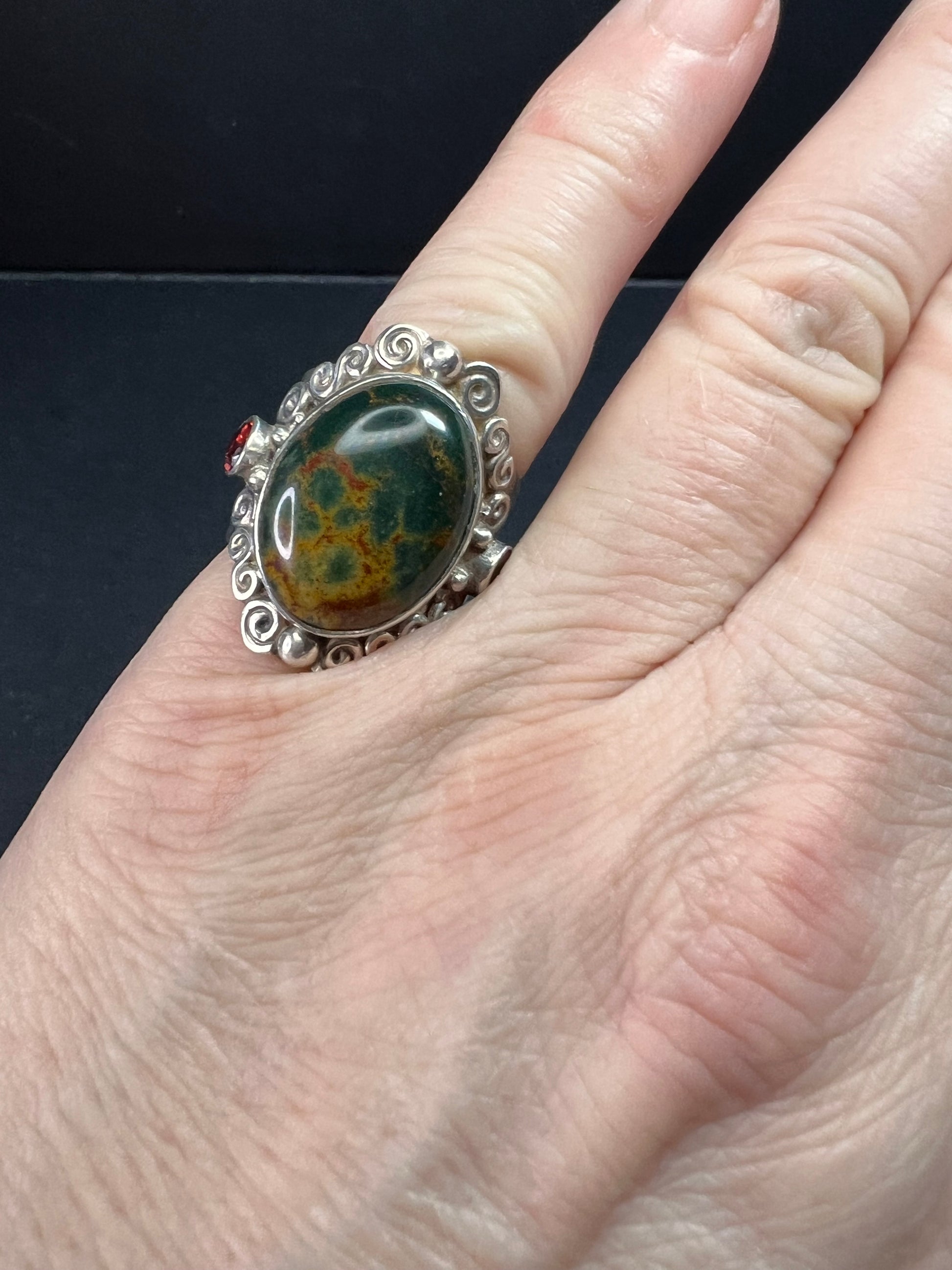 Sajen bloodstone and garnet sterling silver ring size 6