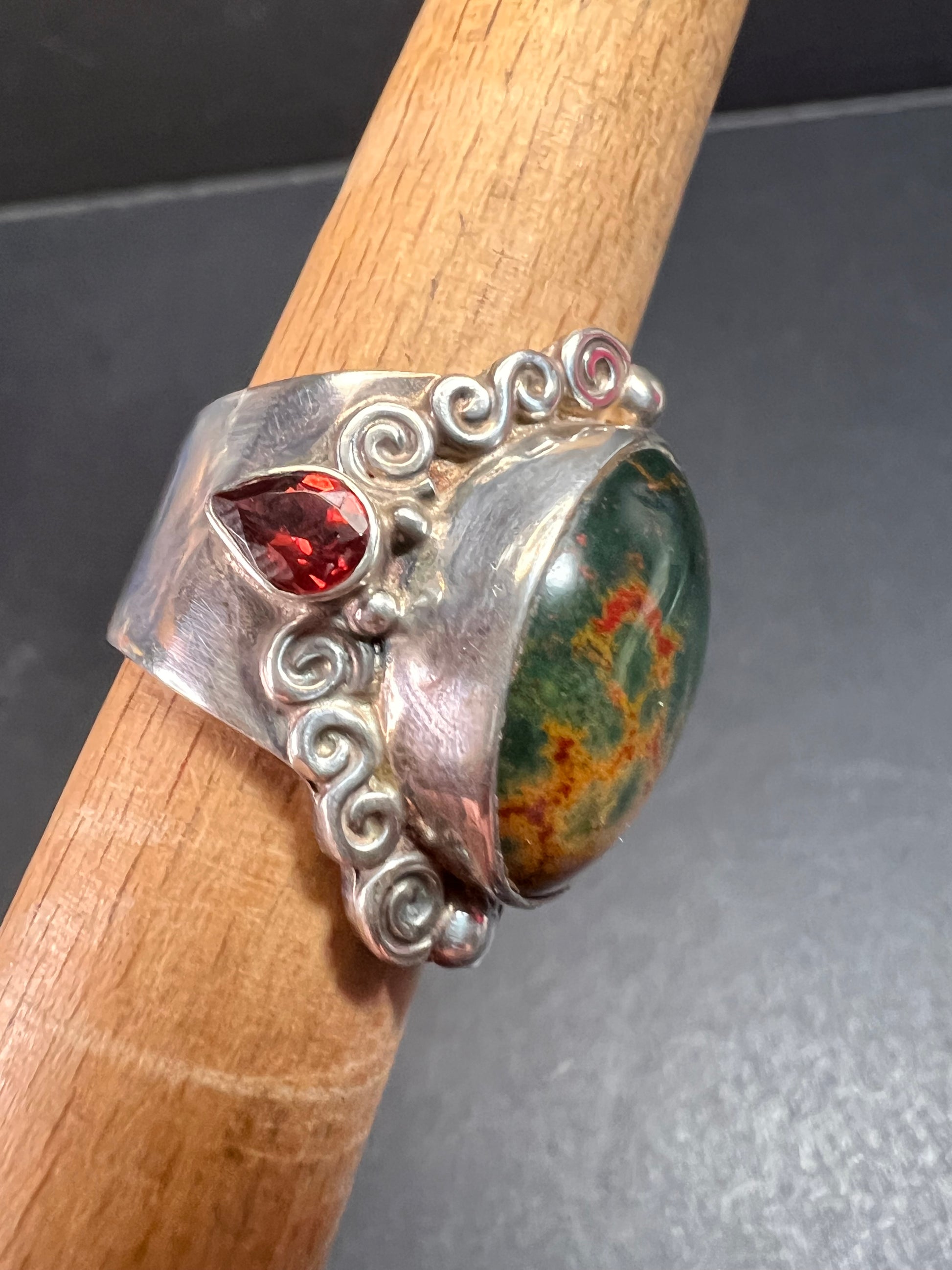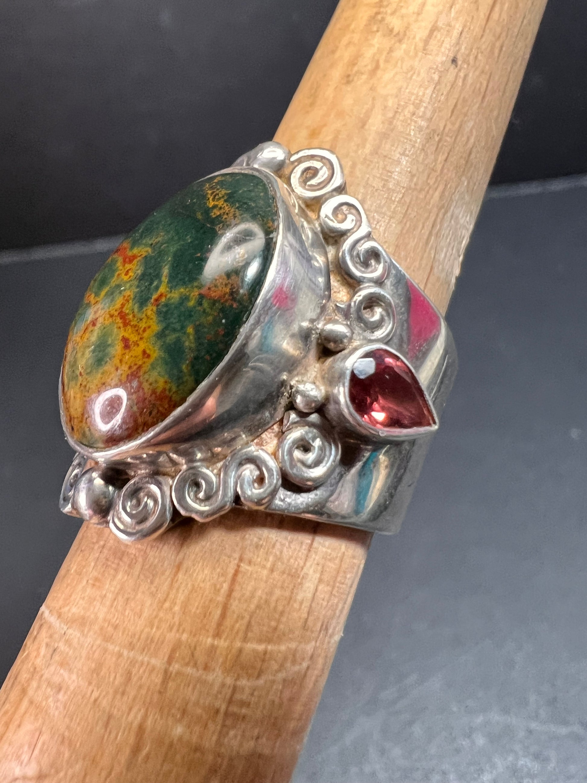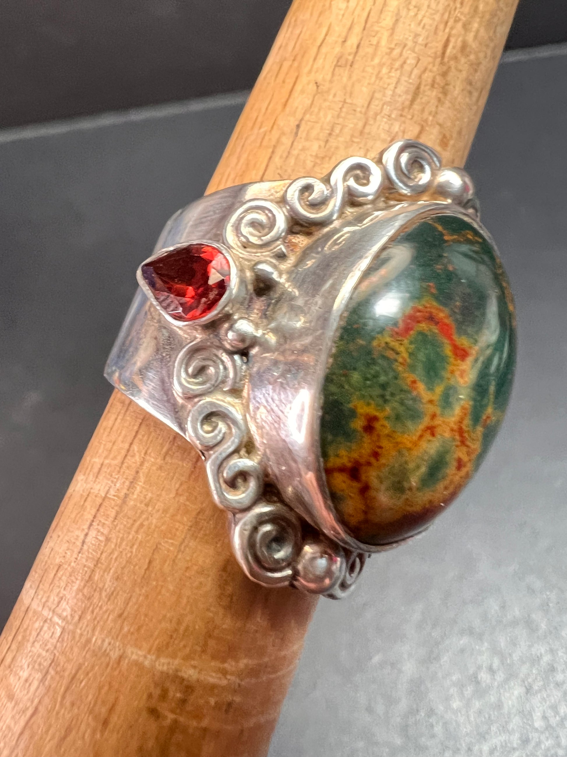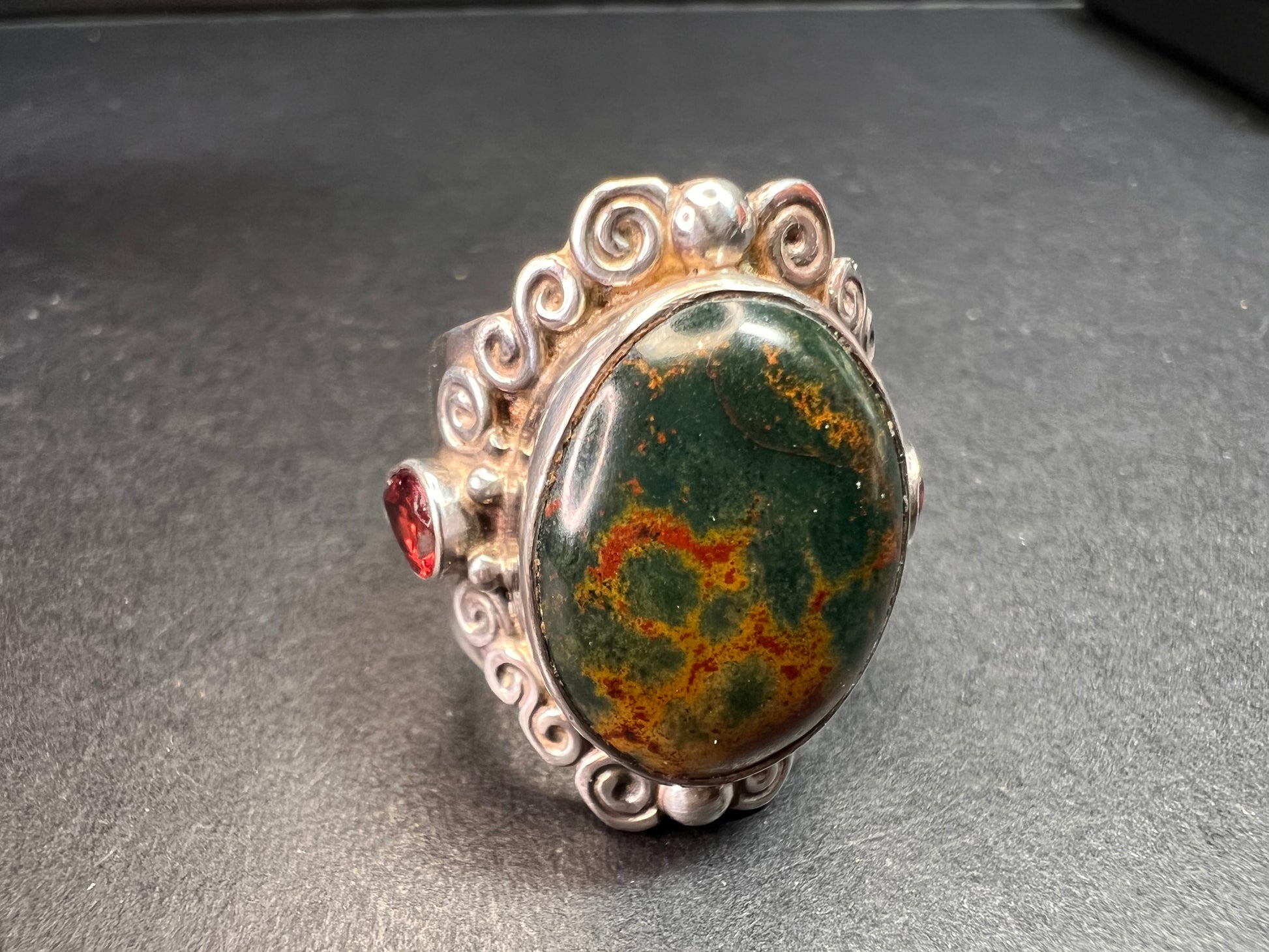 Sajen bloodstone and garnet sterling silver ring size 6