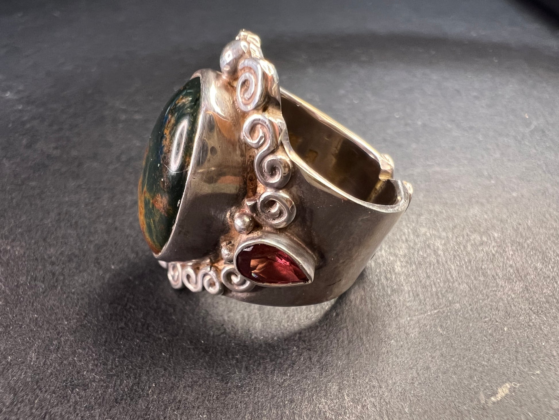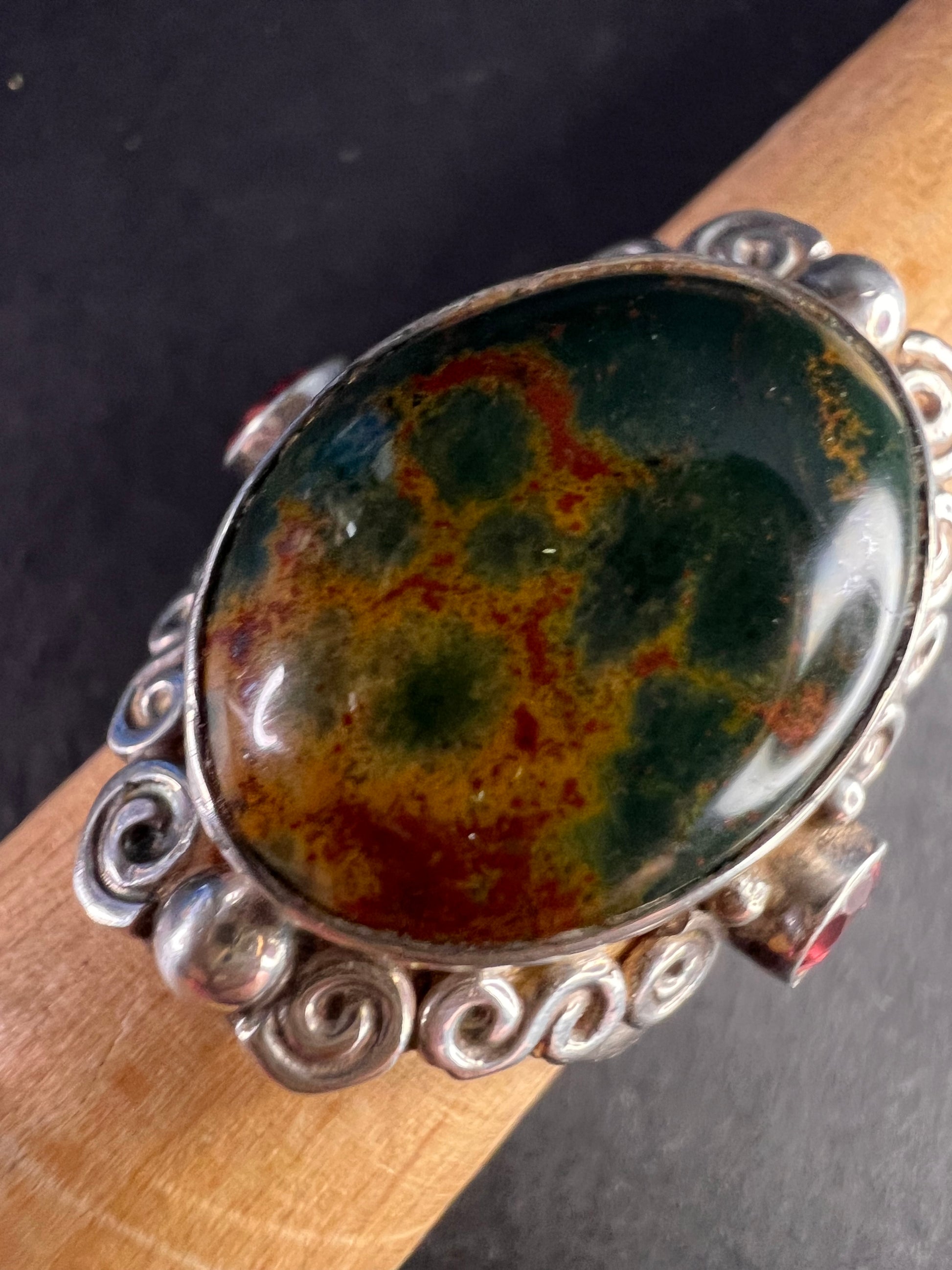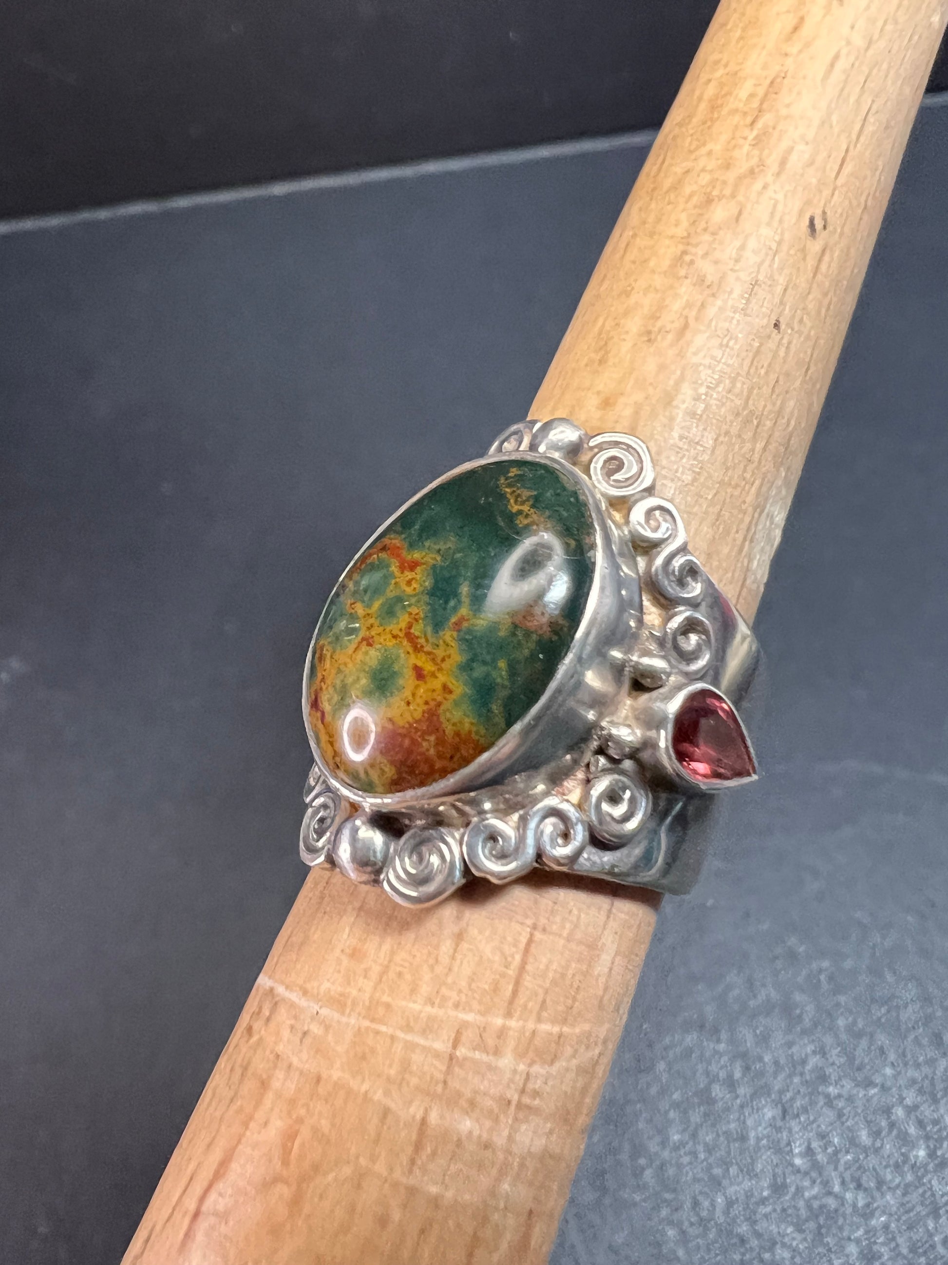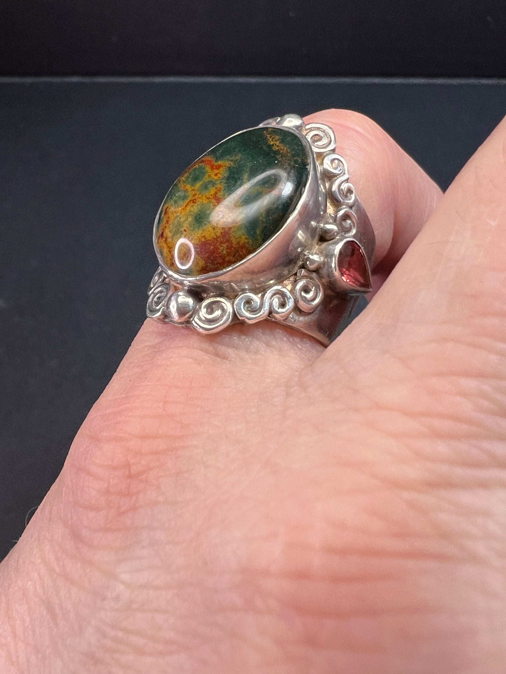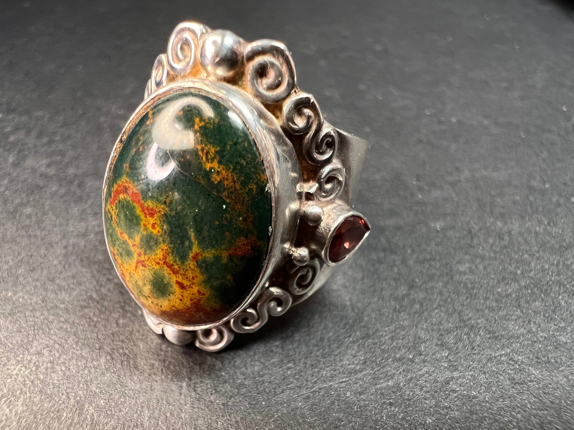 Sajen bloodstone and garnet sterling silver ring size 6