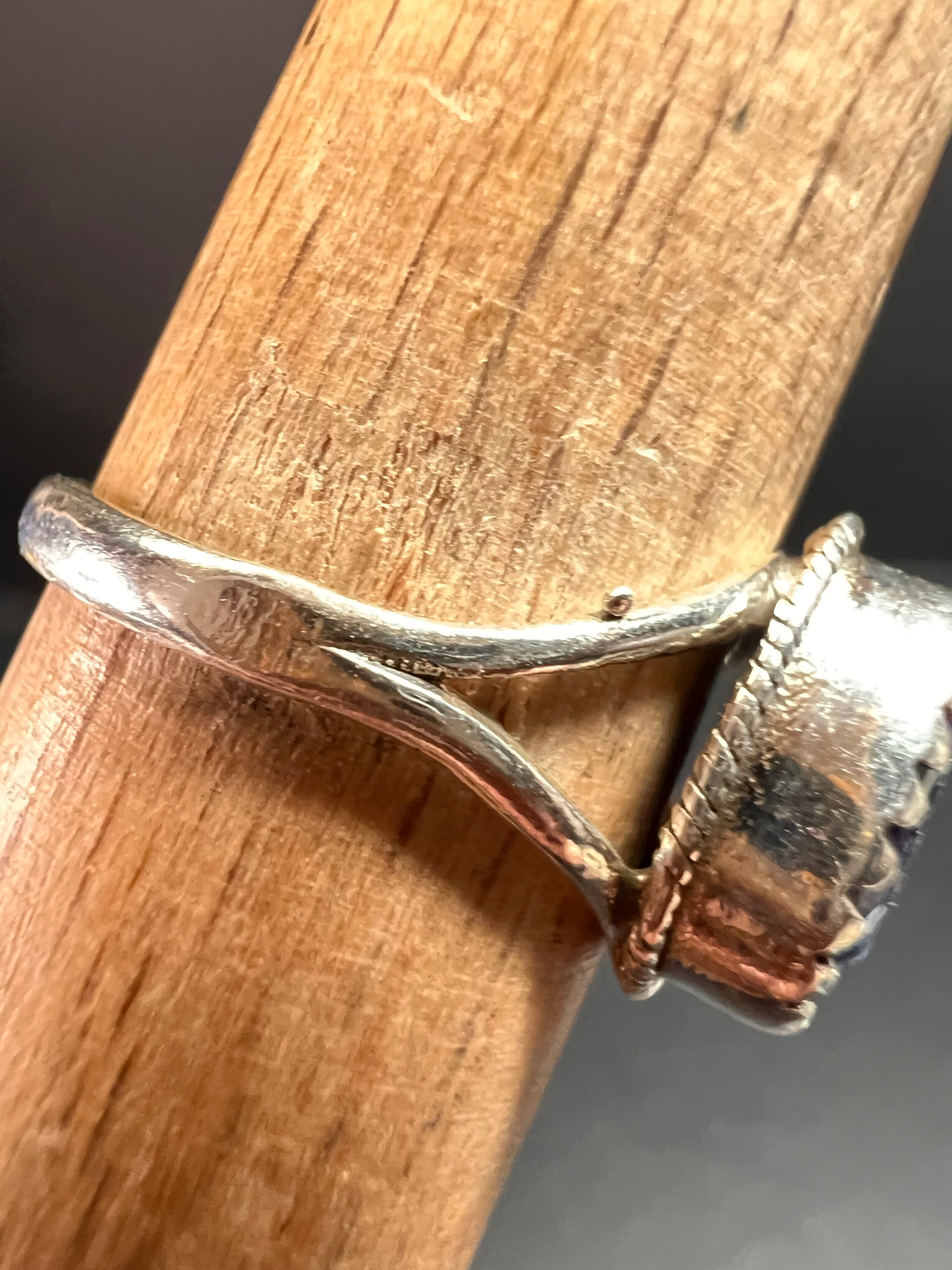 Genuine blue kyanite teardrop shaped gemstone bezel set in authentic 925 sterling silver. Size 5. No other markings. Weighs 1.17 grams.