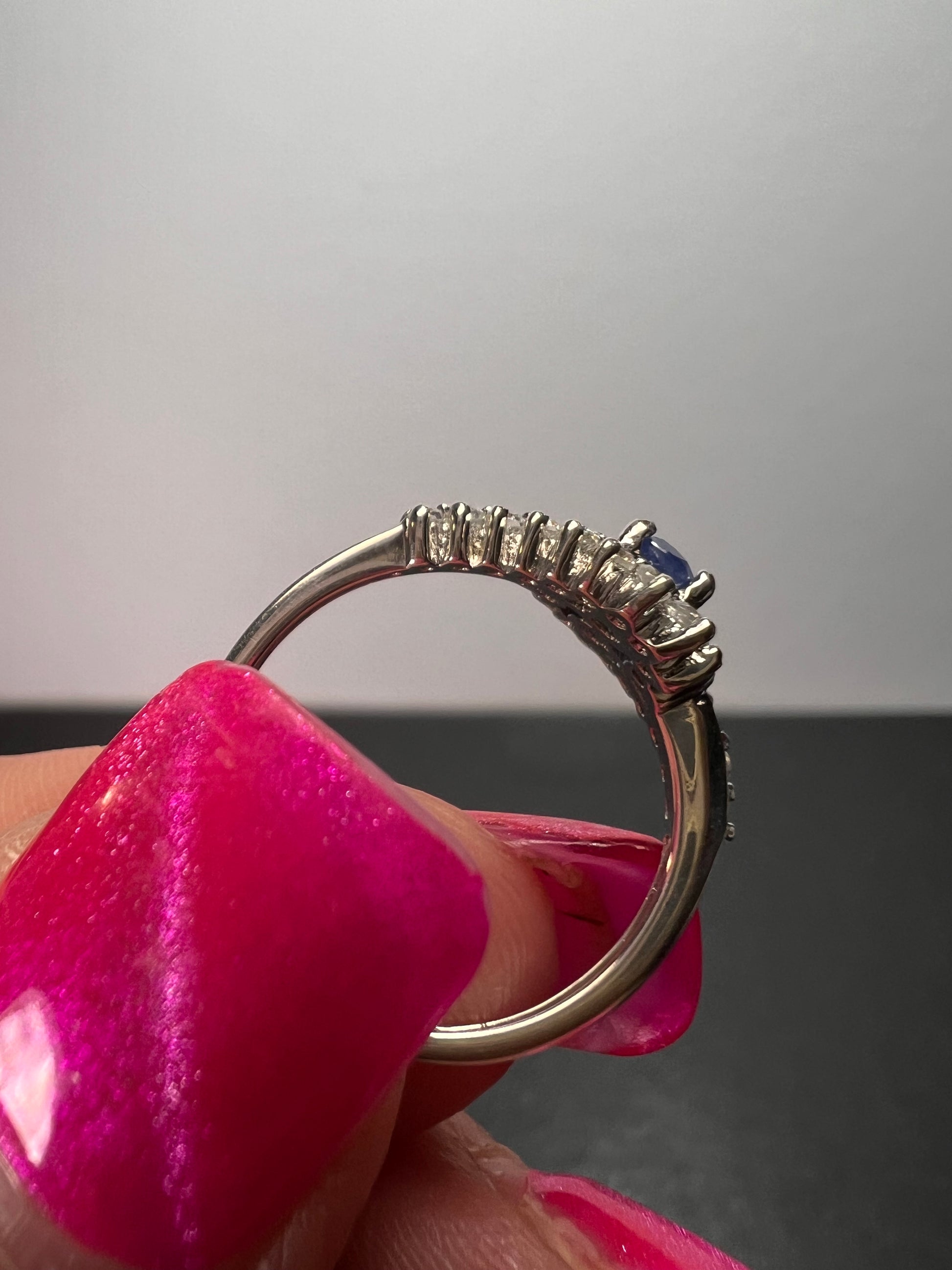 Blue sapphire and zircon ring in platinum over sterling silver size 7 *NEW*