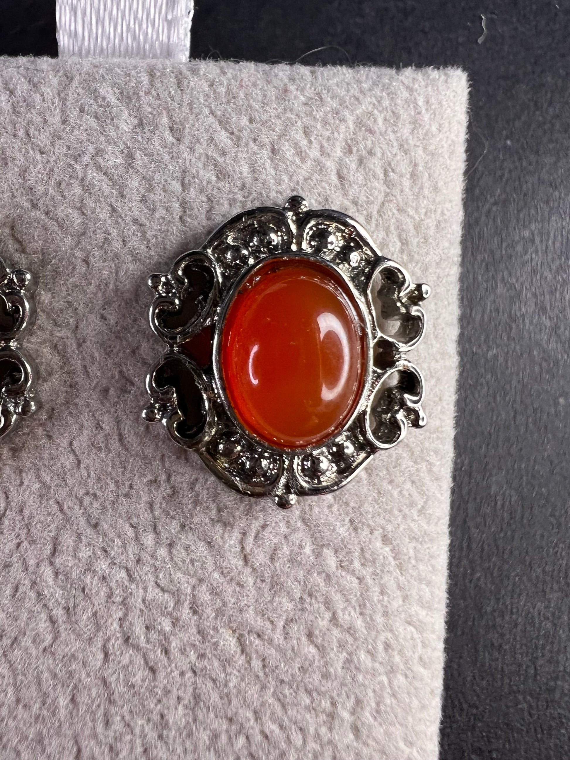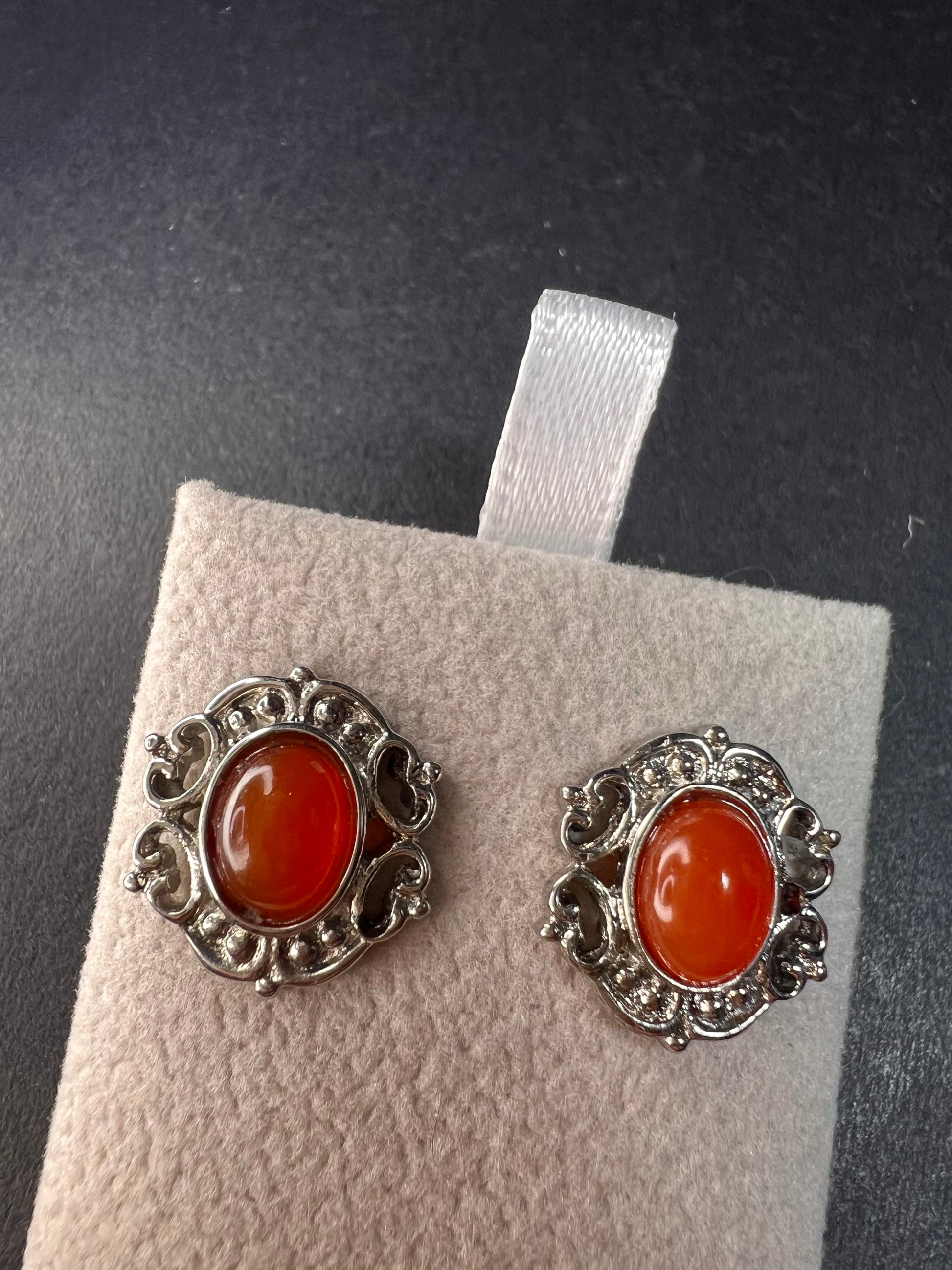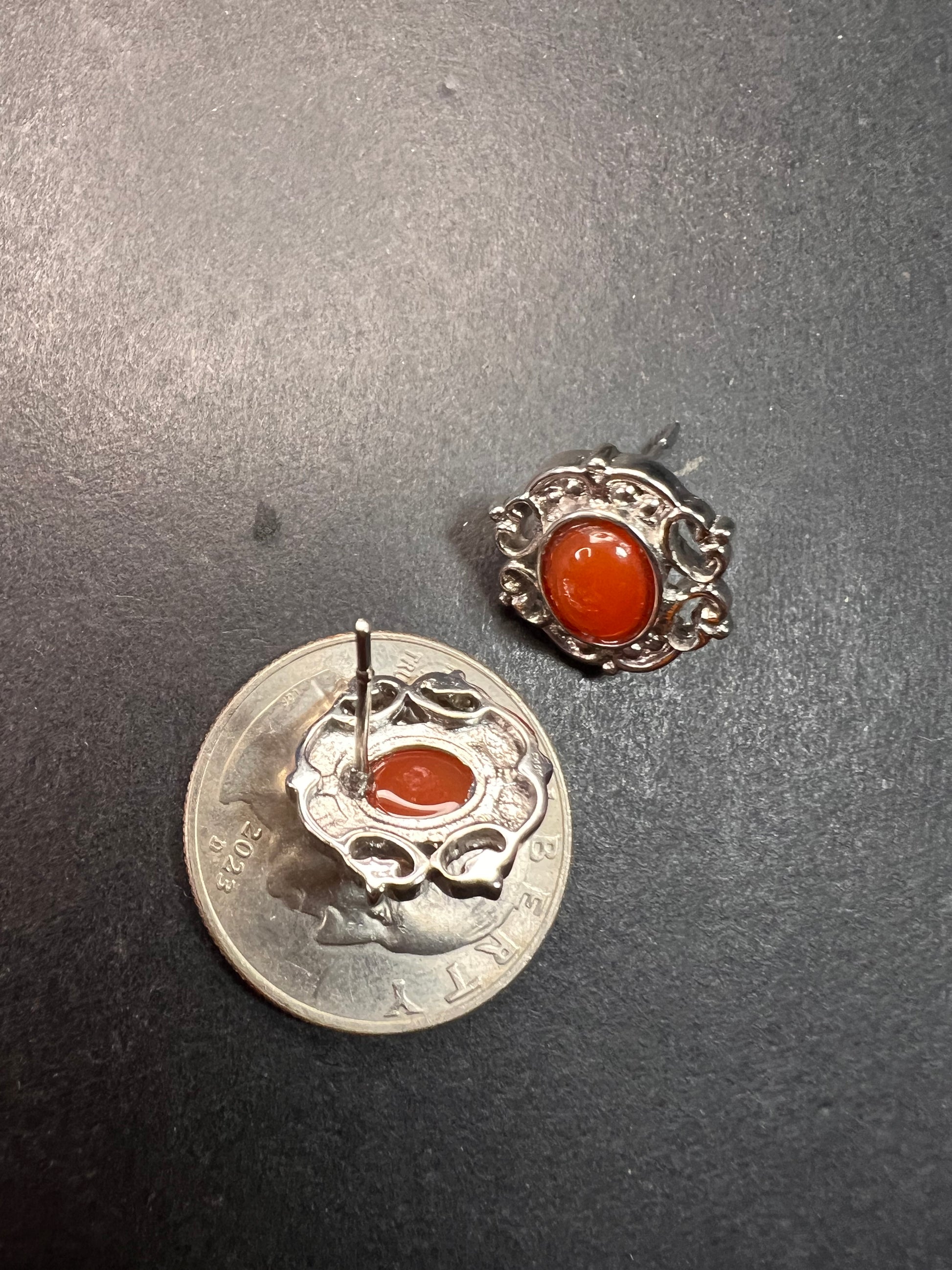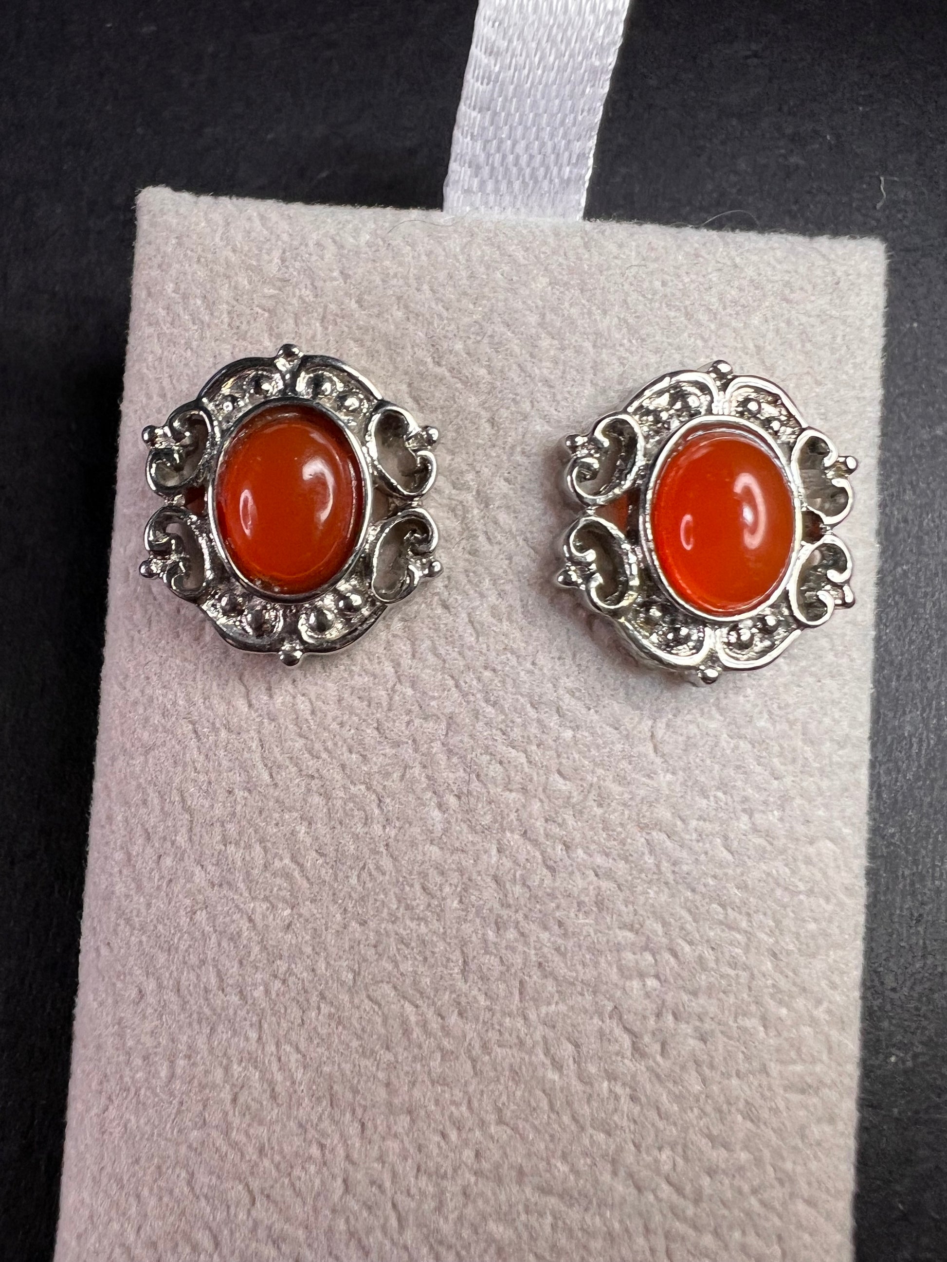 Genuine oval cut carnelian stones set in stainless steel with disc backs