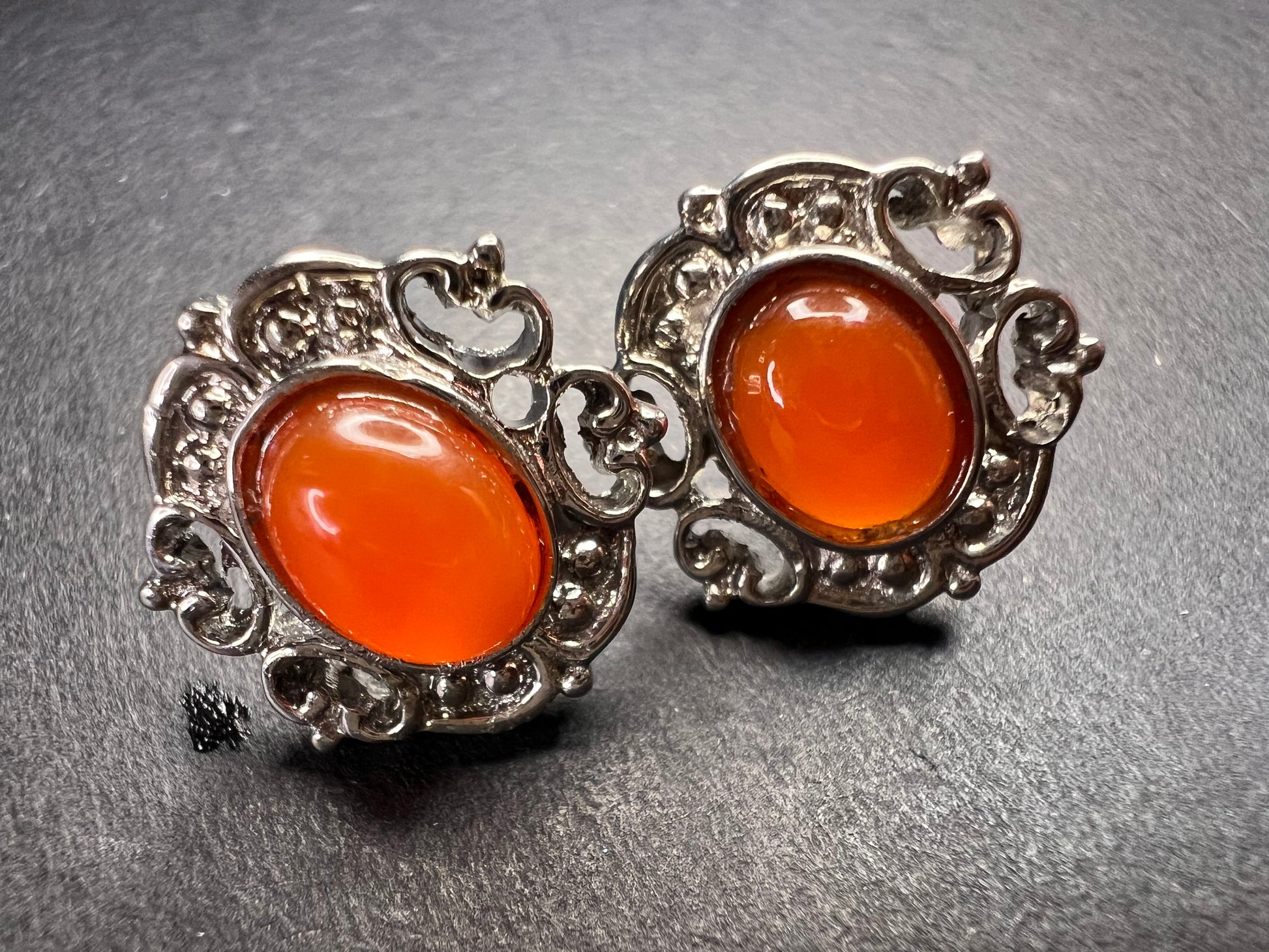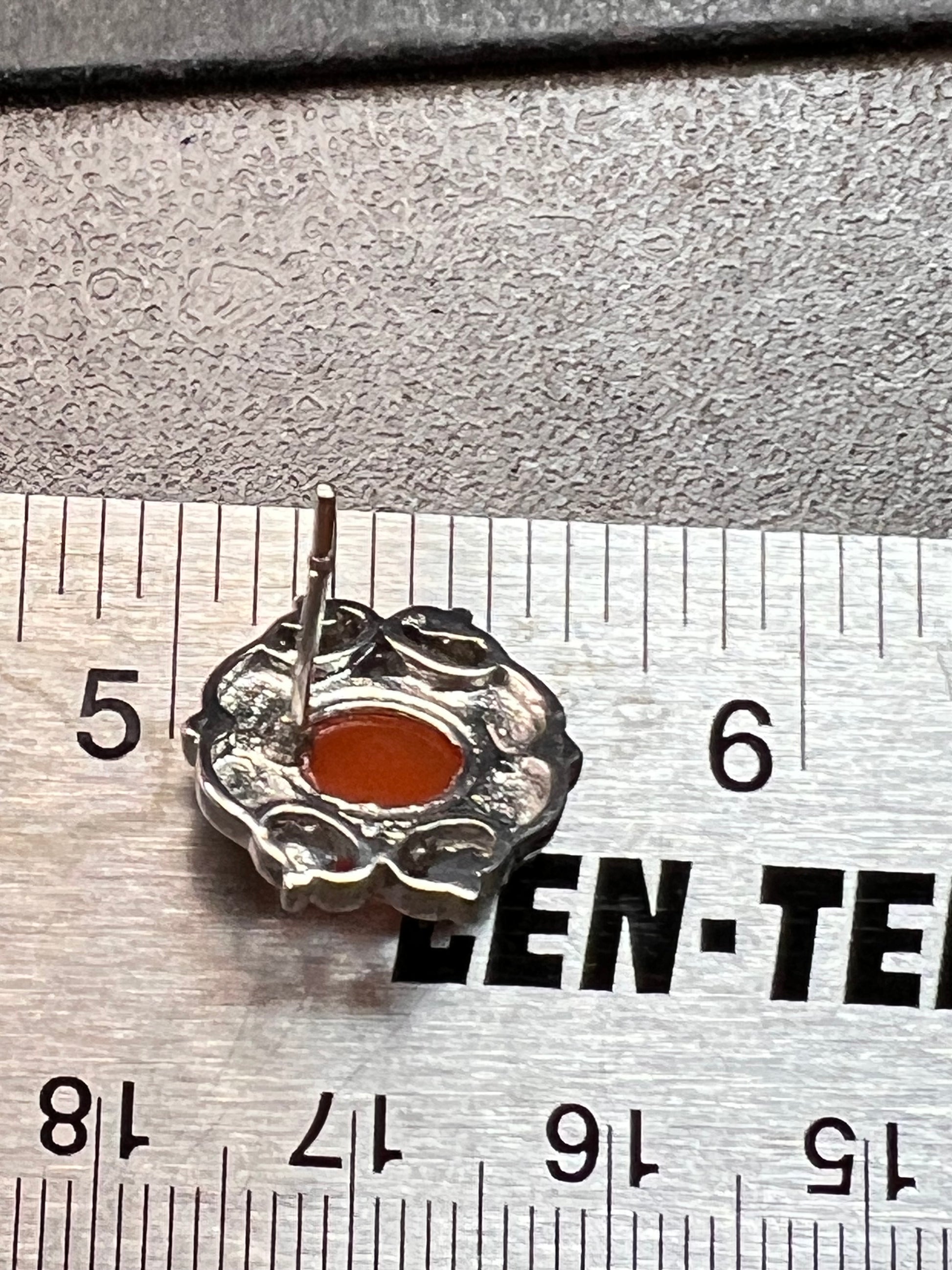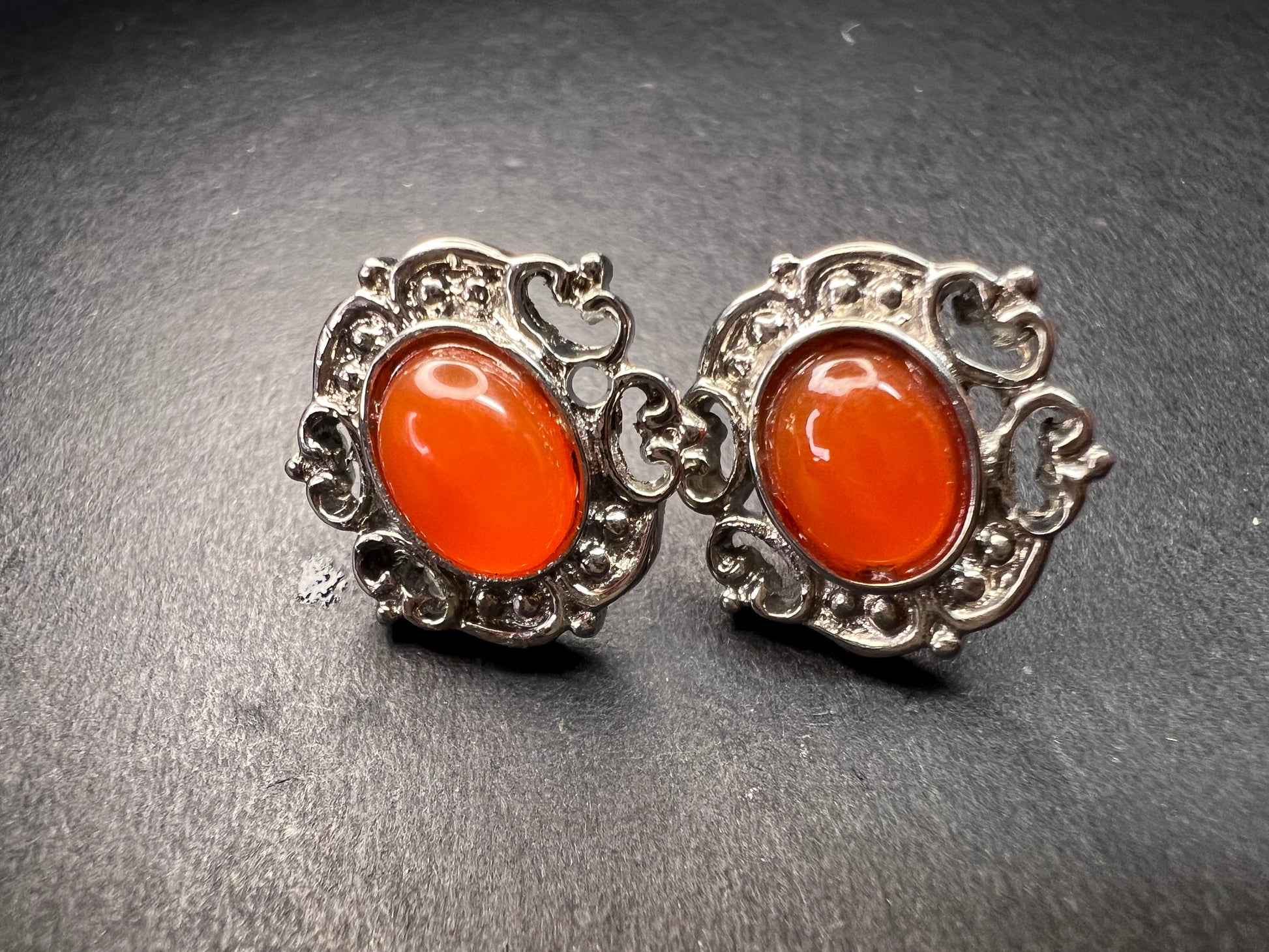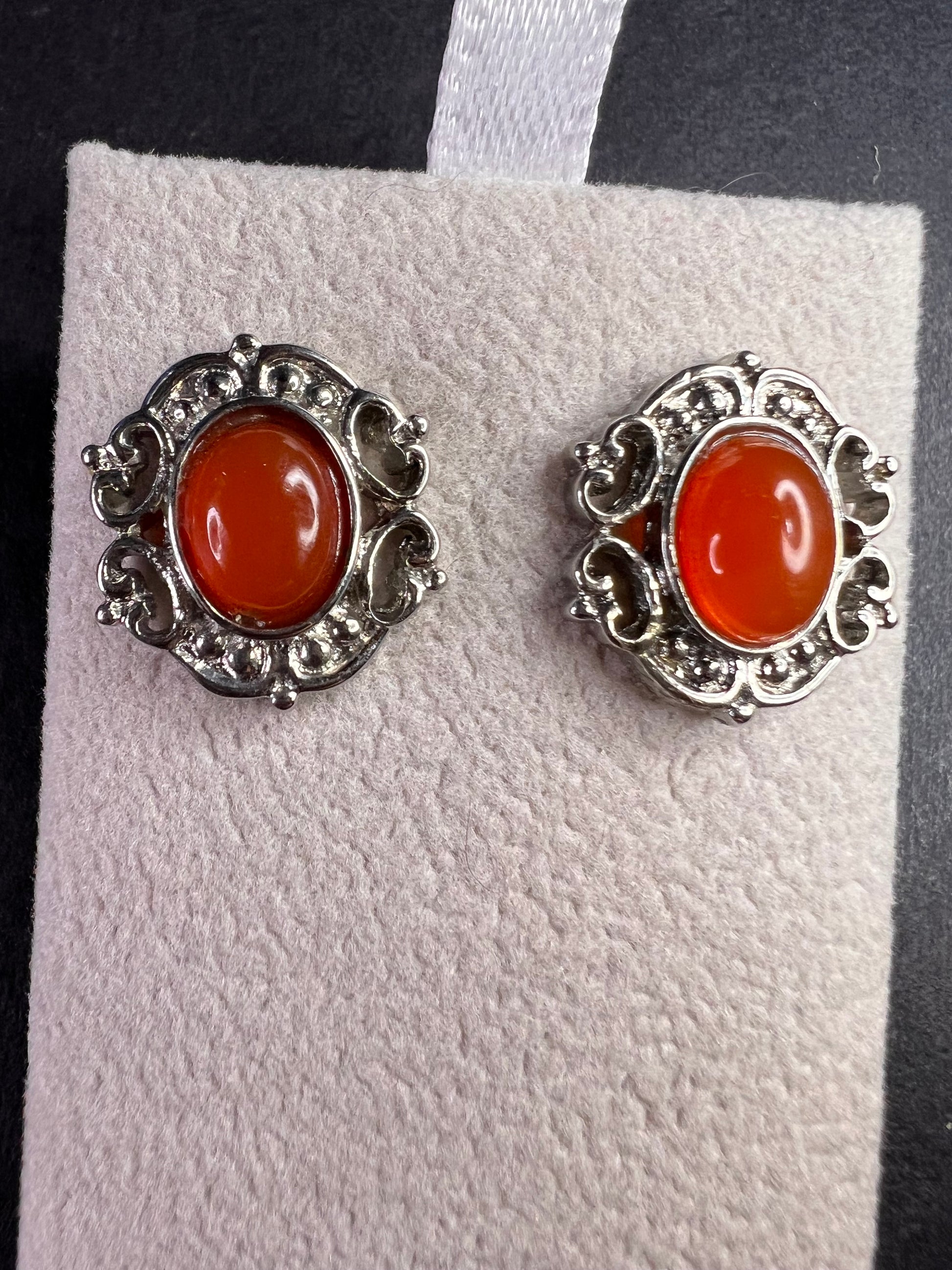 Genuine oval cut carnelian stones set in stainless steel with disc backs