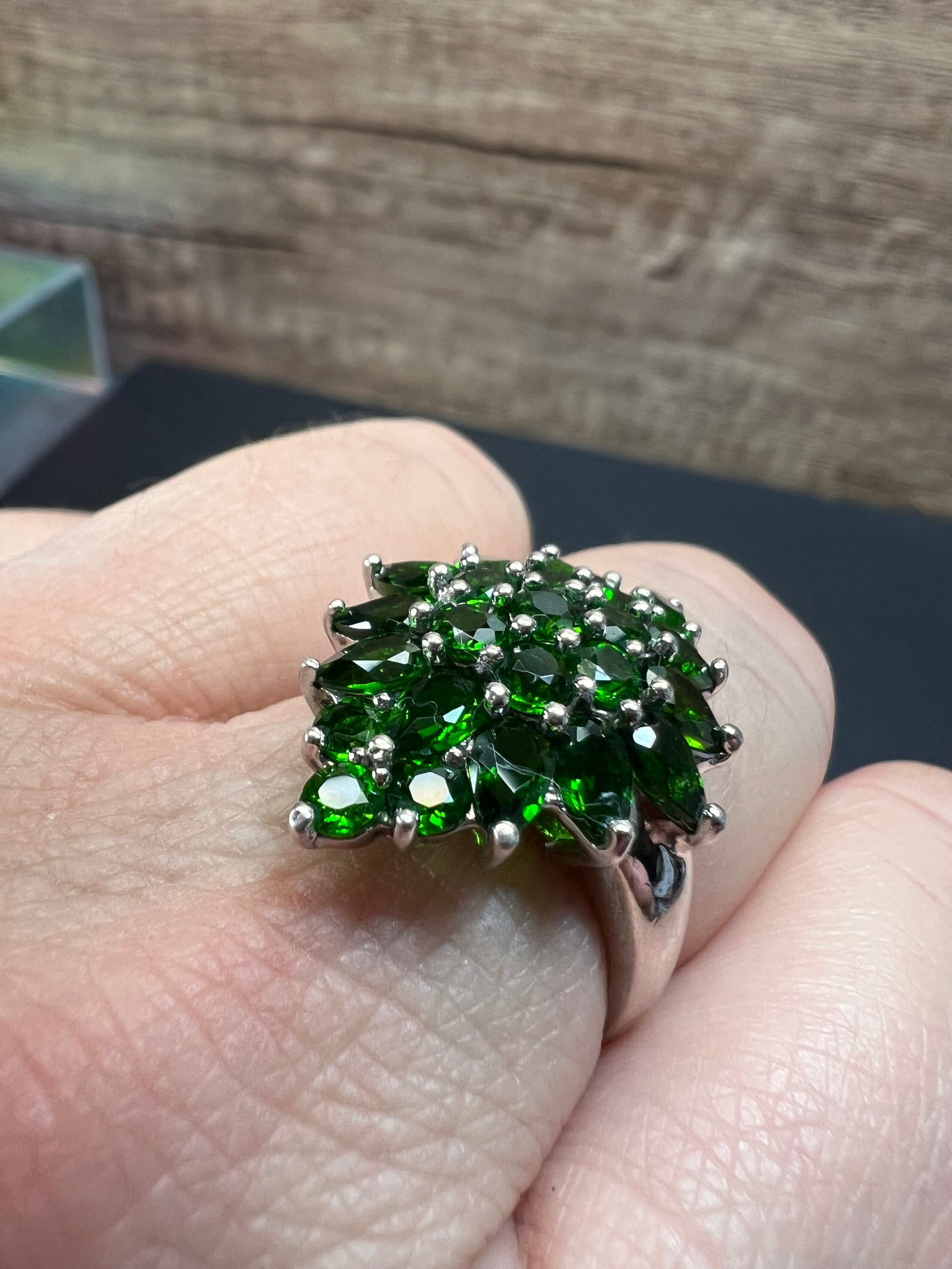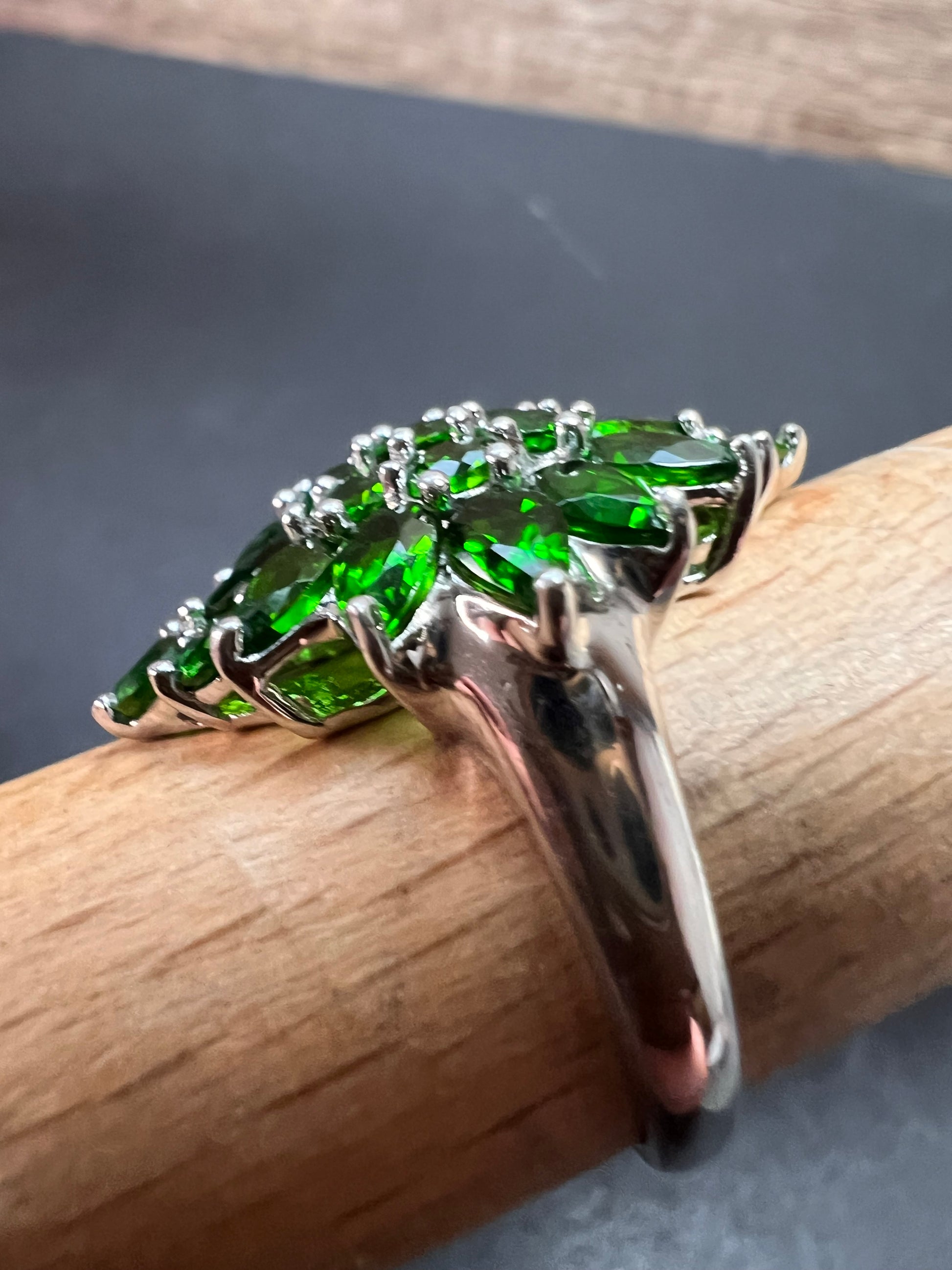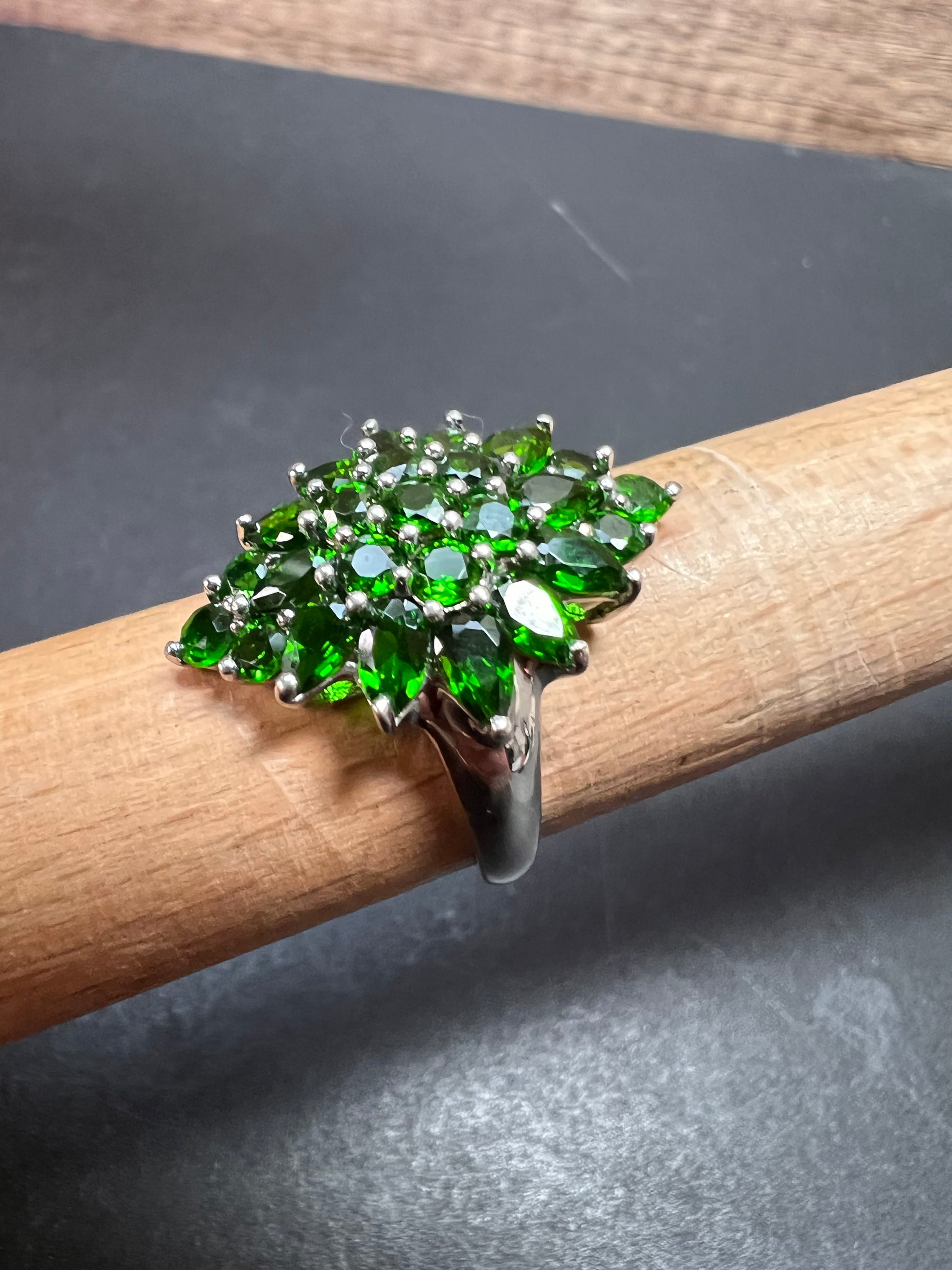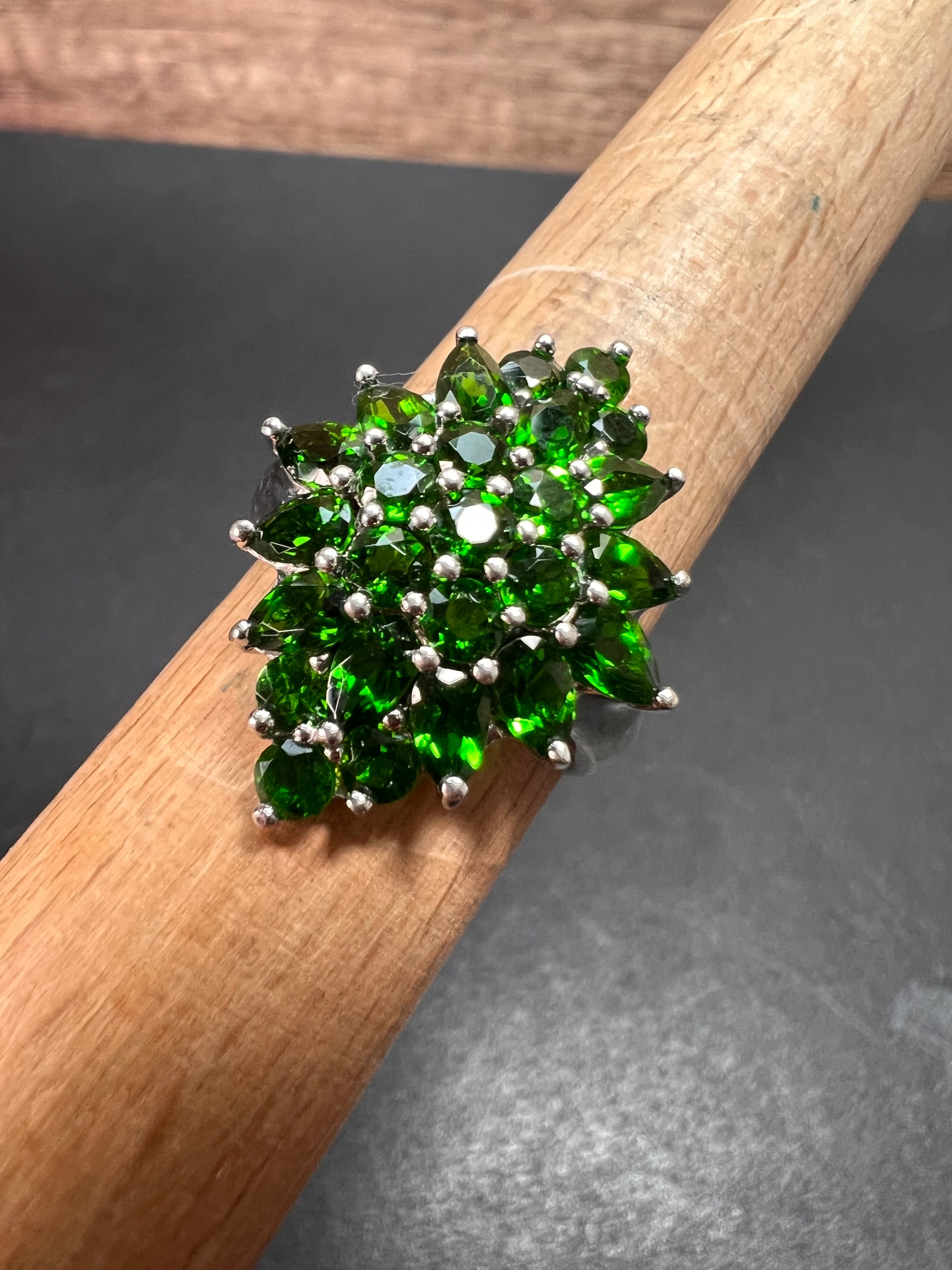 Chrome diopside sterling silver cocktail ring size 8