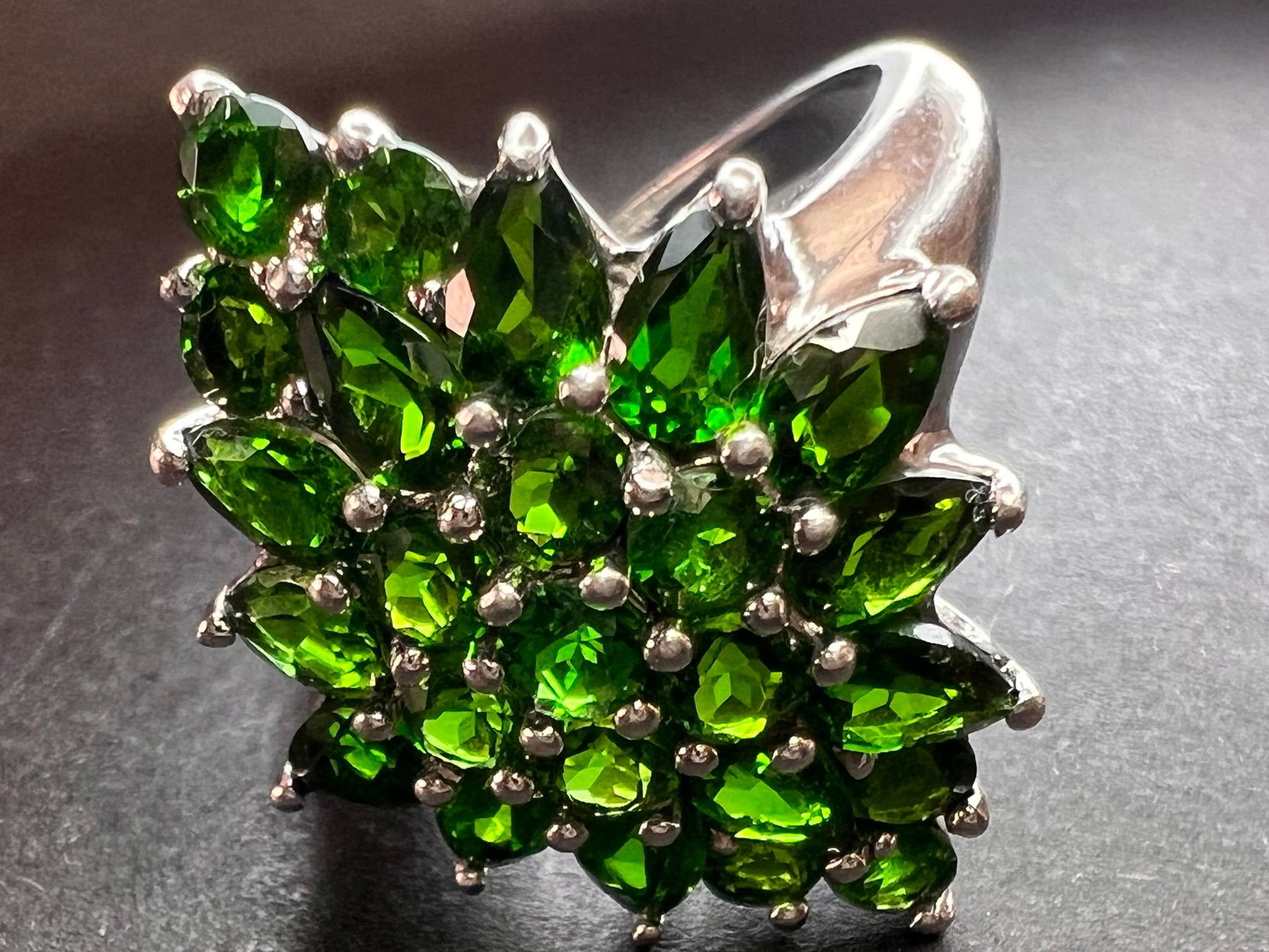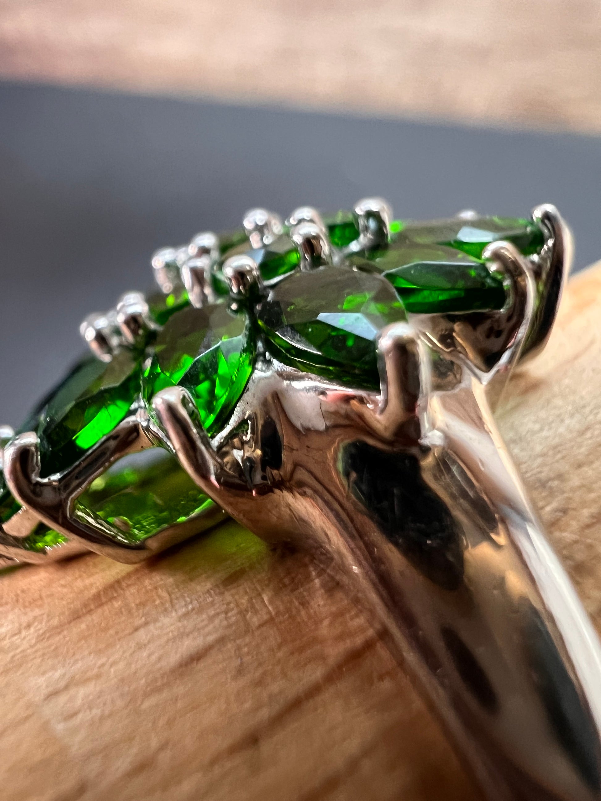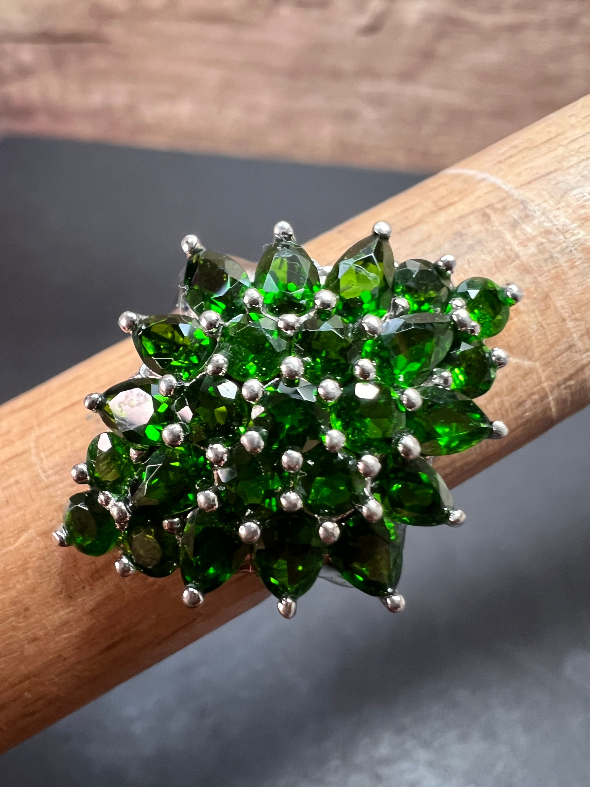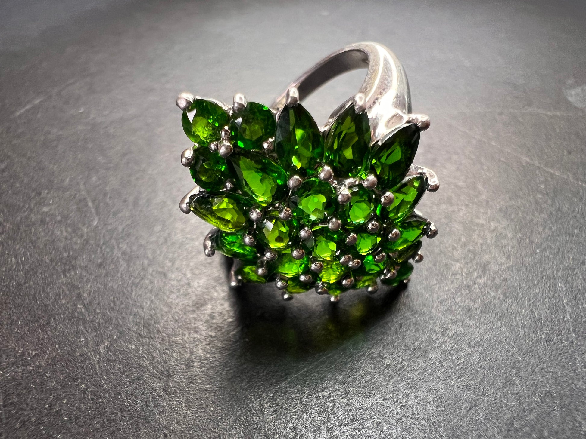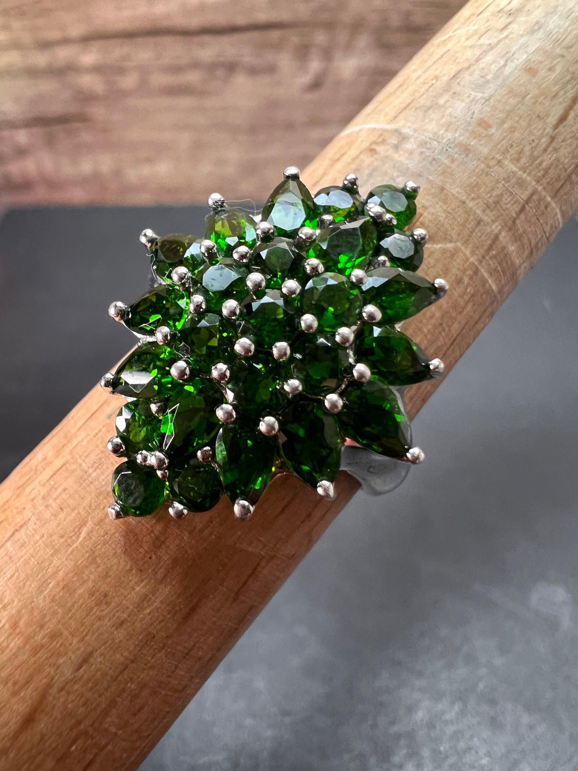 Chrome diopside sterling silver cocktail ring size 8