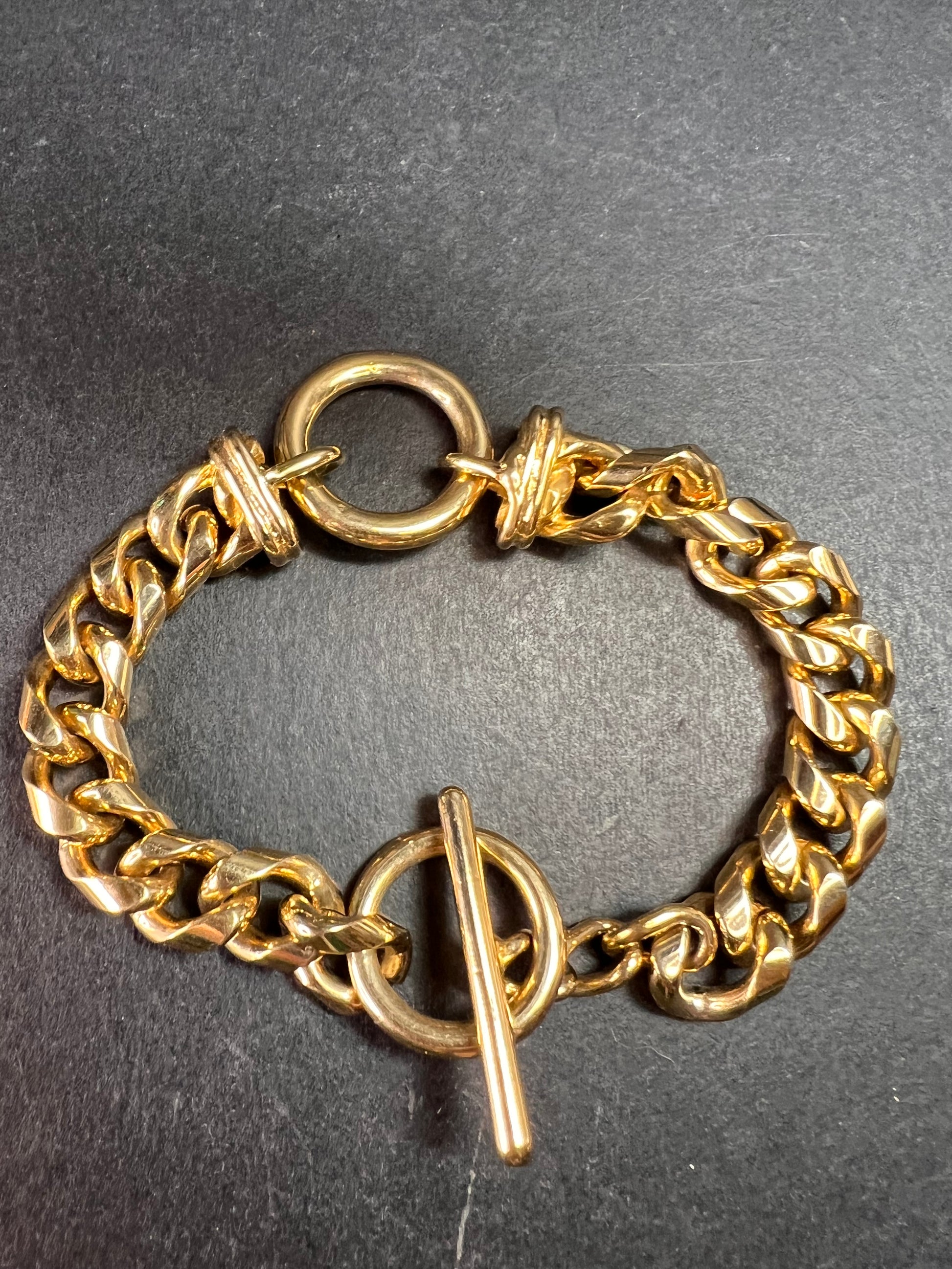 Chunky Gold Tone Curb Chain O-Ring Toggle Clasp Bracelet Costume Jewelry