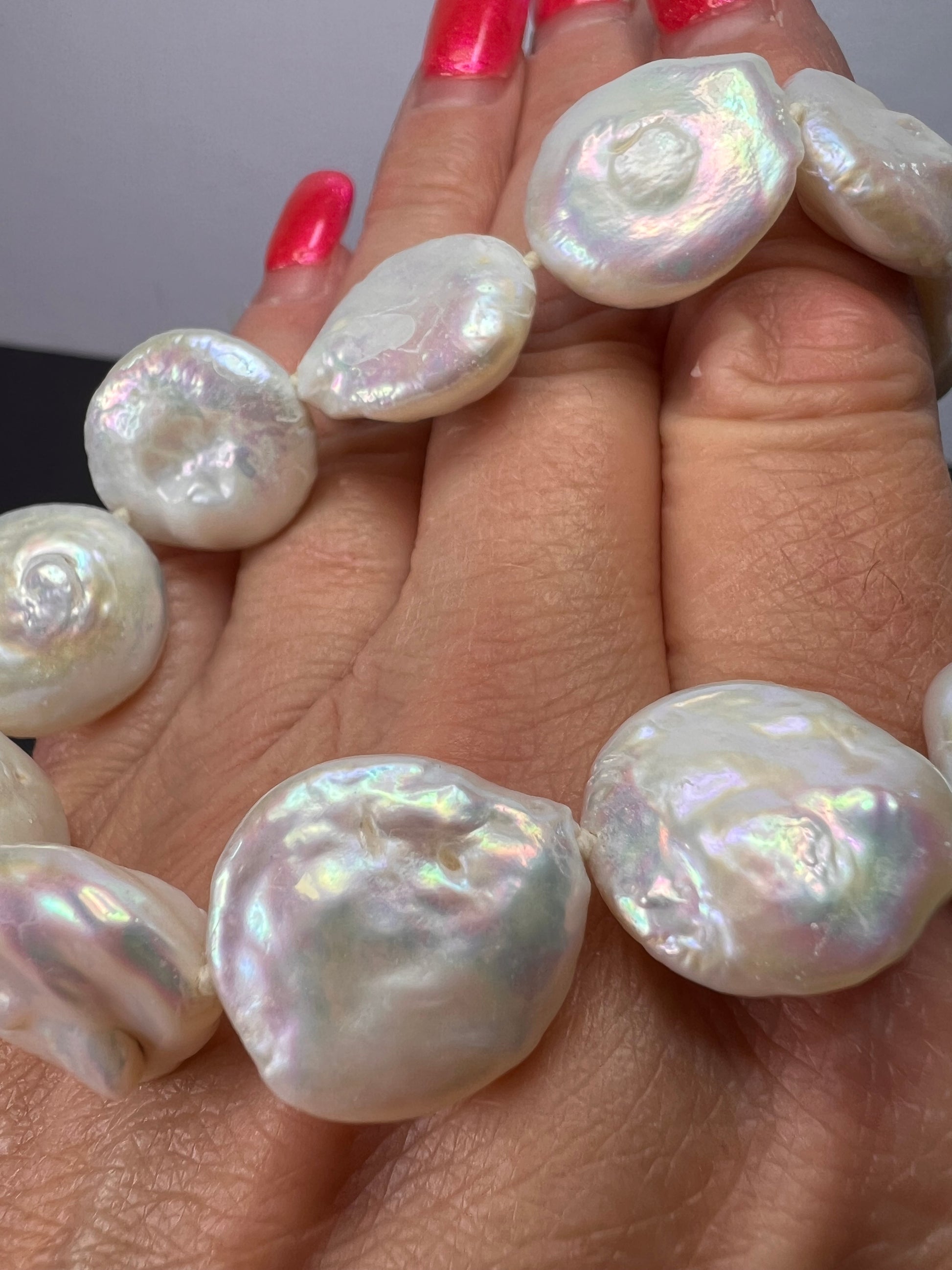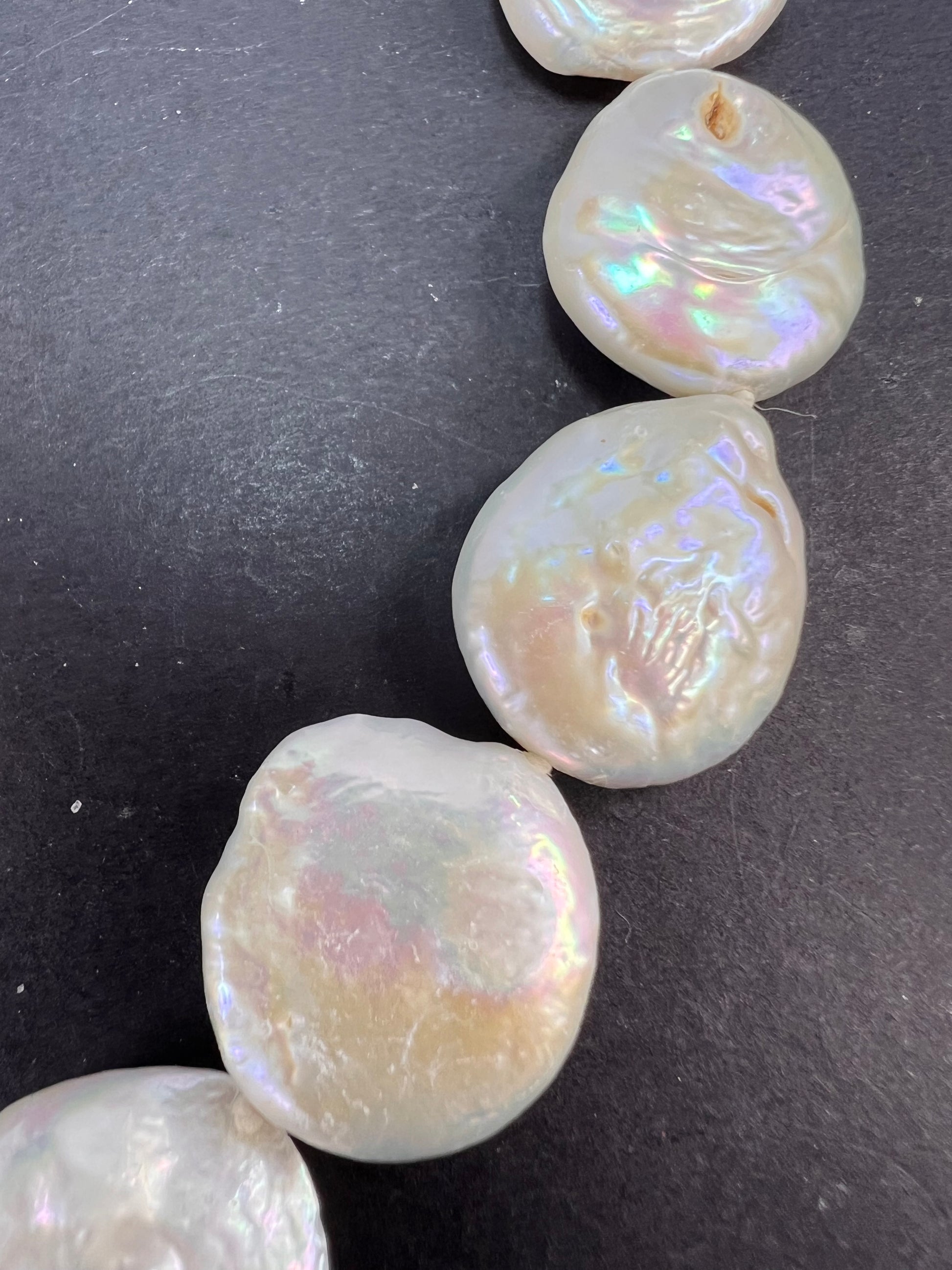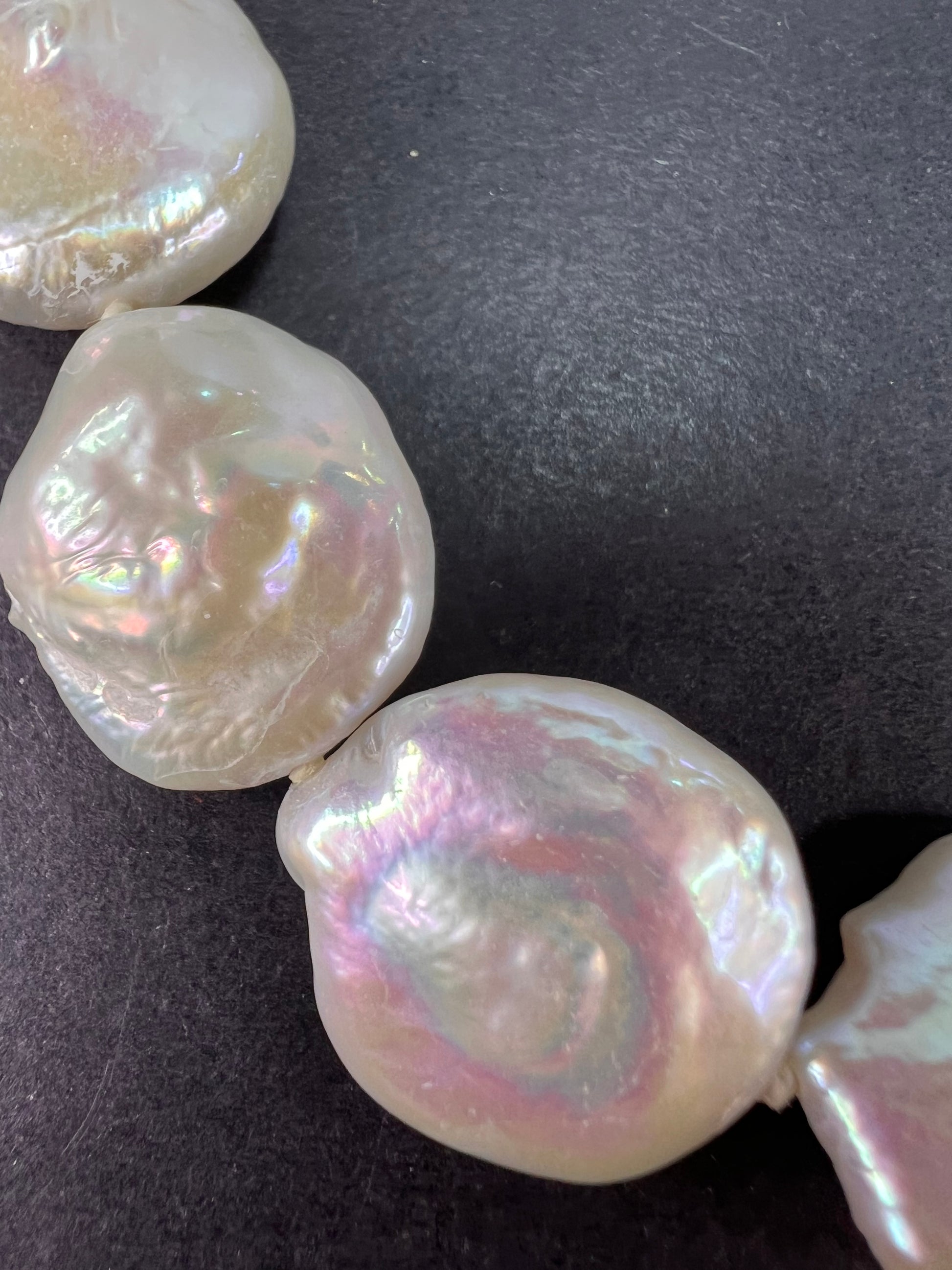 Cultured freshwater coin pearl necklace with sterling silver clasp and extension