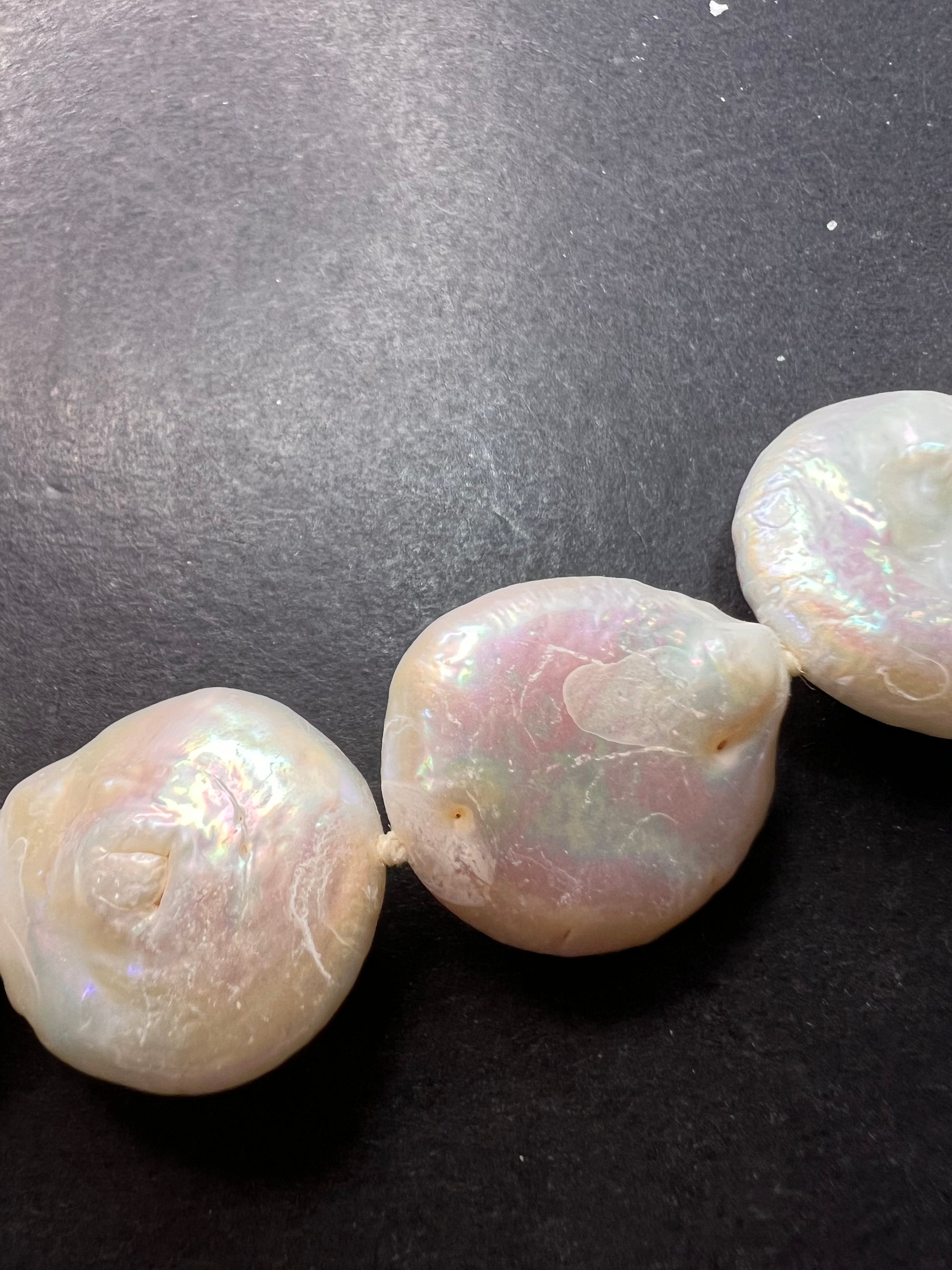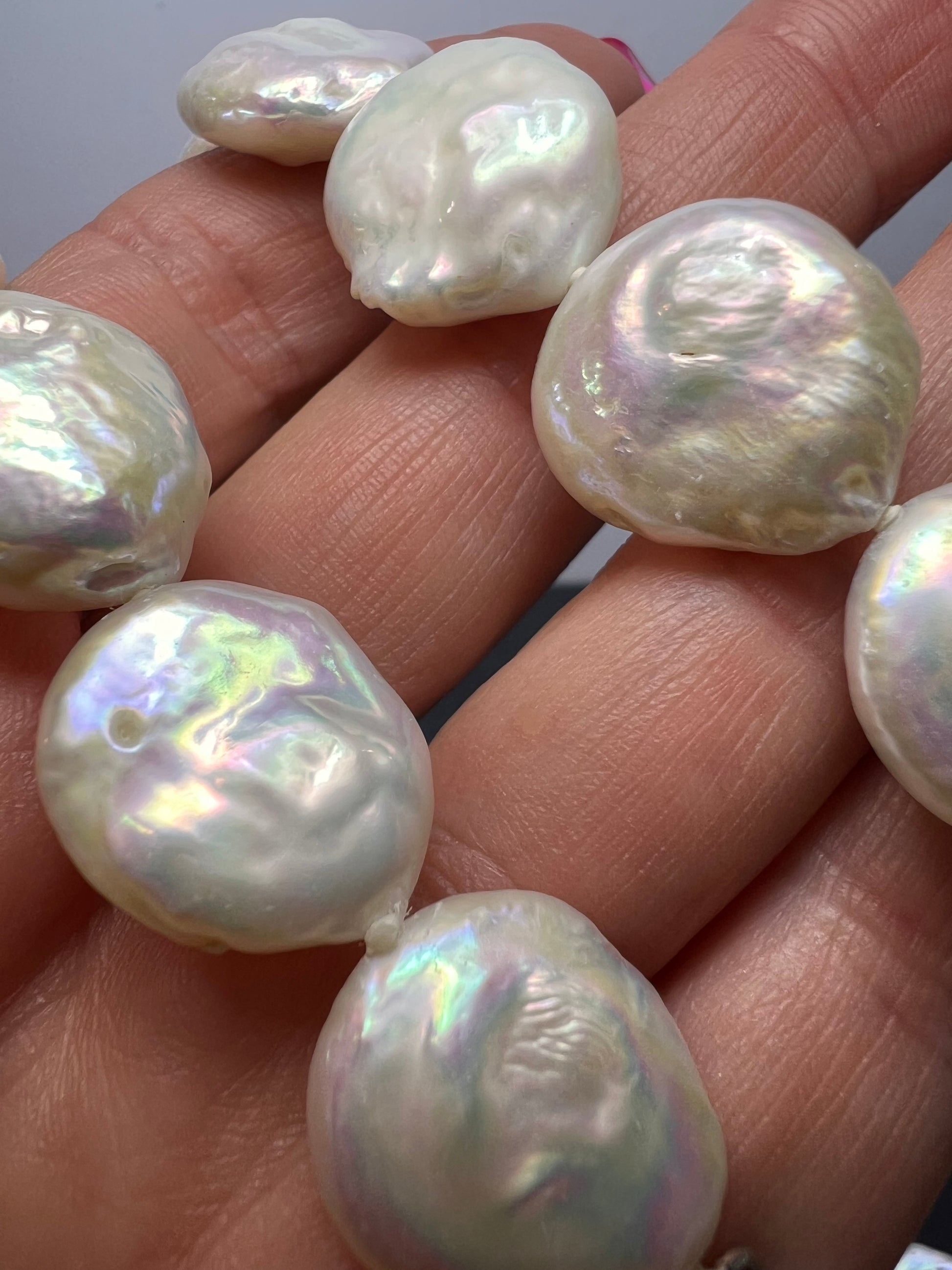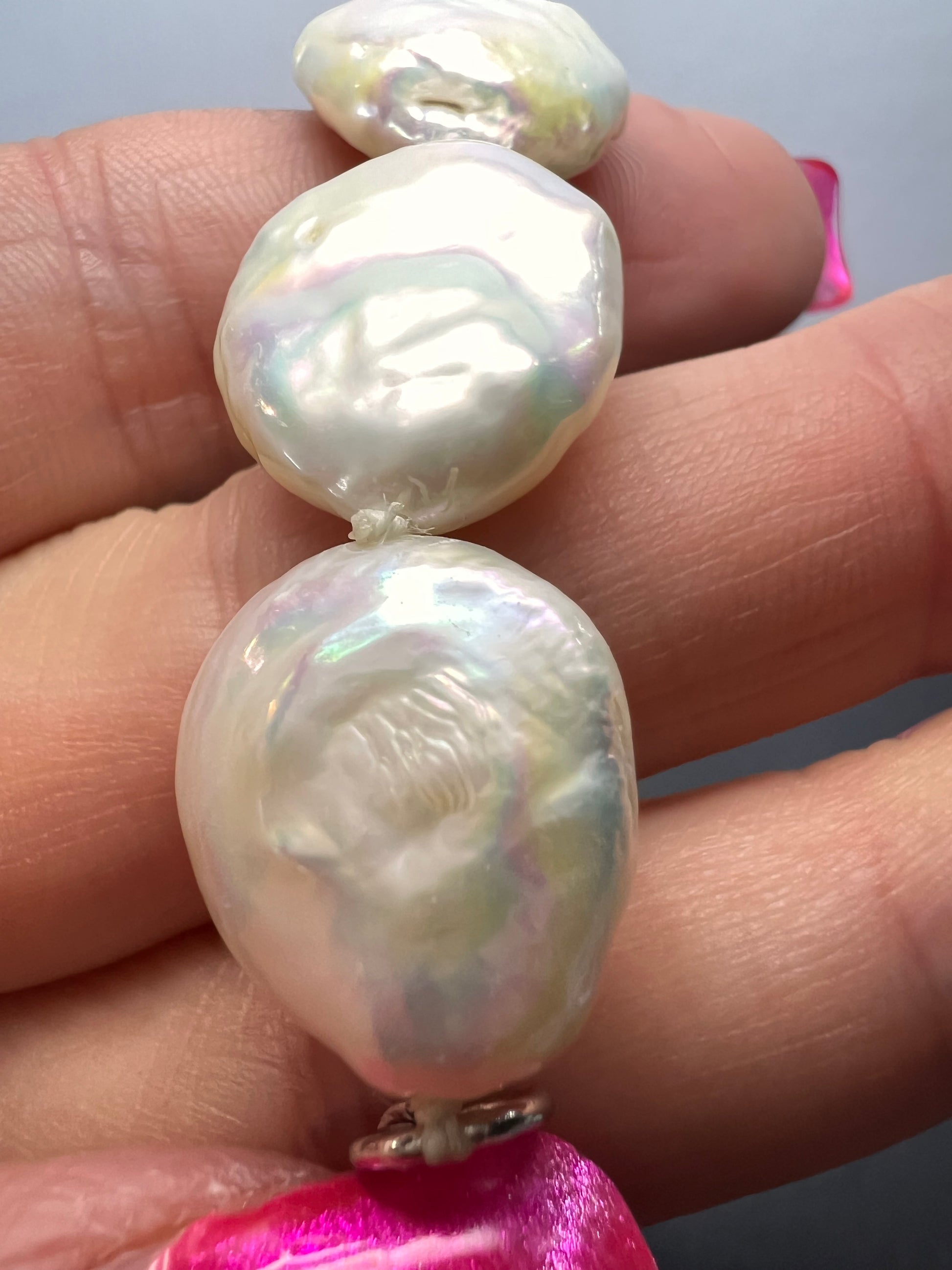 Cultured freshwater coin pearl necklace with sterling silver clasp and extension