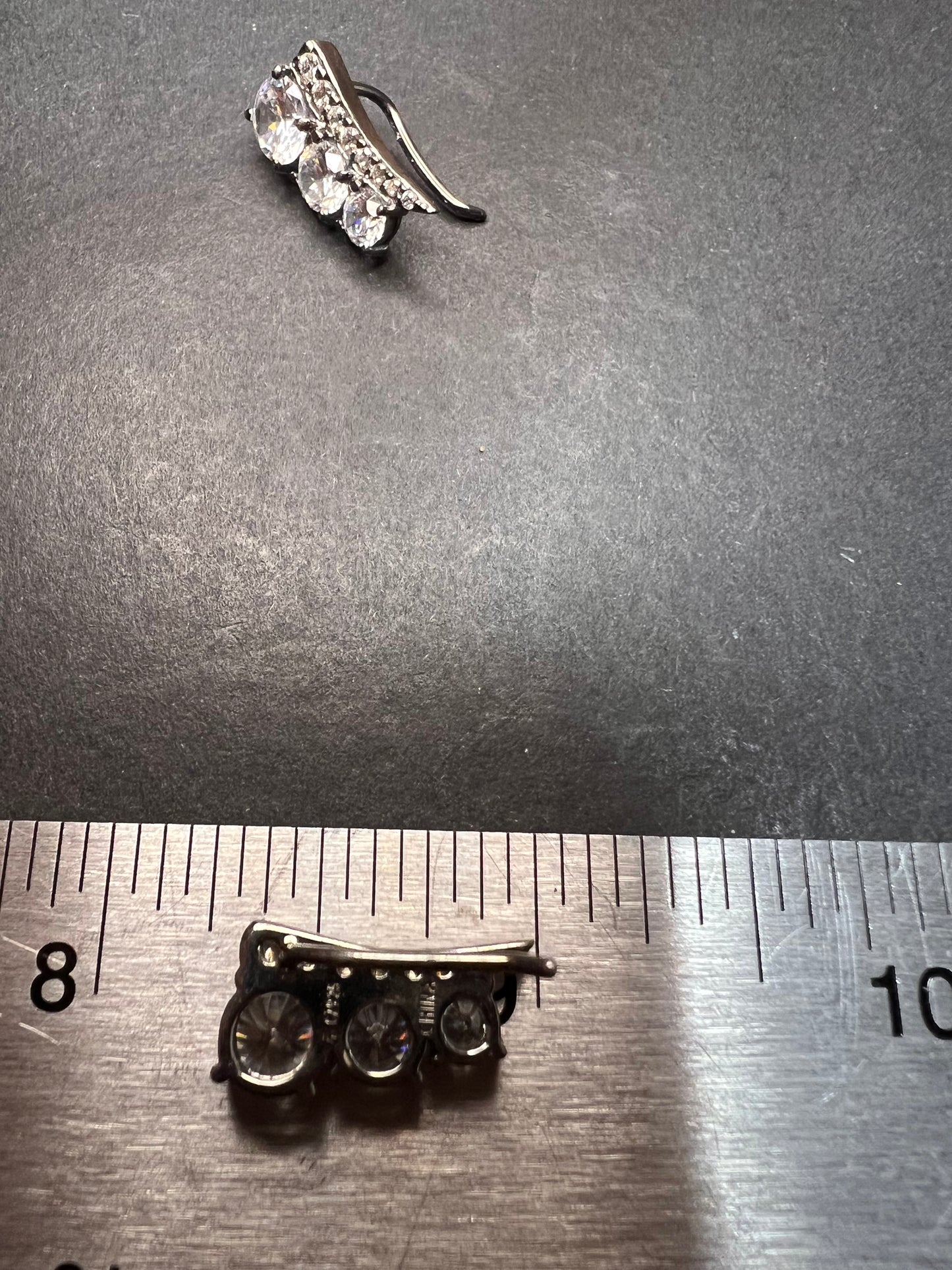 White / colorless cubic zirconia gemstones prong set in gunmetal rhodium plated over sterling silver. Box not included. 925 CZ CN