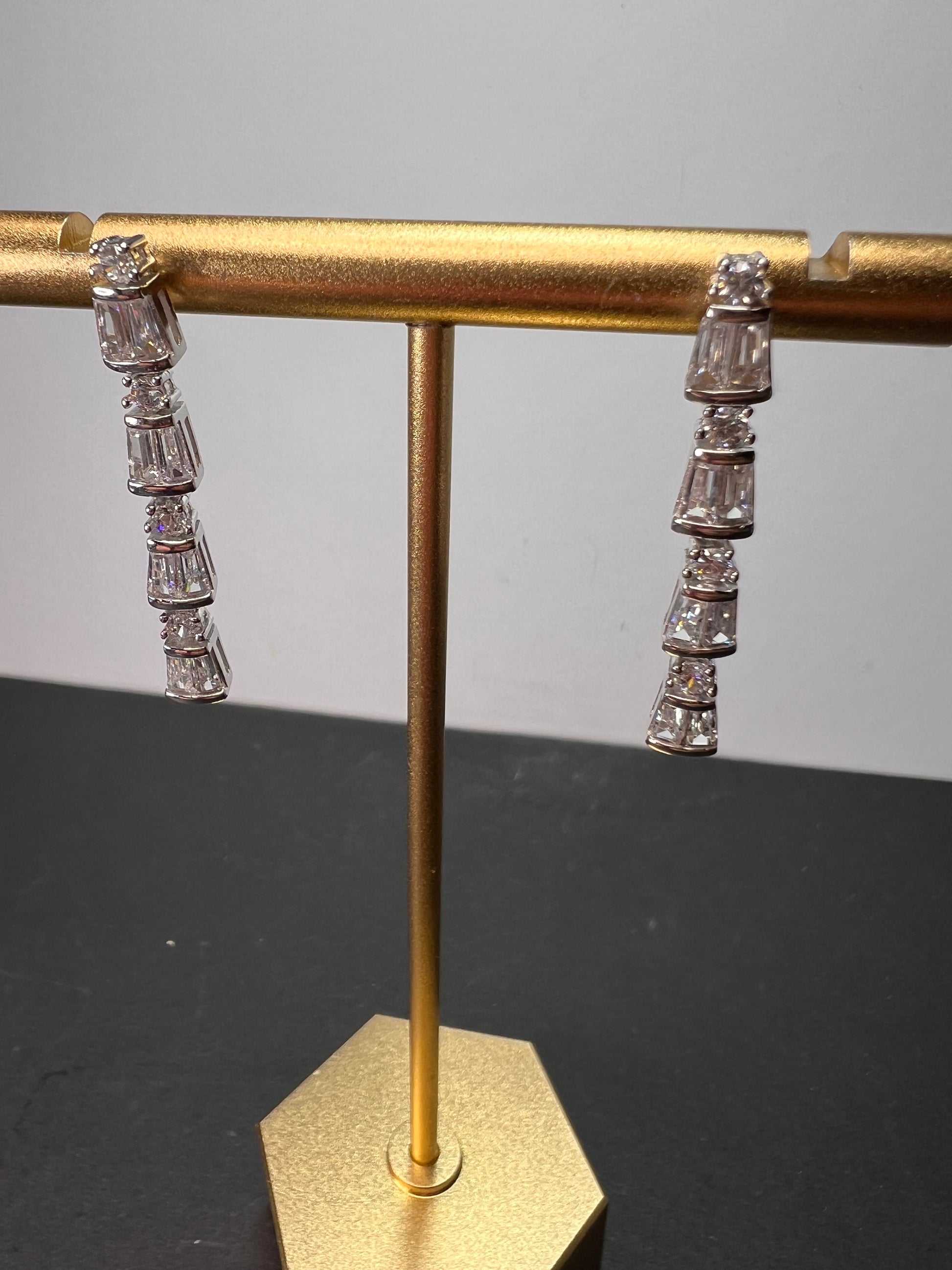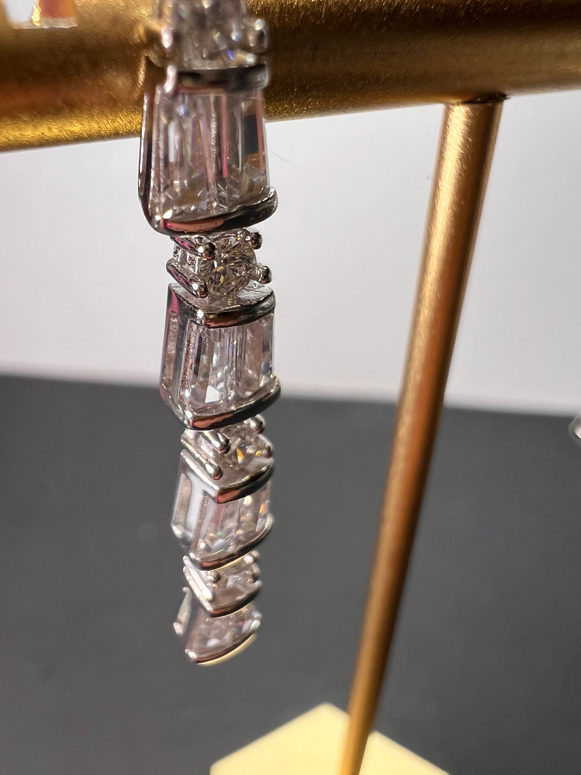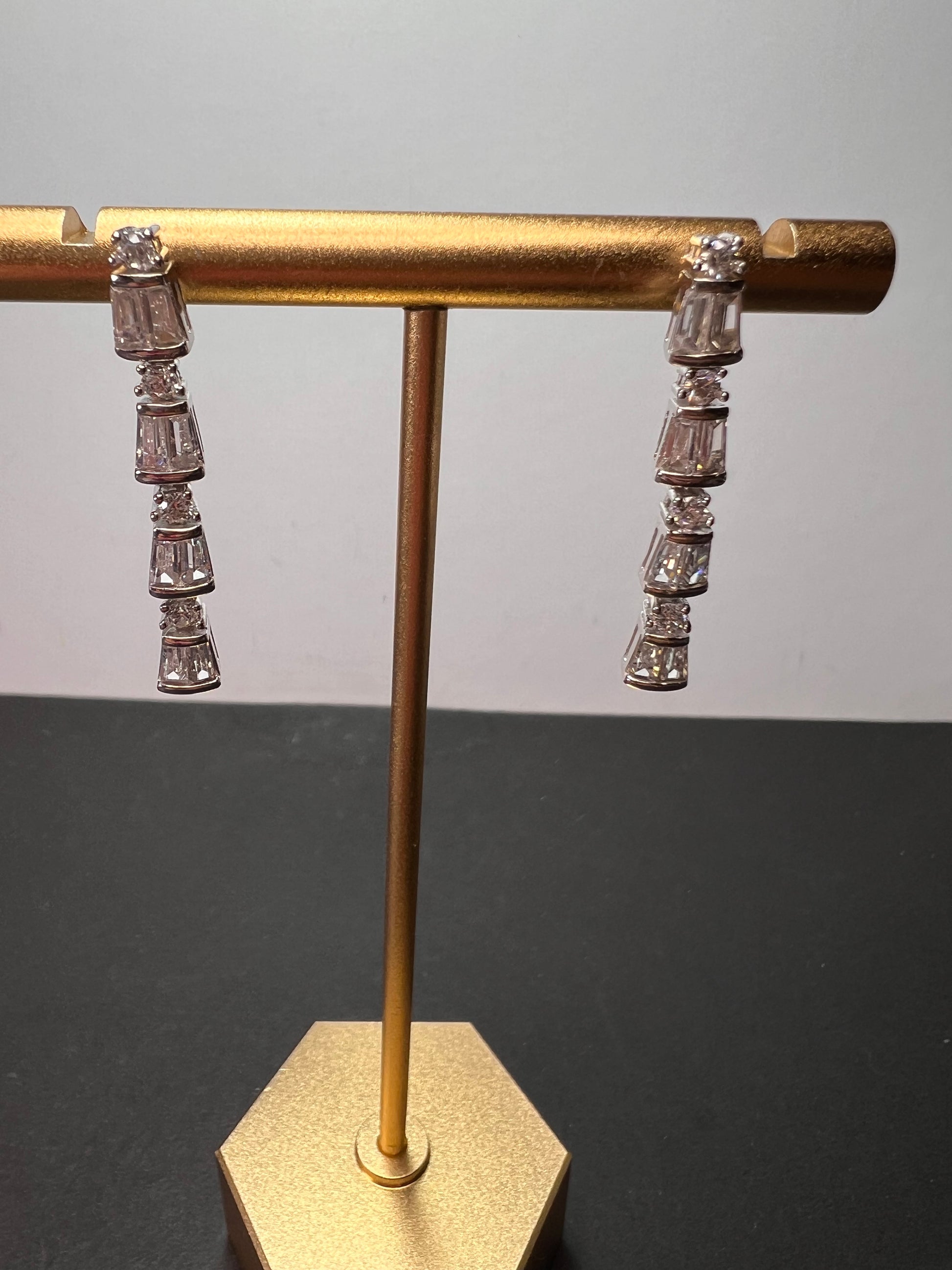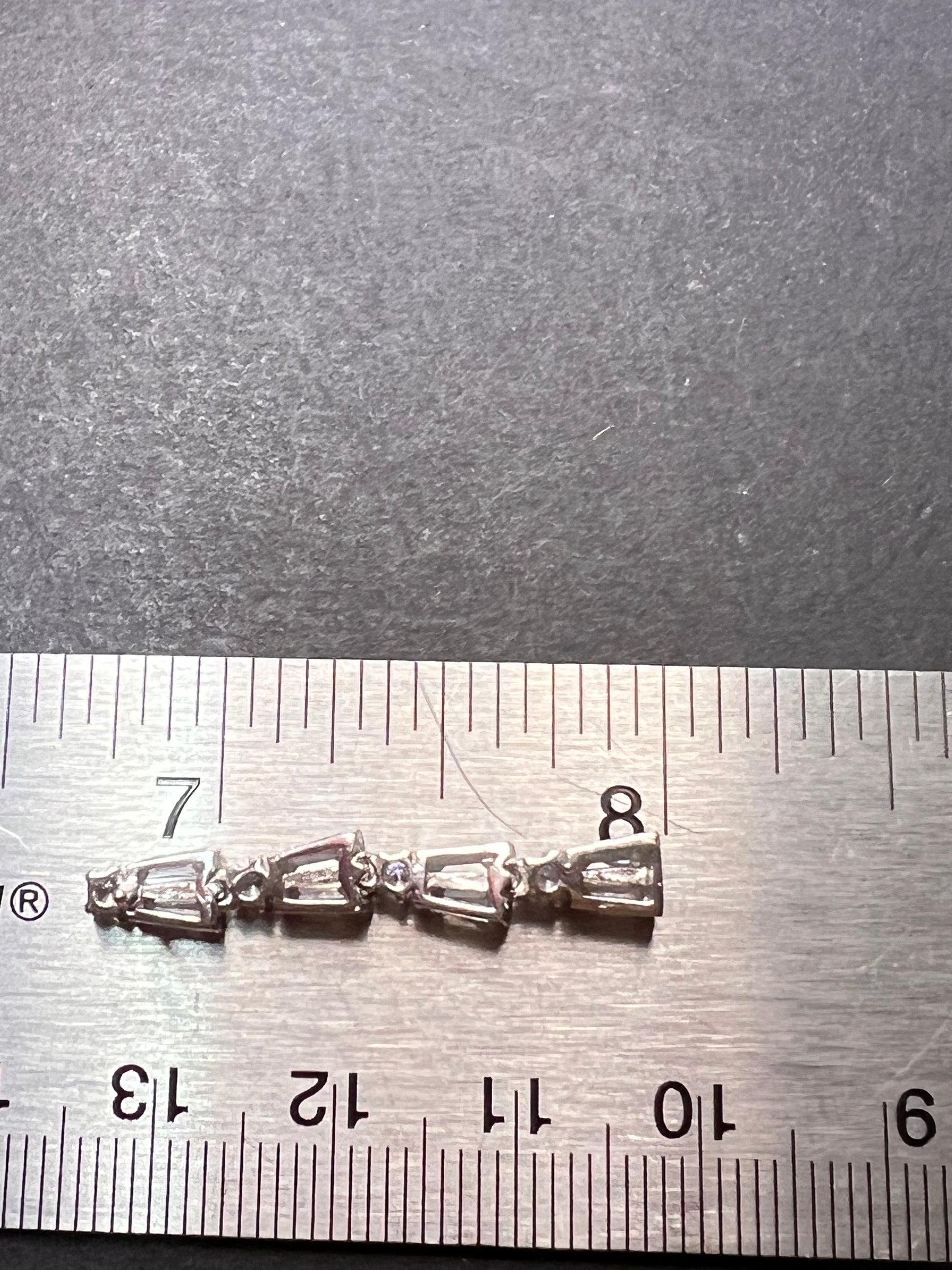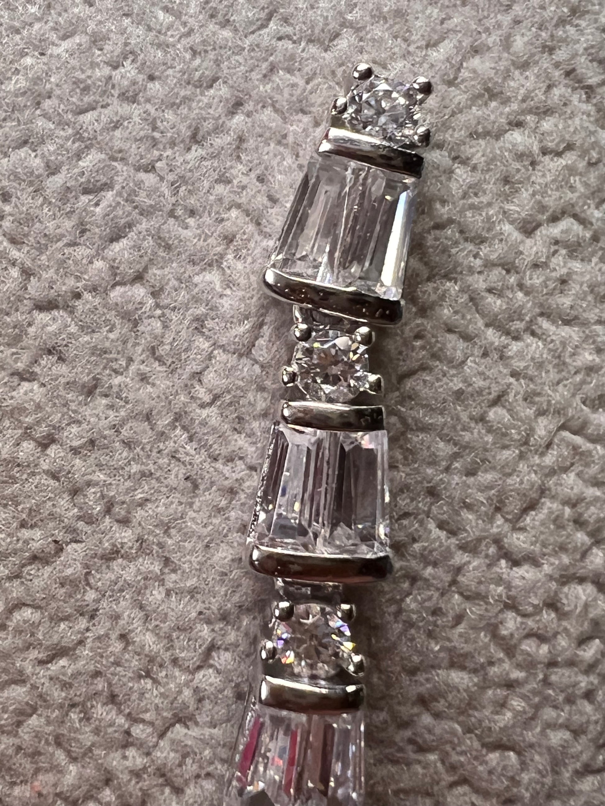 White cubic zirconia stones set in a rhodium plated over sterling silver setting.