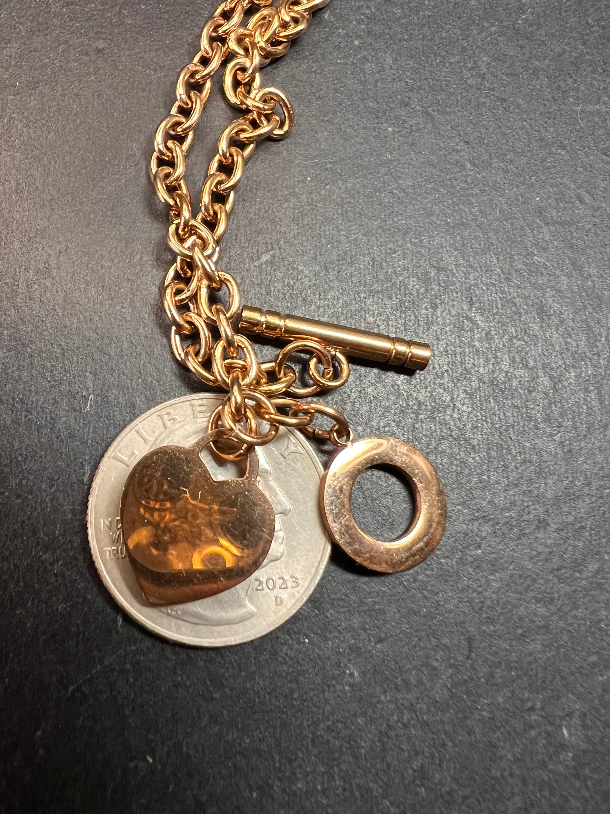 Rose Gold Tone Oval Link Toggle Bracelet Heart Charm 7” Pre-Owned