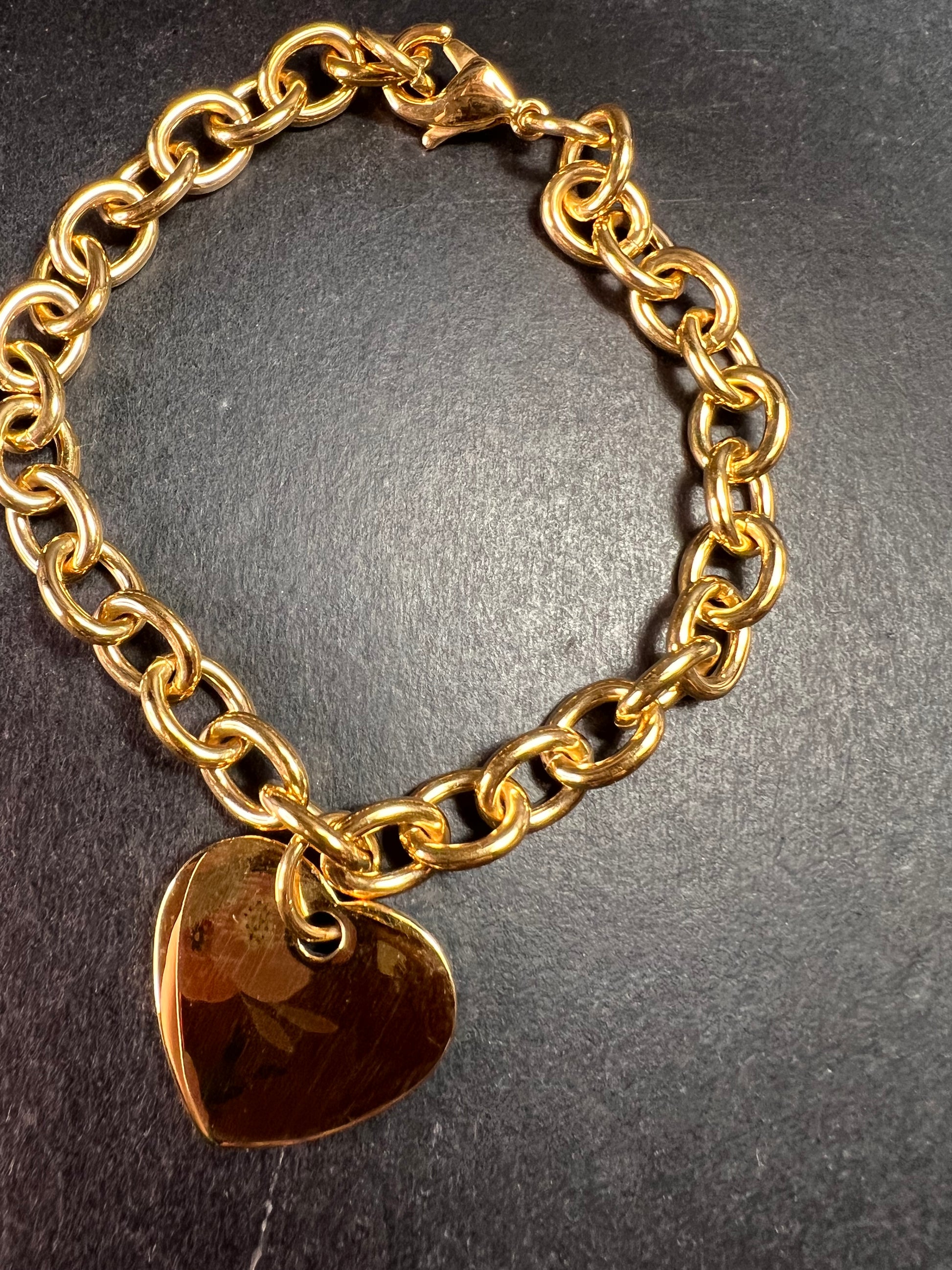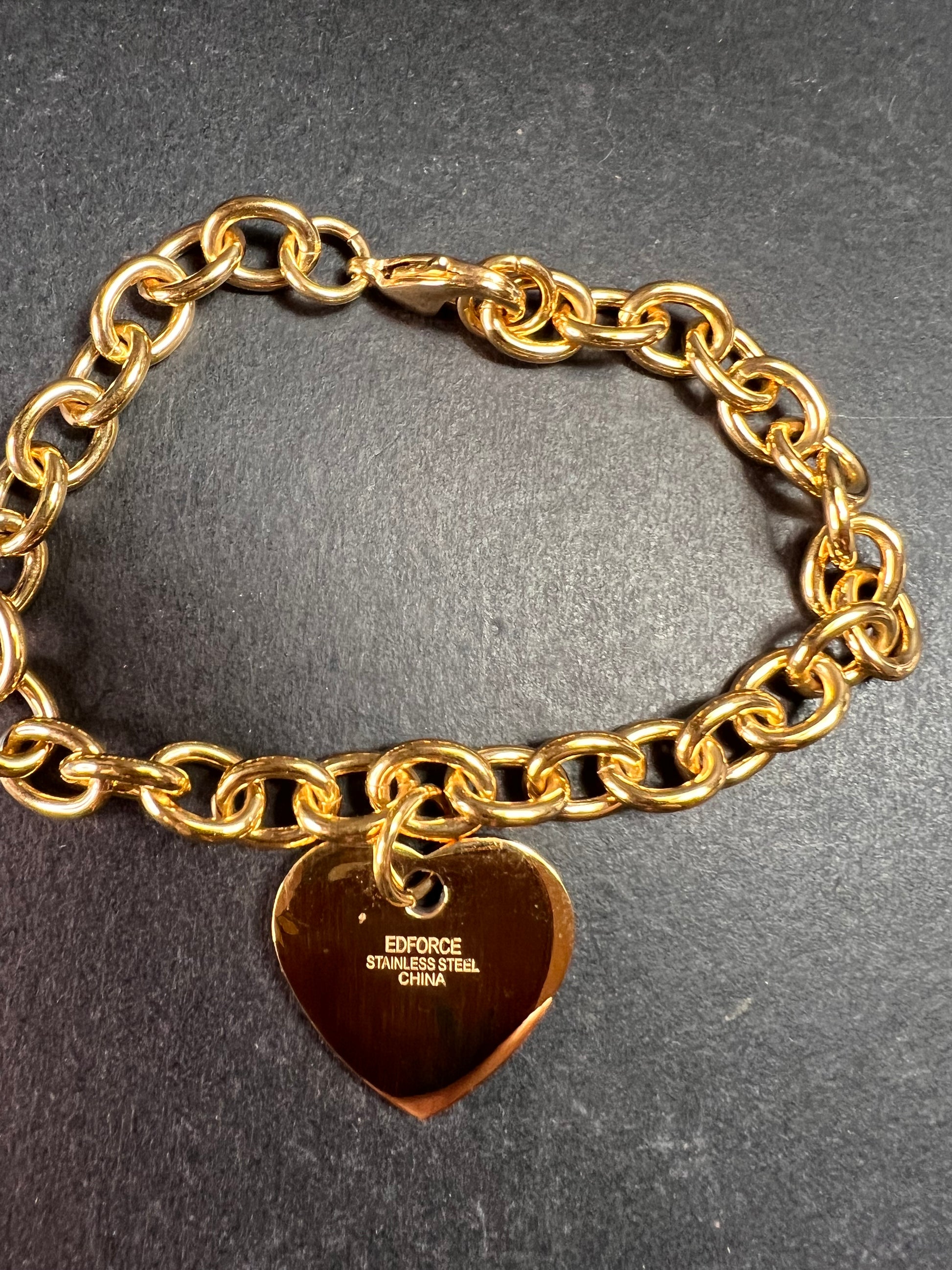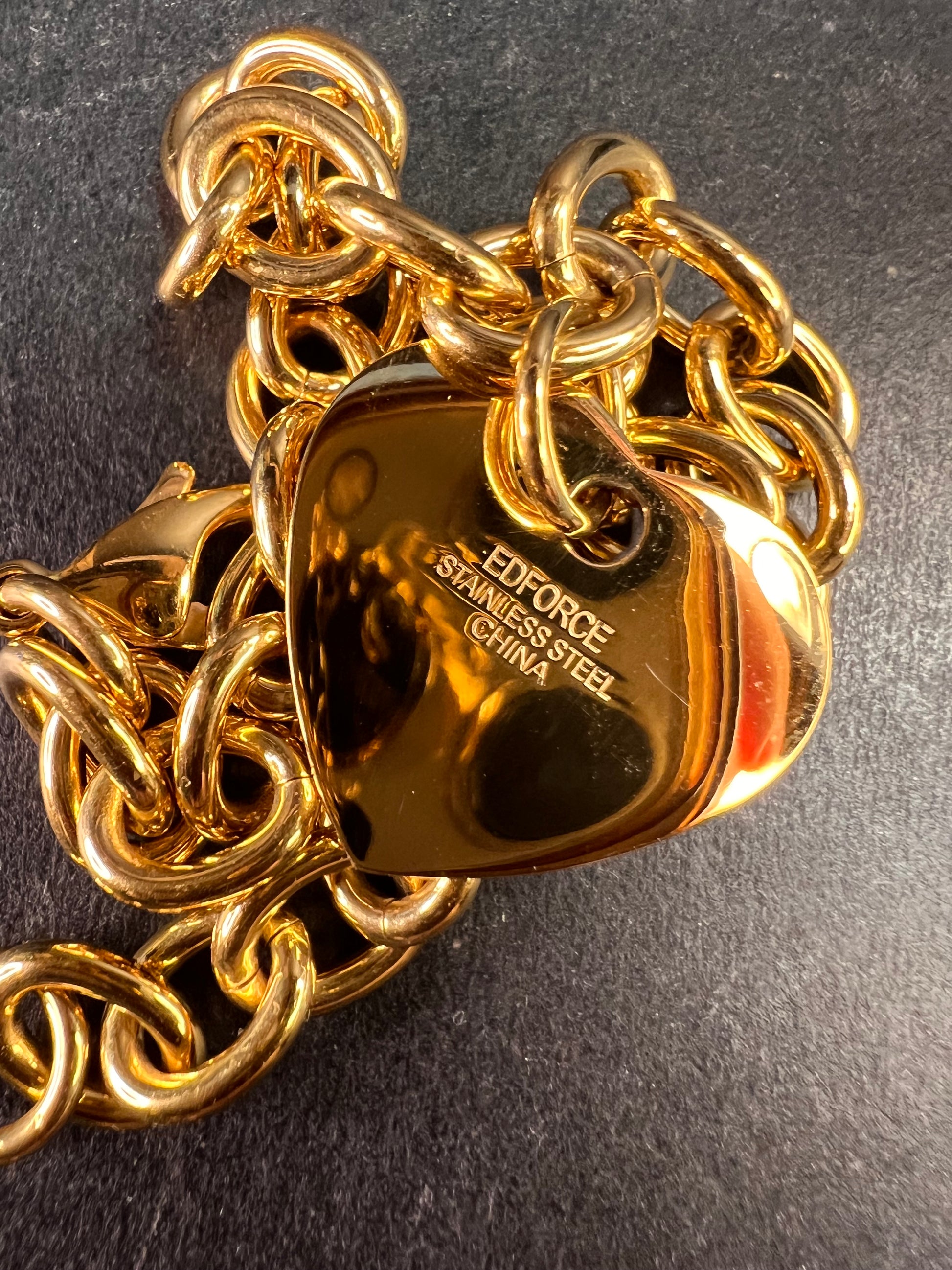 EDFORCE Gold Tone Stainless Steel Chunky Link Heart Charm Bracelet 7.5" NWOT