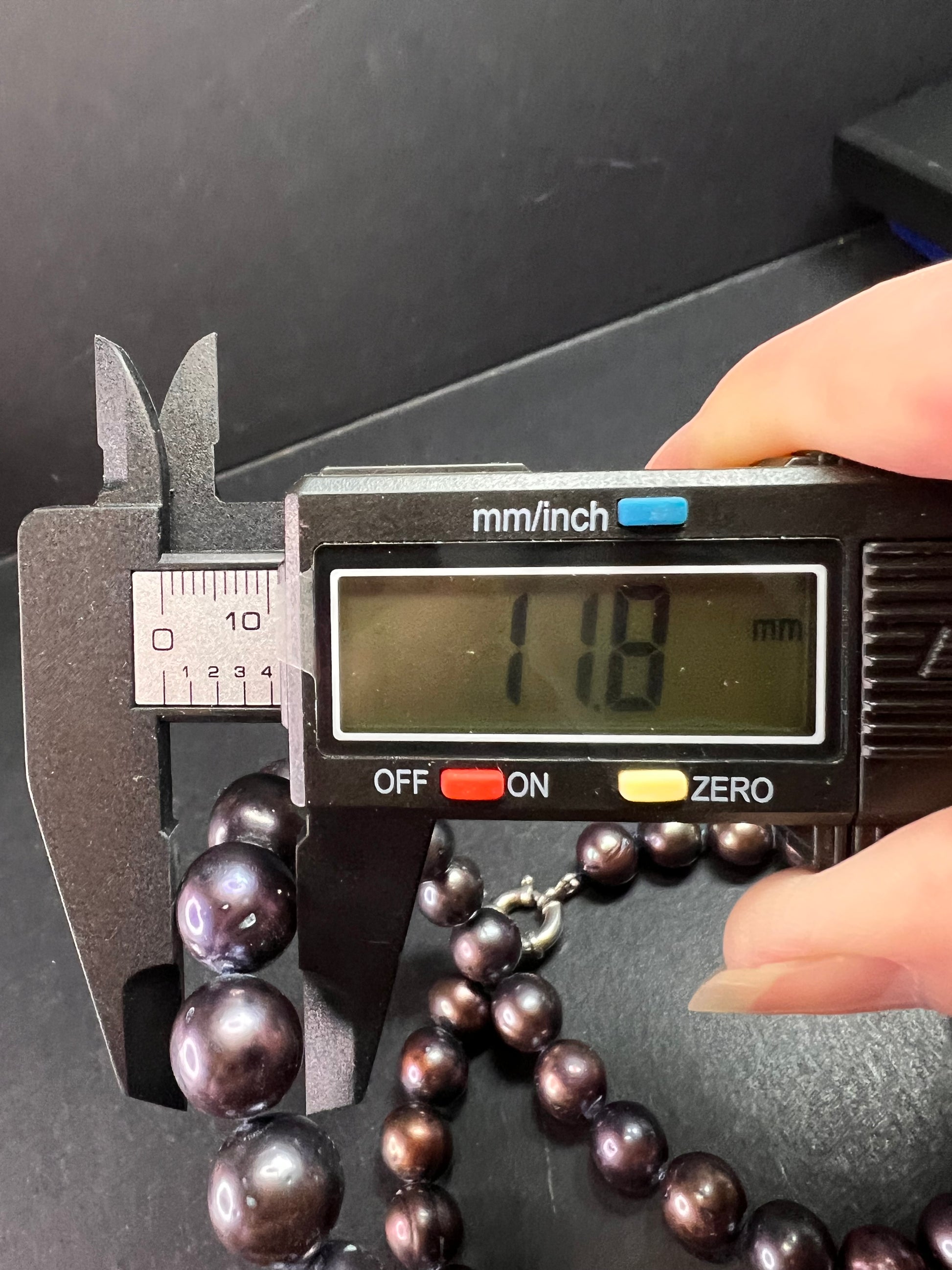 Estate Black Cultured Pearl Necklace 20 Inch 11.8mm 925 Sterling LUC Clasp