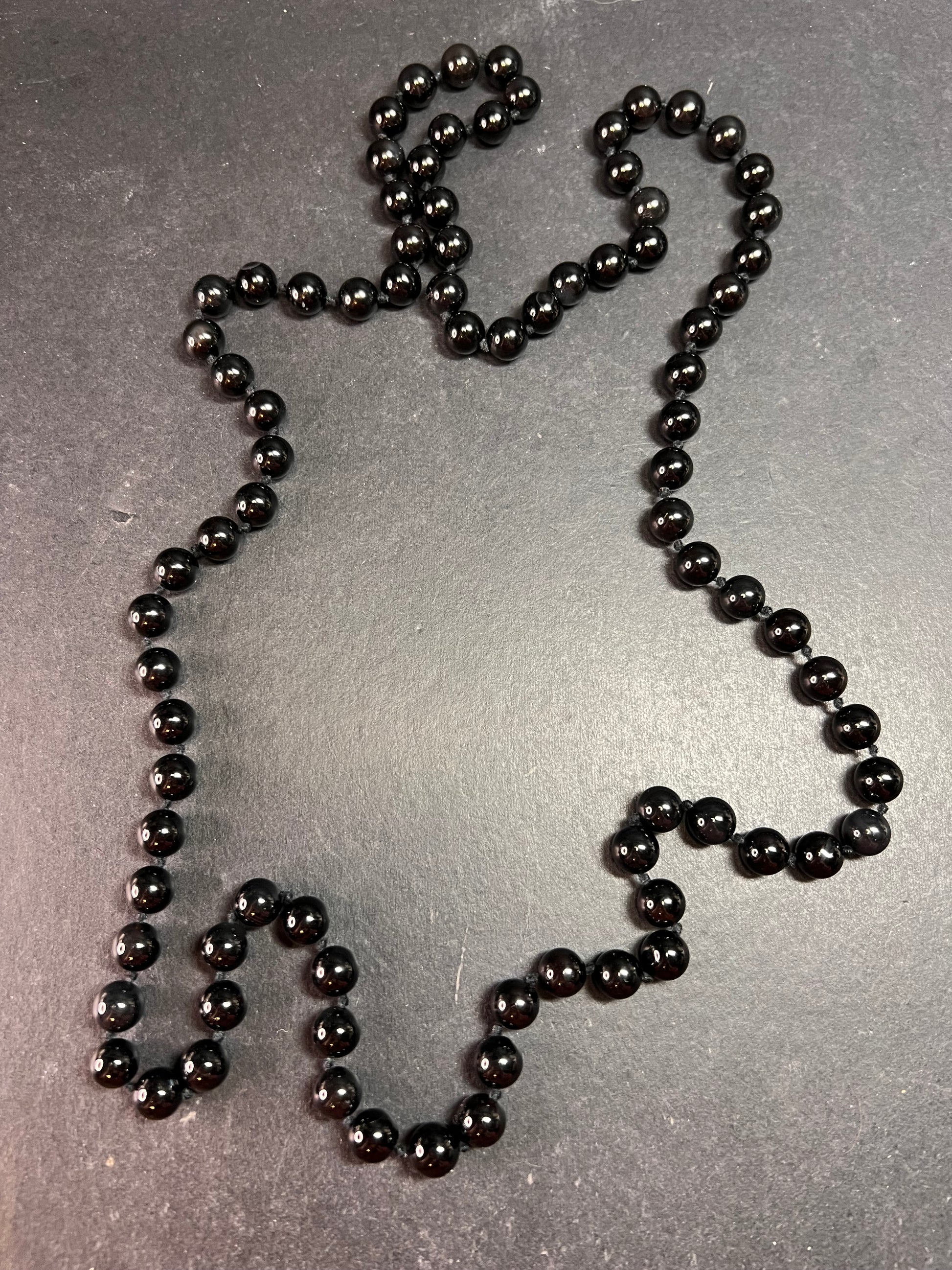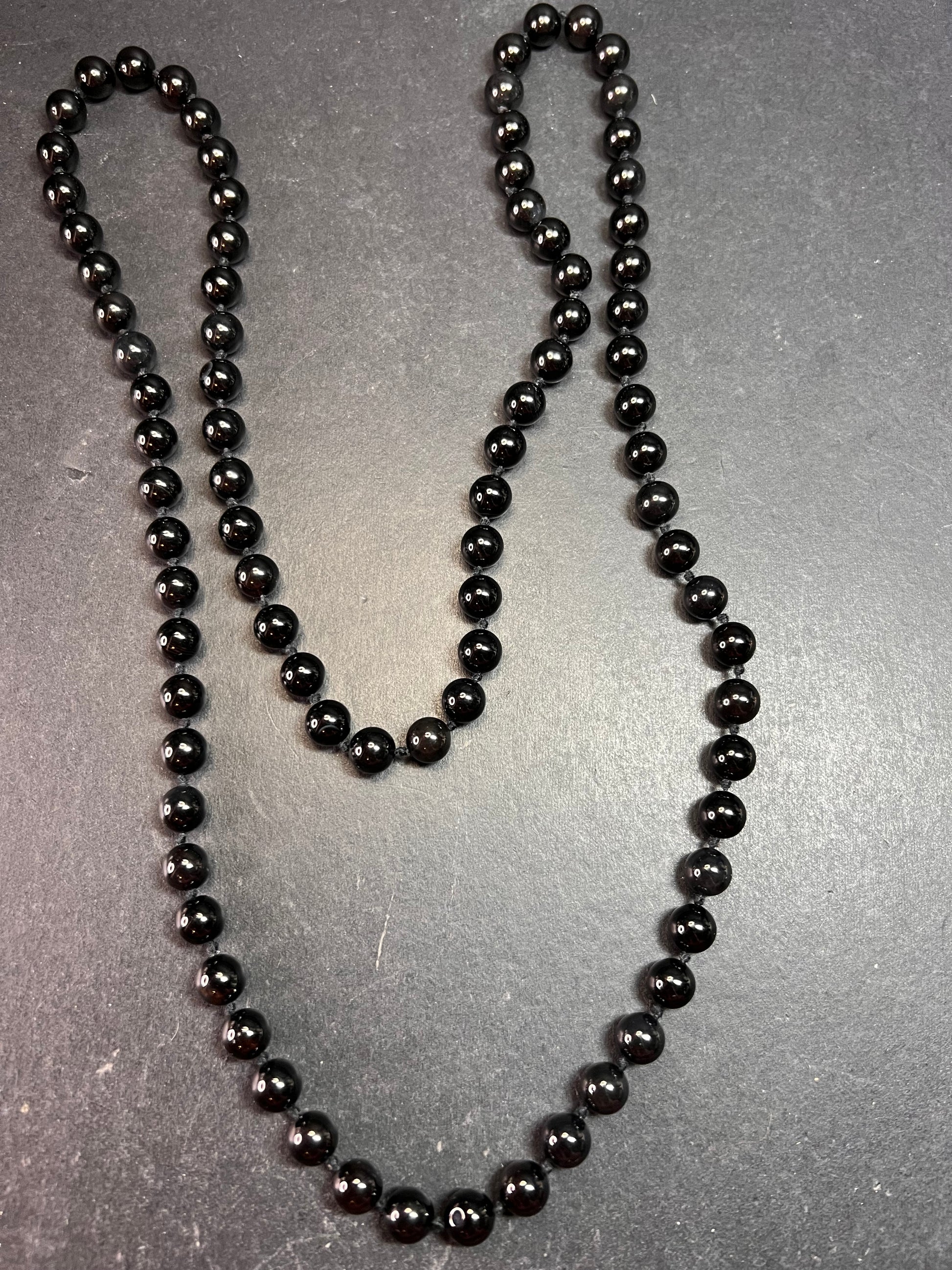 Estate Black Onyx Endless Necklace 8mm Knotted Beads 34 Inch Modern
