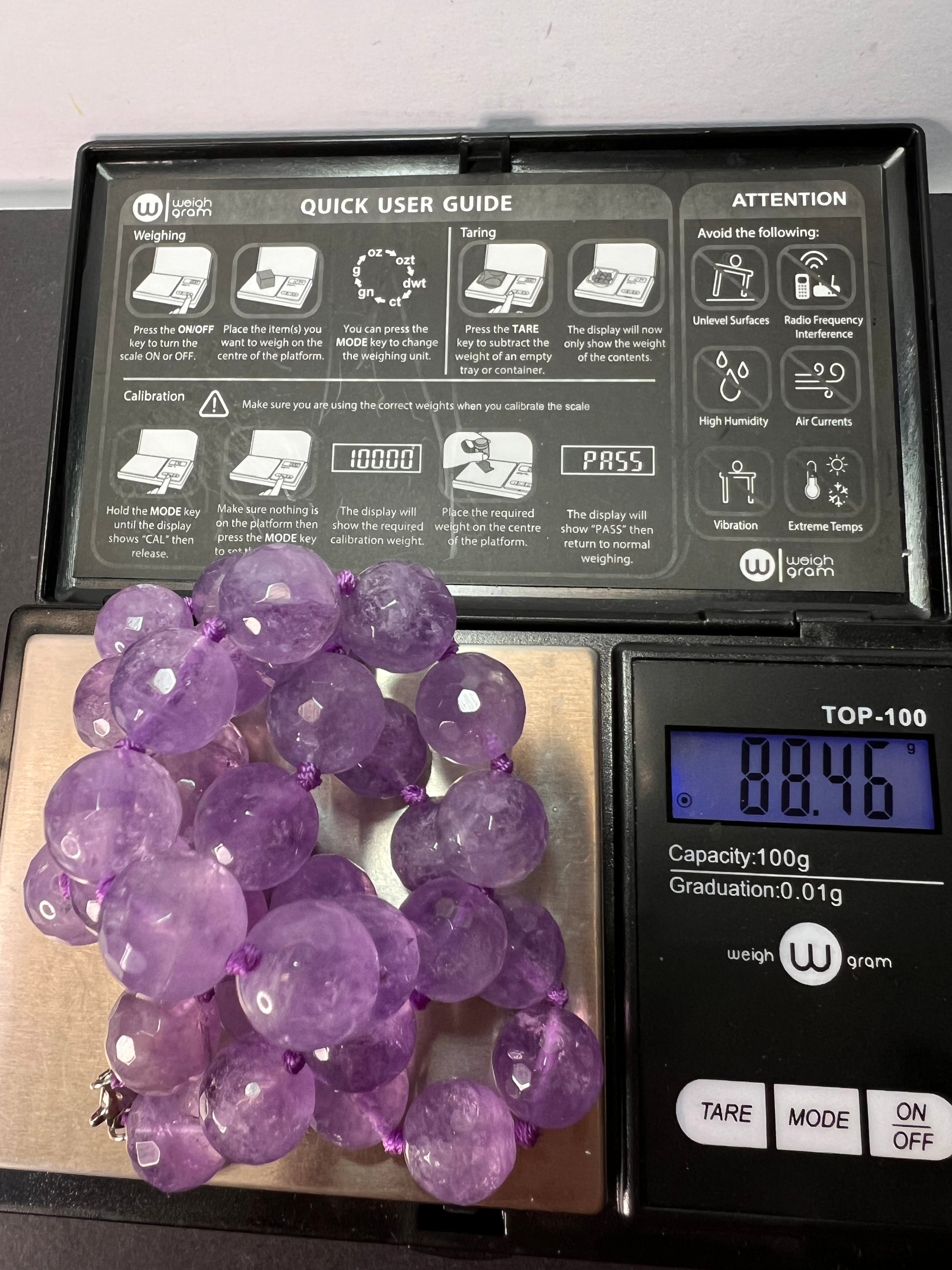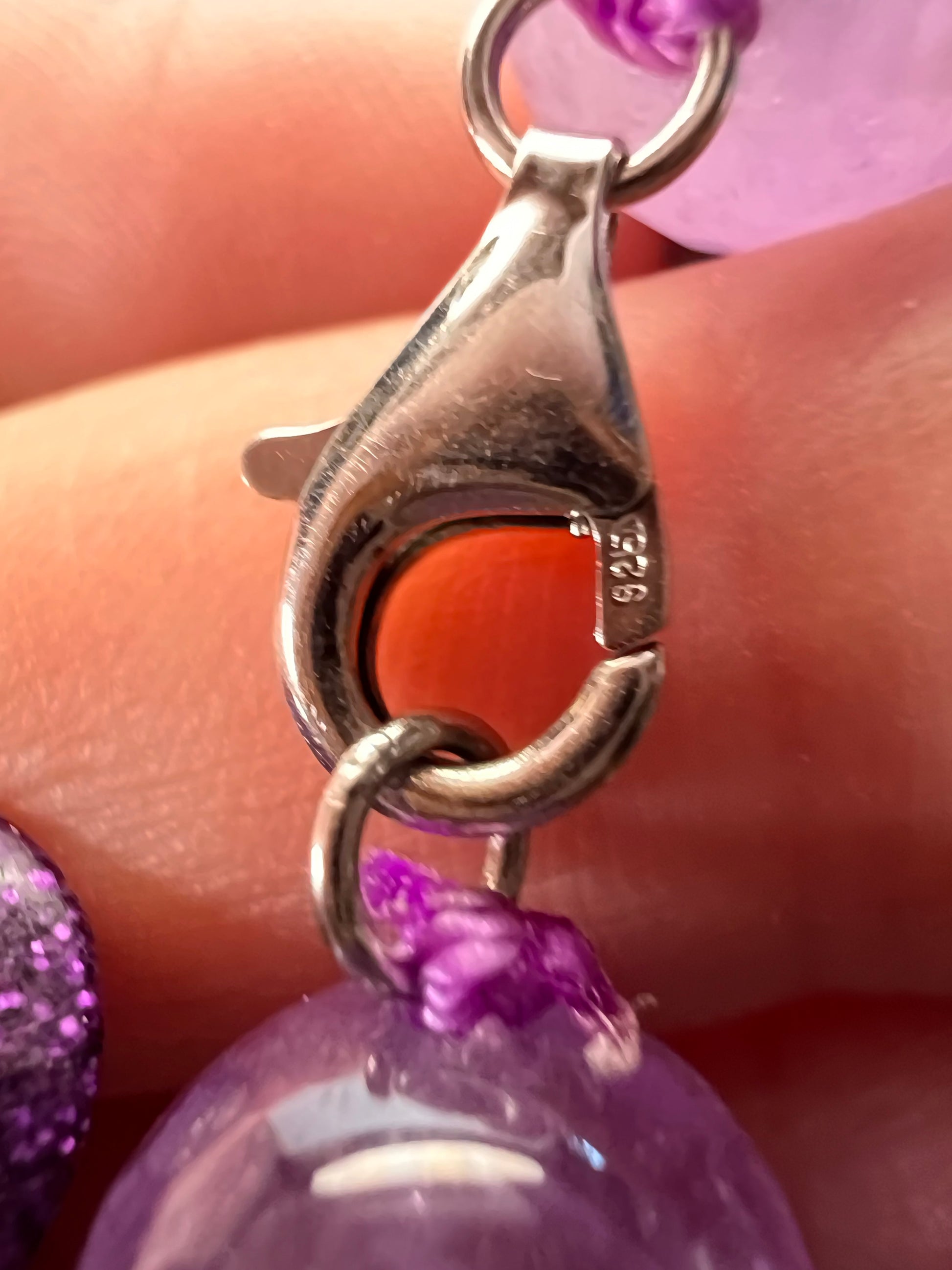Gorgeous genuine lavender or lilac amethyst , sometimes referred to as “Rose de France” amethyst. Faceted beads knotted in between. Measures about 20 inches in length with a sterling silver lobster clasp. Beads are about 12mm in diameter. Necklace has a bit of weight to it at over 88grams