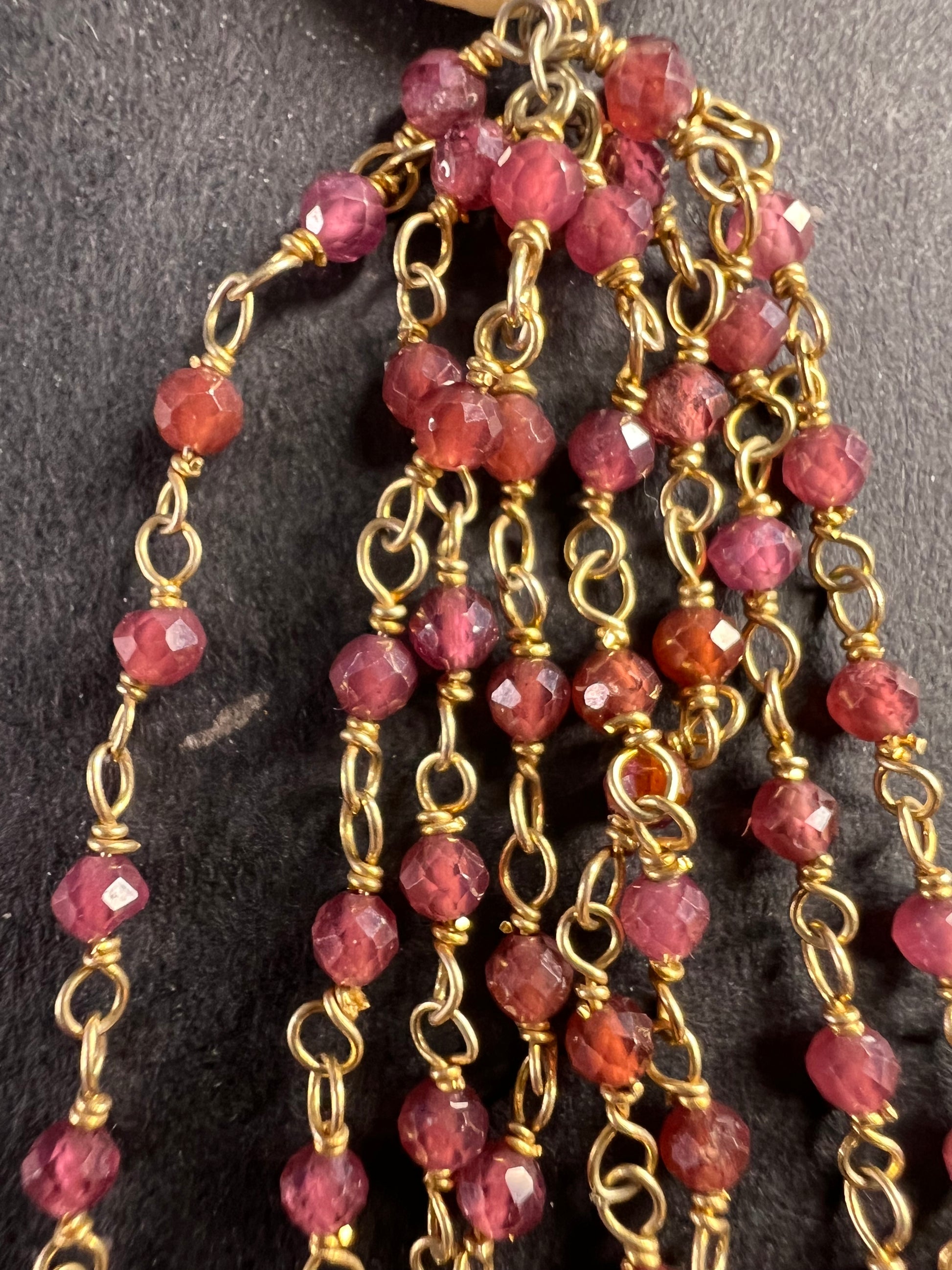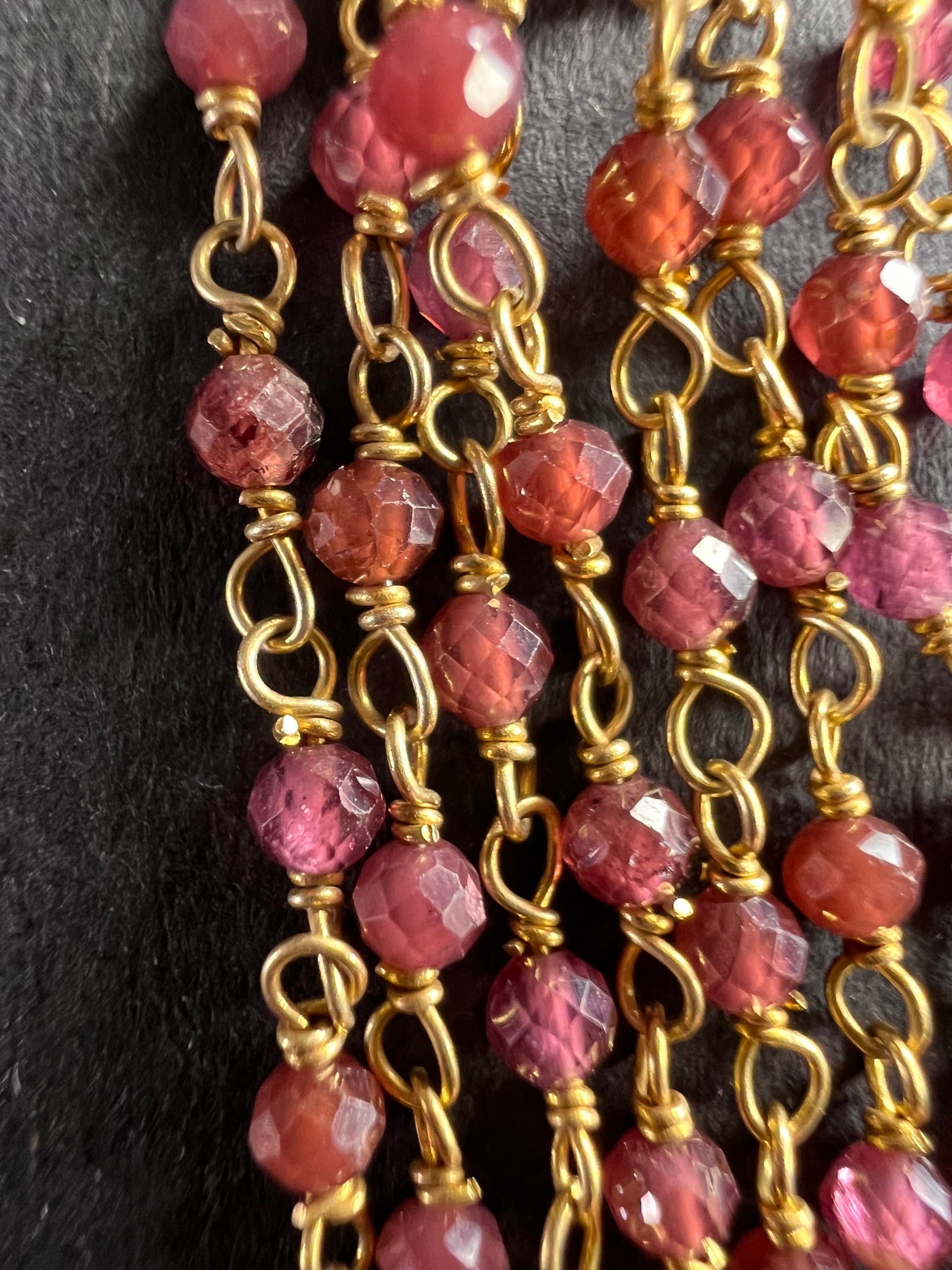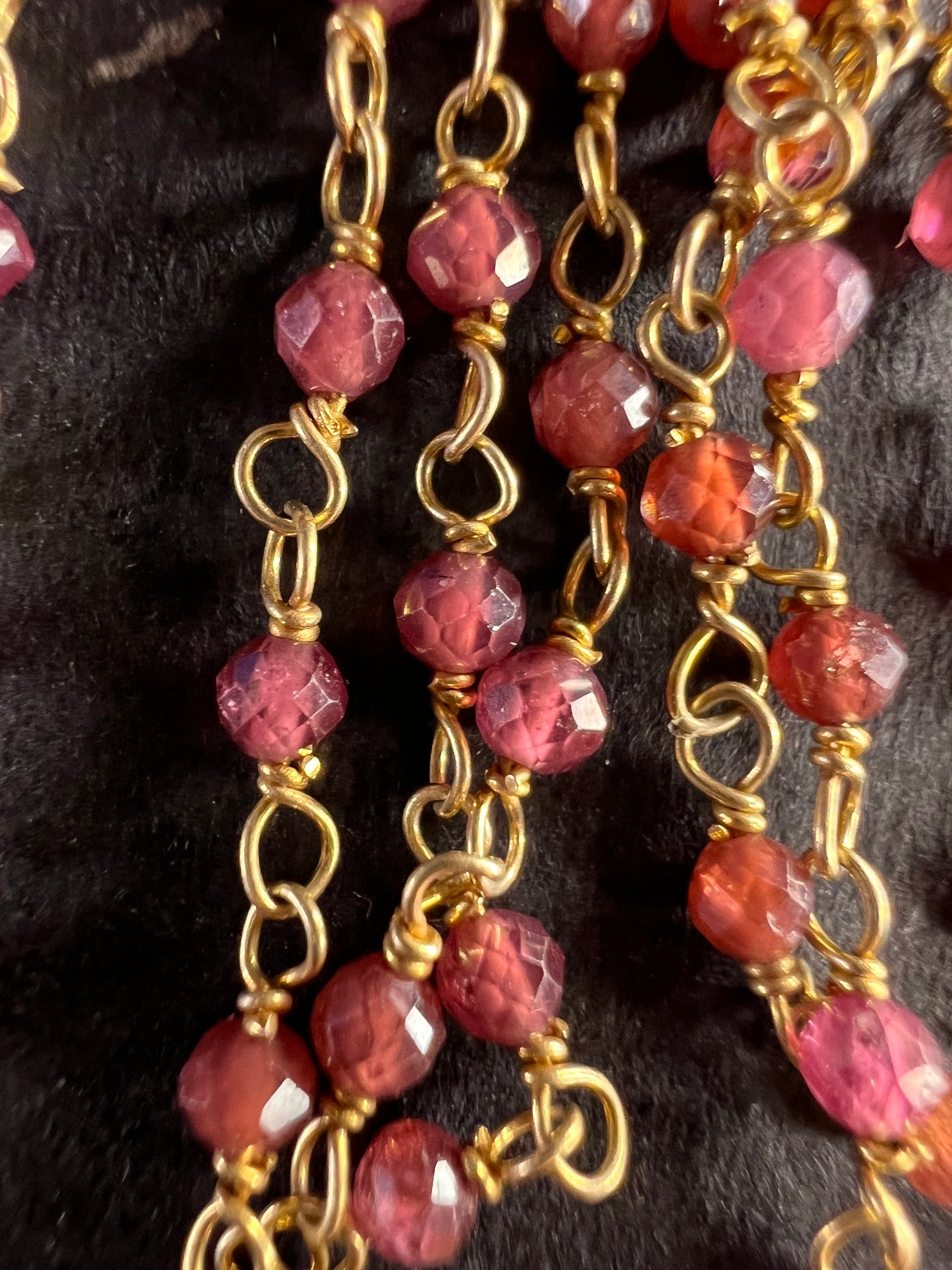 Please note that the pinkish orangish reddish stones look like garnet at first glance and test as garnet, however they also look like tourmaline and test as tourmaline too. I settled on garnet since it’s more common in beads like this in my experience, but I can’t 100% guarantee they are. Definitely an authentic stone though, either tourmaline or garnet.