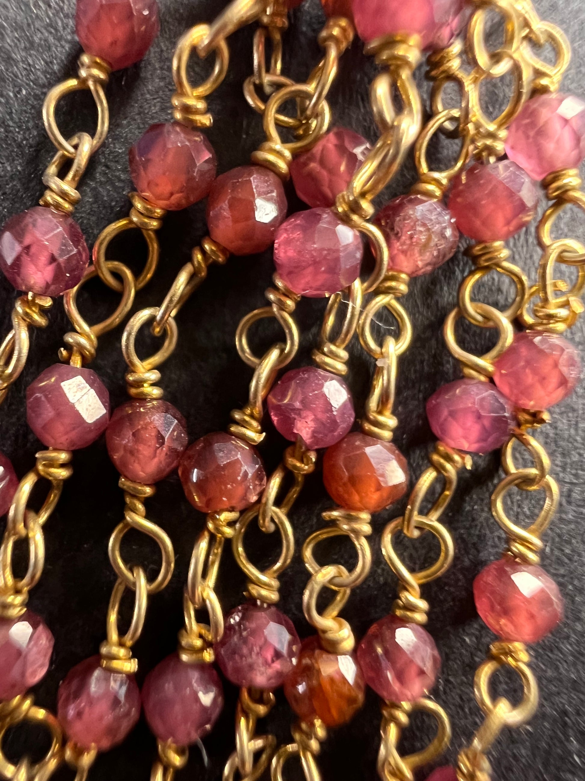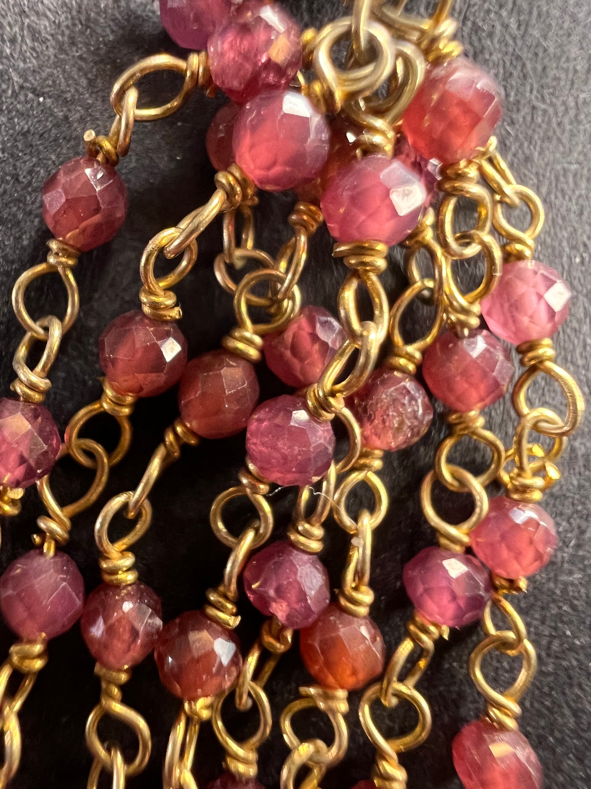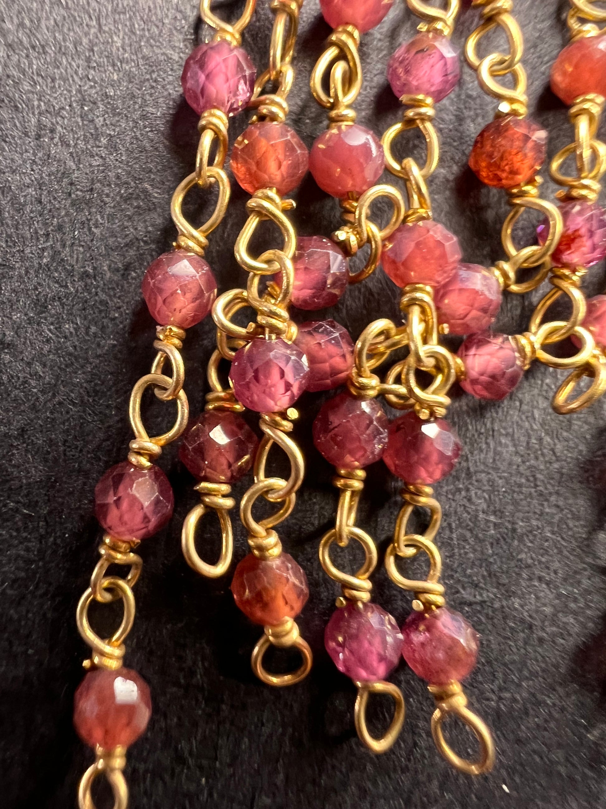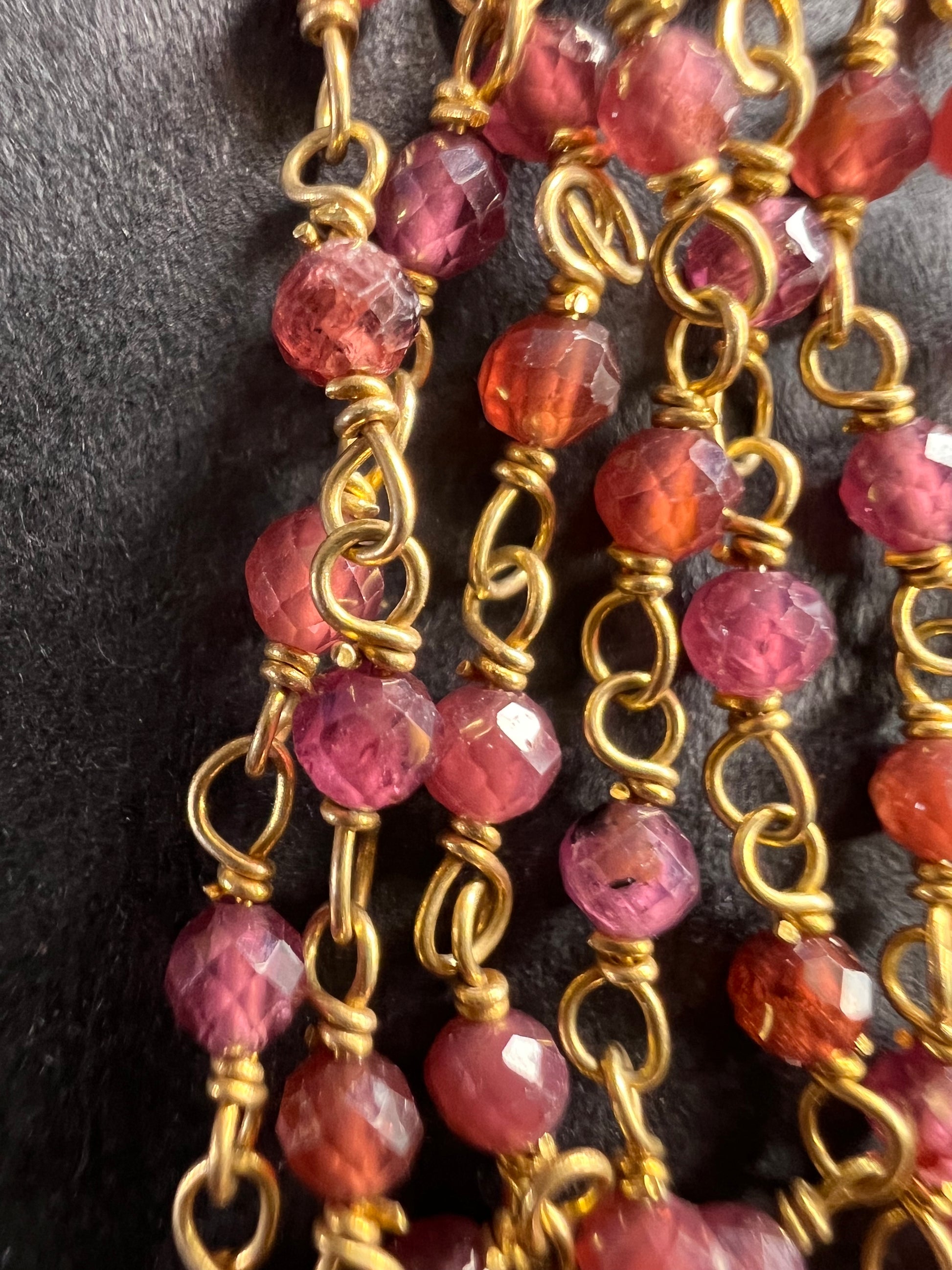 Please note that the pinkish orangish reddish stones look like garnet at first glance and test as garnet, however they also look like tourmaline and test as tourmaline too. I settled on garnet since it’s more common in beads like this in my experience, but I can’t 100% guarantee they are. Definitely an authentic stone though, either tourmaline or garnet.