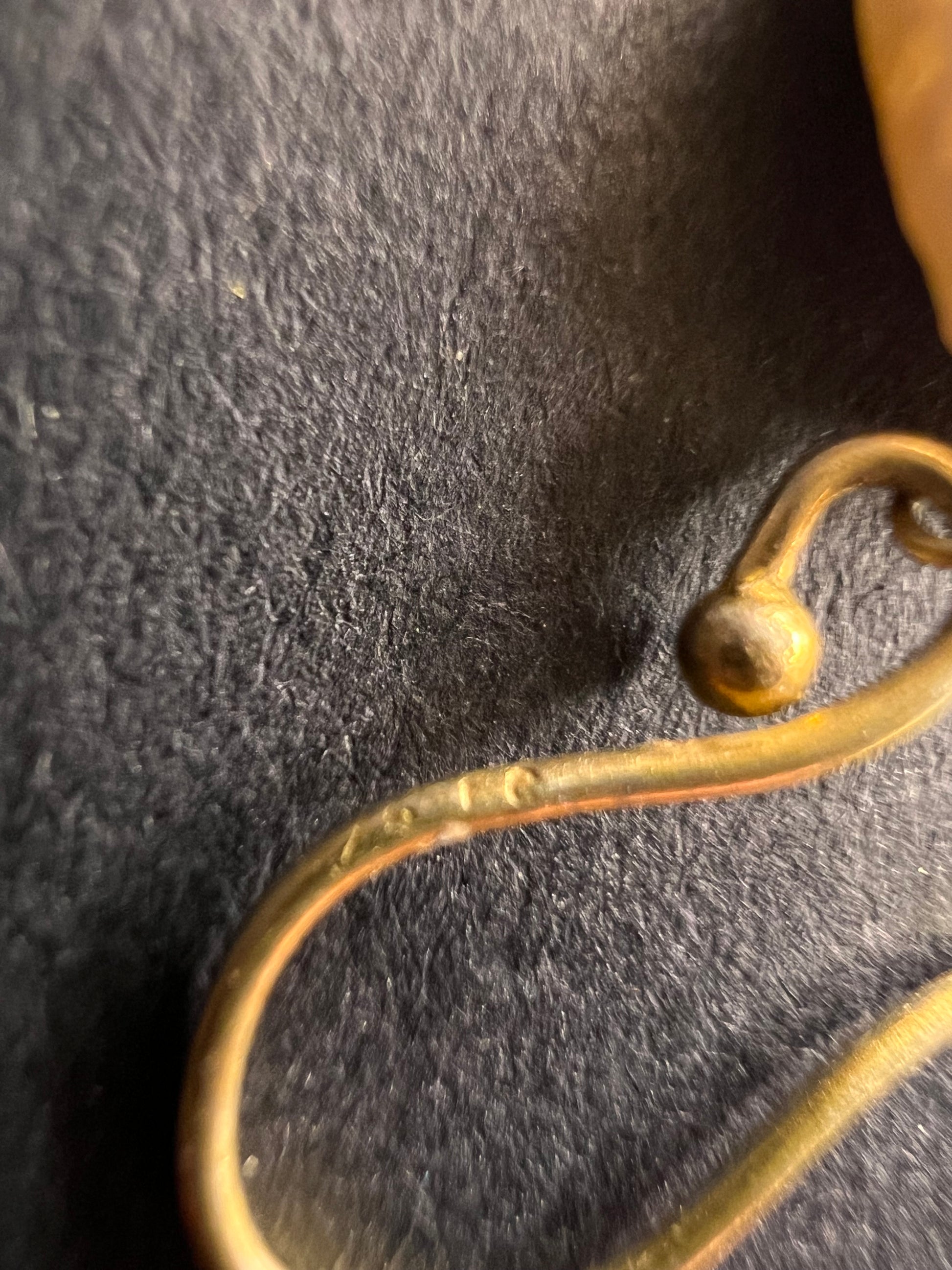 These earrings are from an estate purchase and were in super excellent condition showing no signs of use until I goofed while acid testing the metal and took the gold plating off the top portion of one of the ear wires. You can see in the photos what it looks like. It shouldn’t be noticeable while wearing the earrings but nonetheless I’ve marked them at a lower price to compensate.