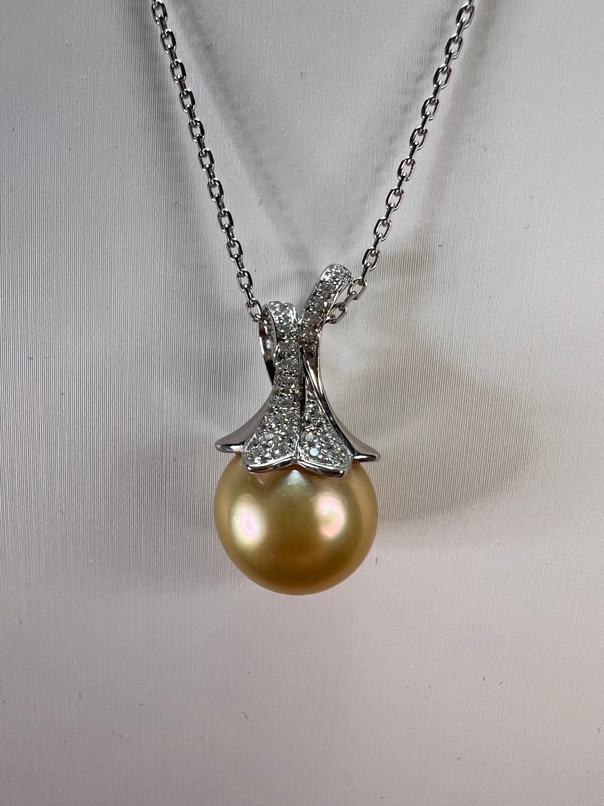 NEW Golden south seas pearl pendant in rhodium over sterling silver with chain