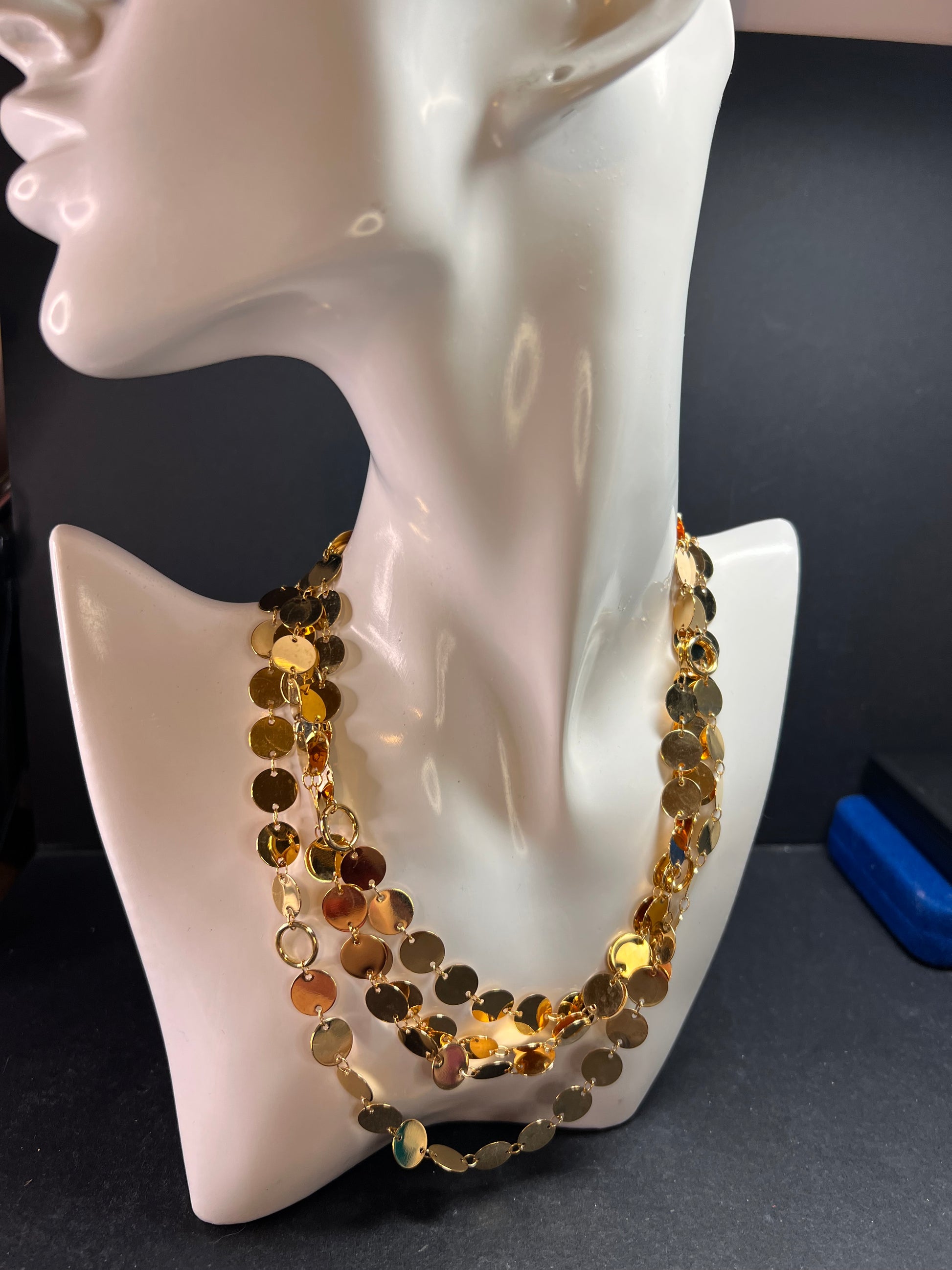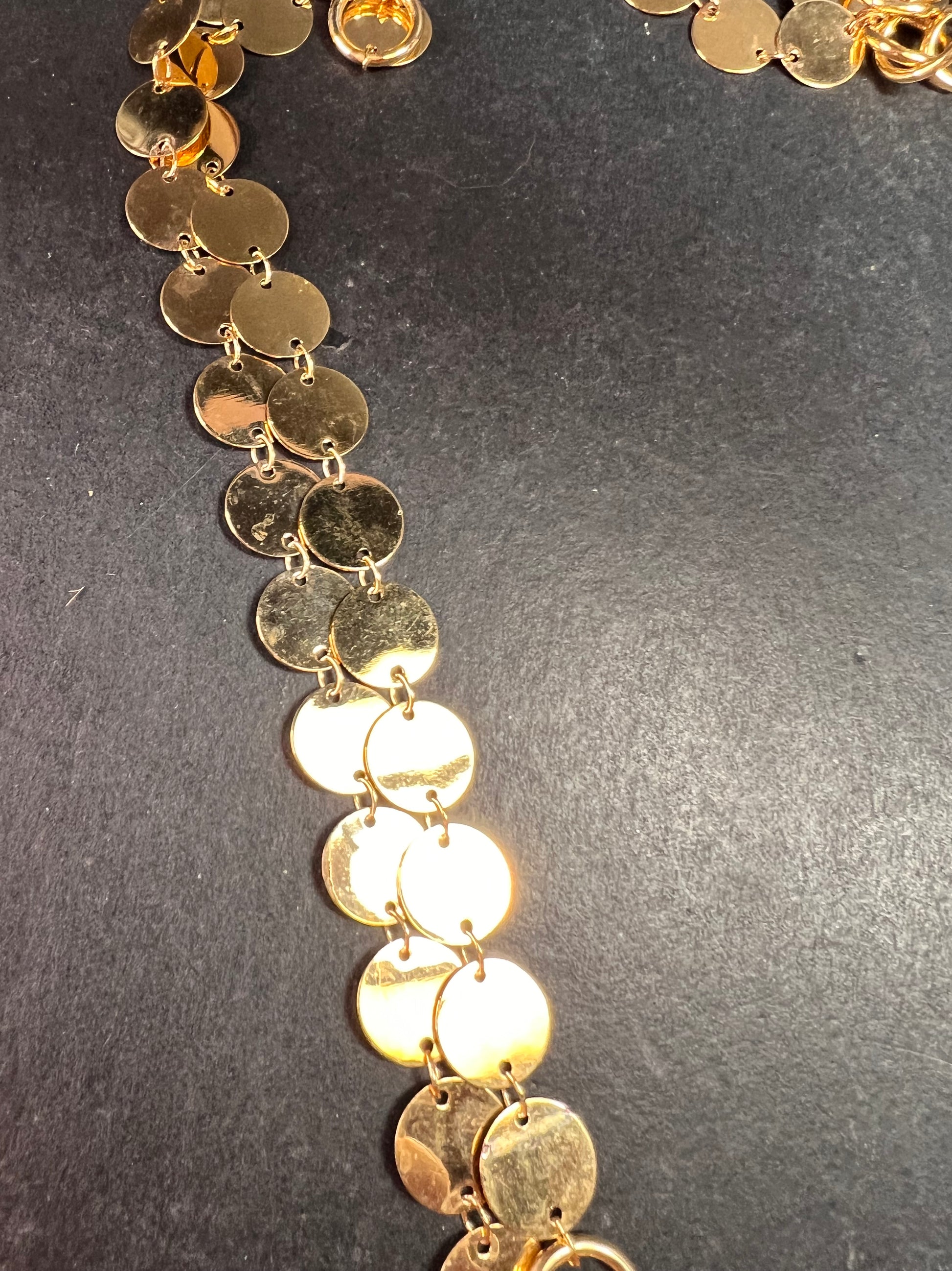 Italian 18K Gold Plated Disc Necklace 32 Inch Adjustable Layered Chain