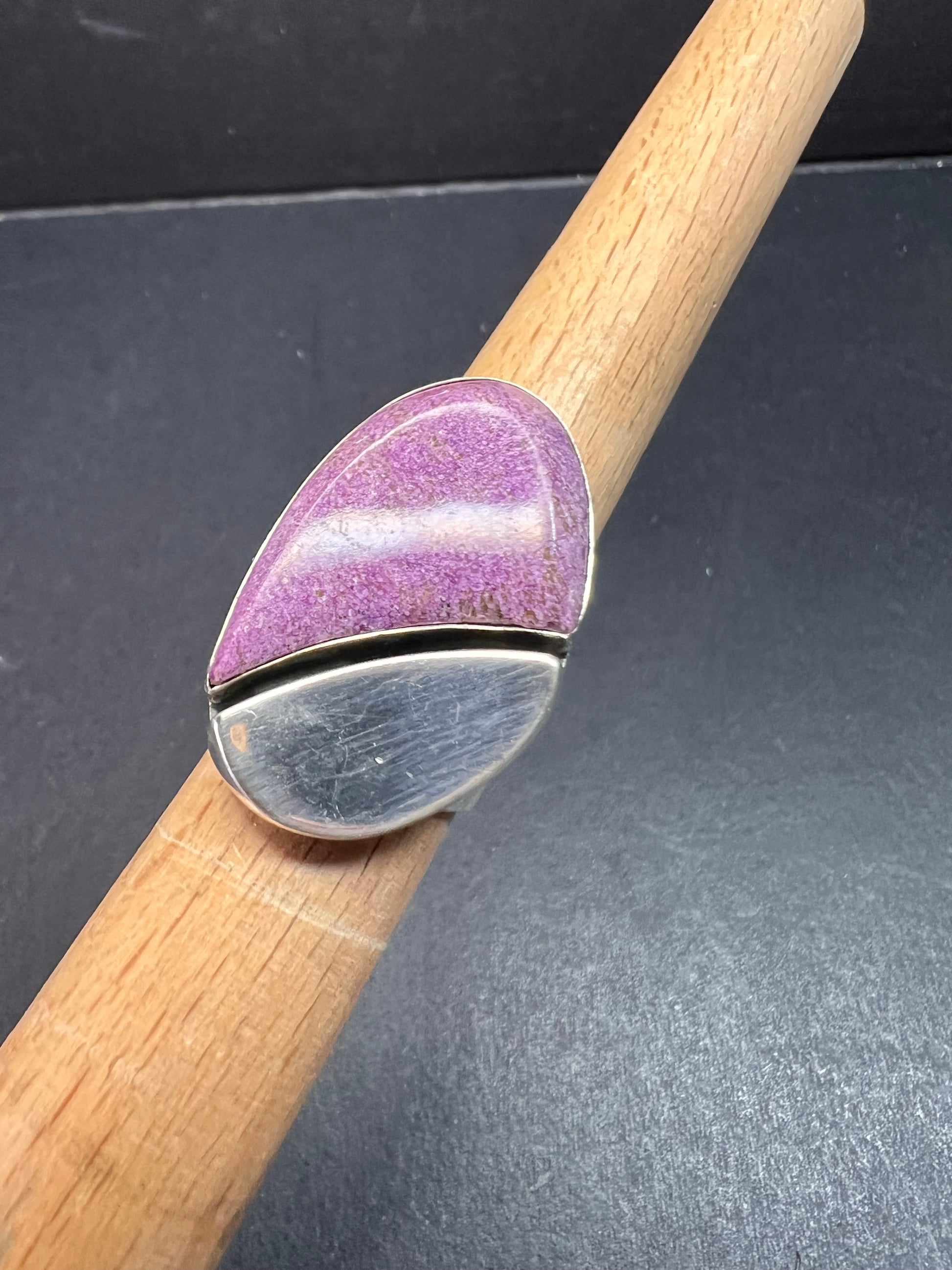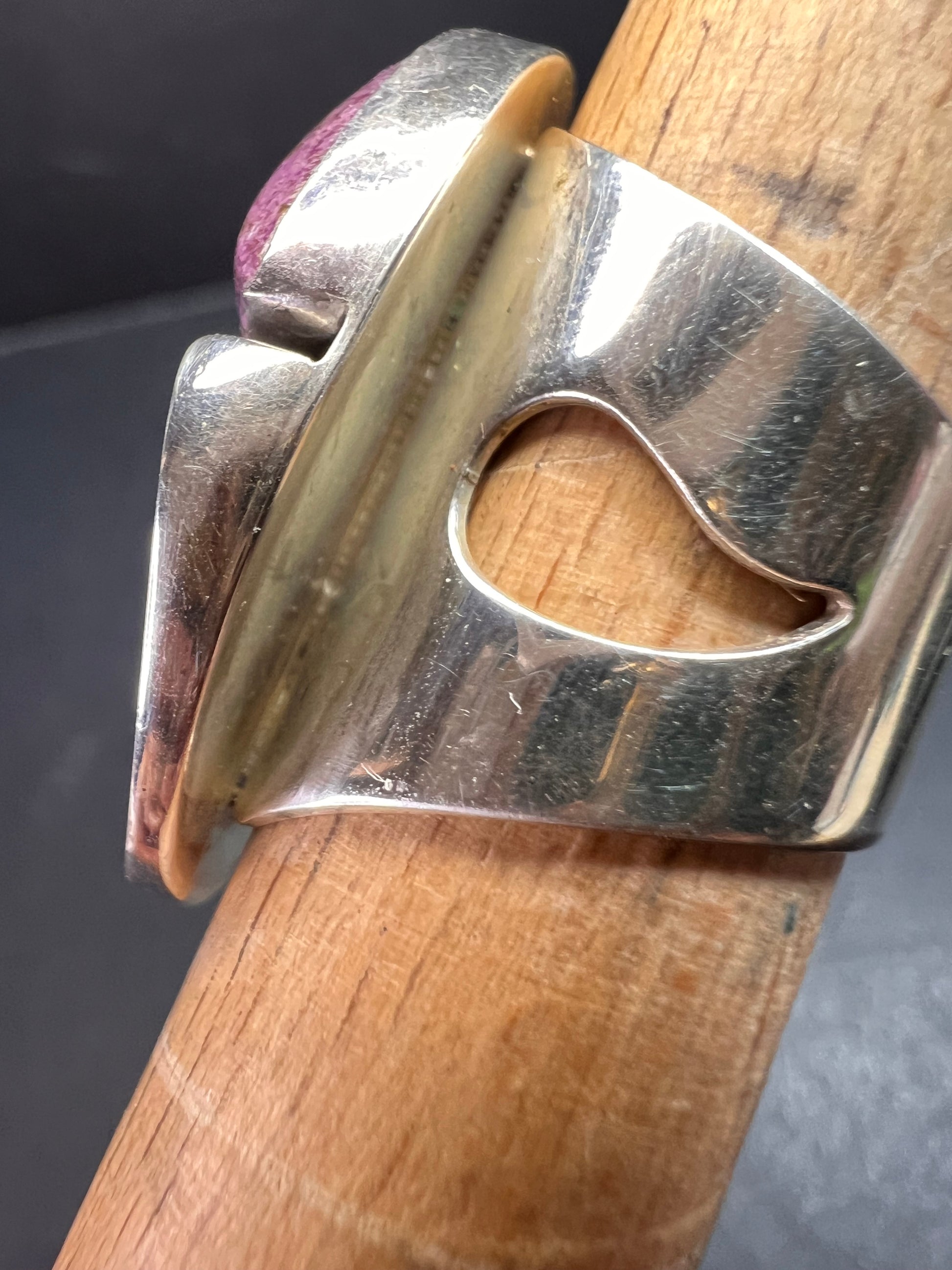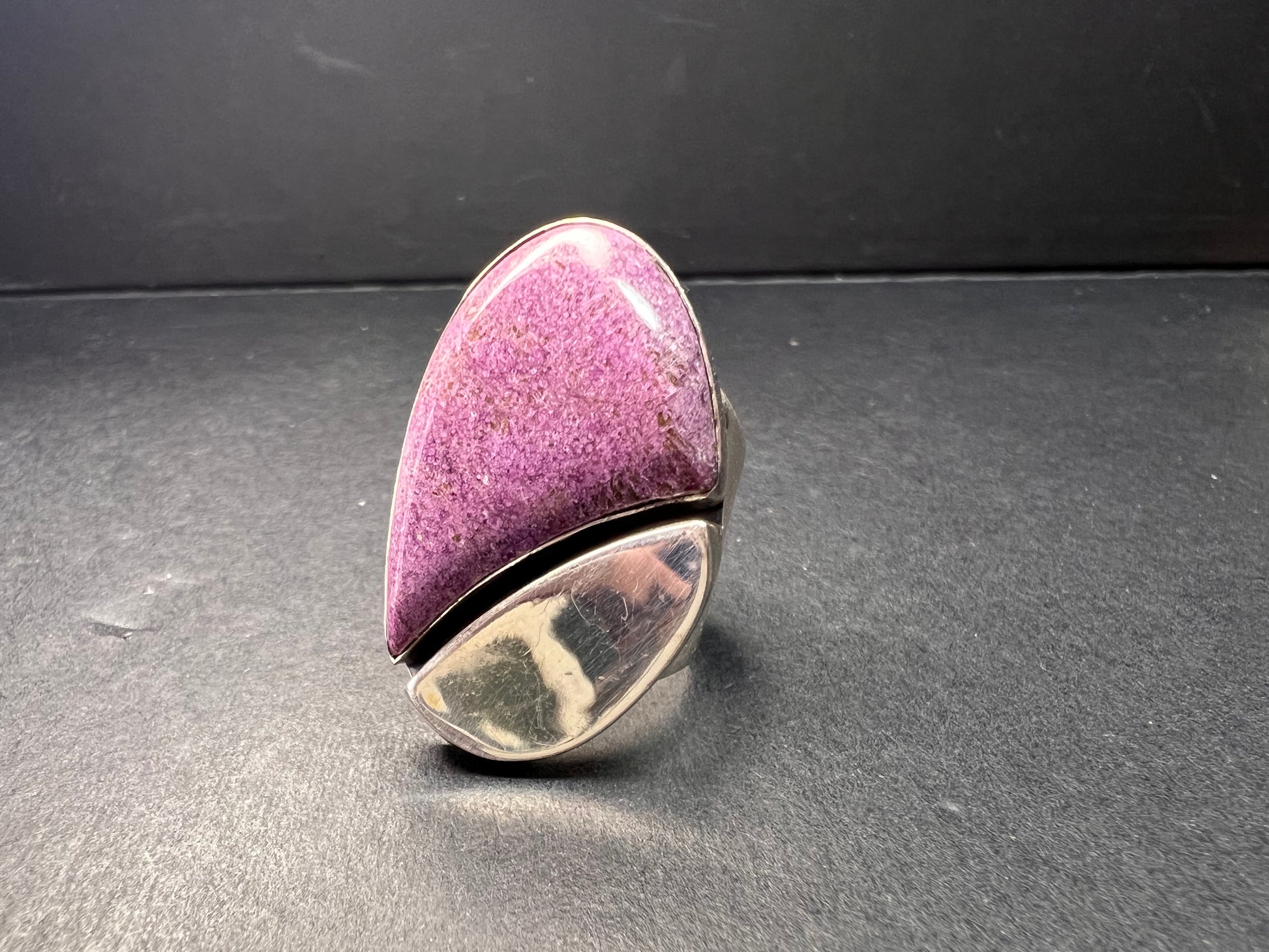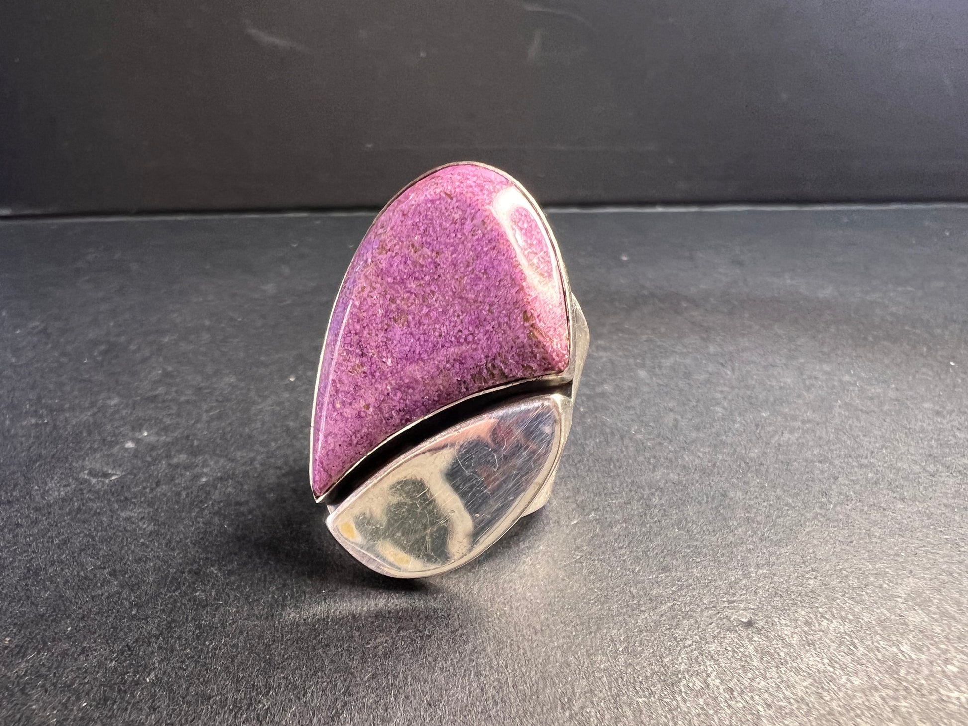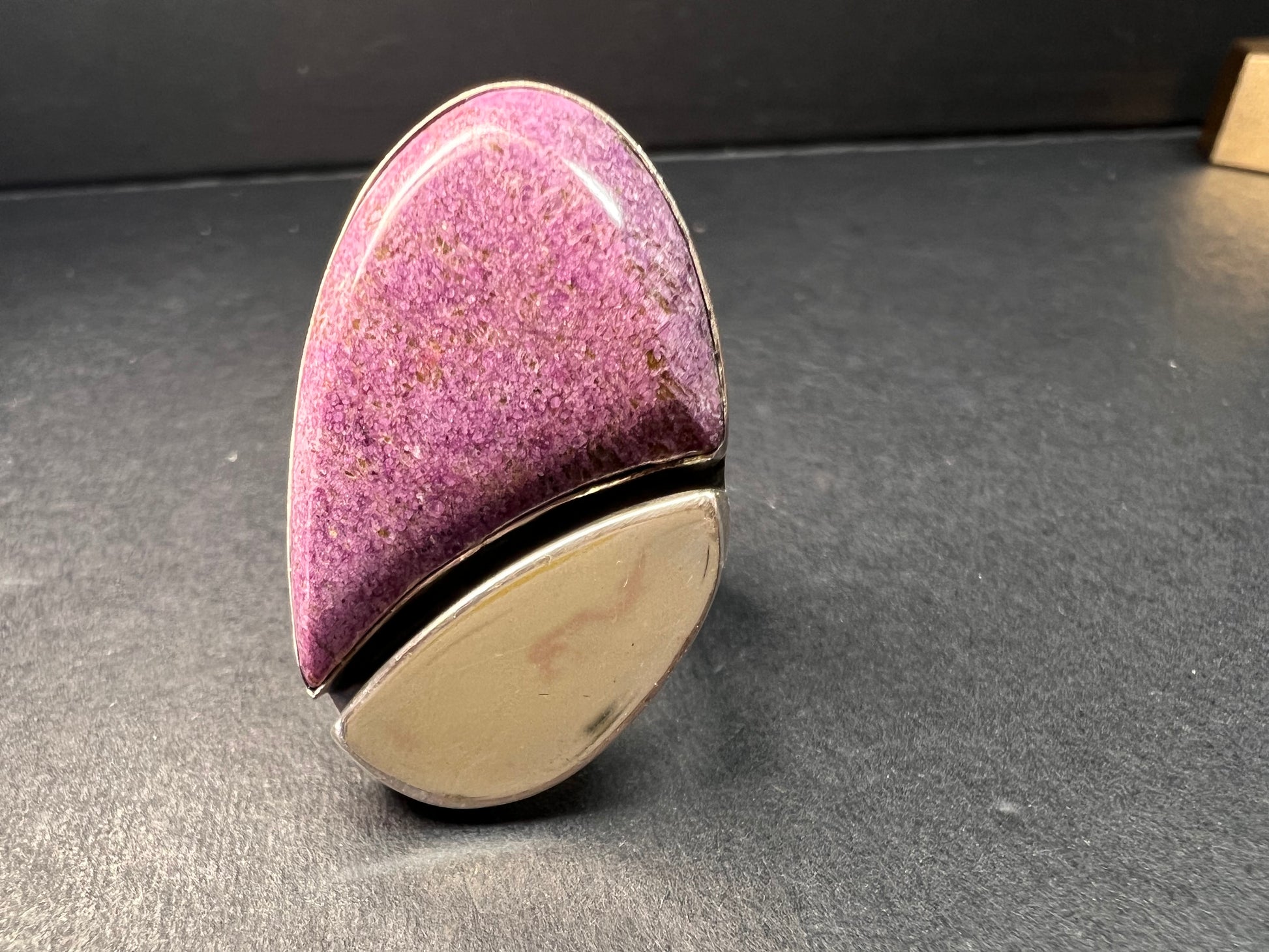 Genuine people stichtite stone set in authentic 925 sterling silver. Measures a size 6. Signed DTR China 925. Desert Rose Trading for Jay King. Jay’s jewelry is considered highly collectible and quality made. Total weight is 13.12 grams.