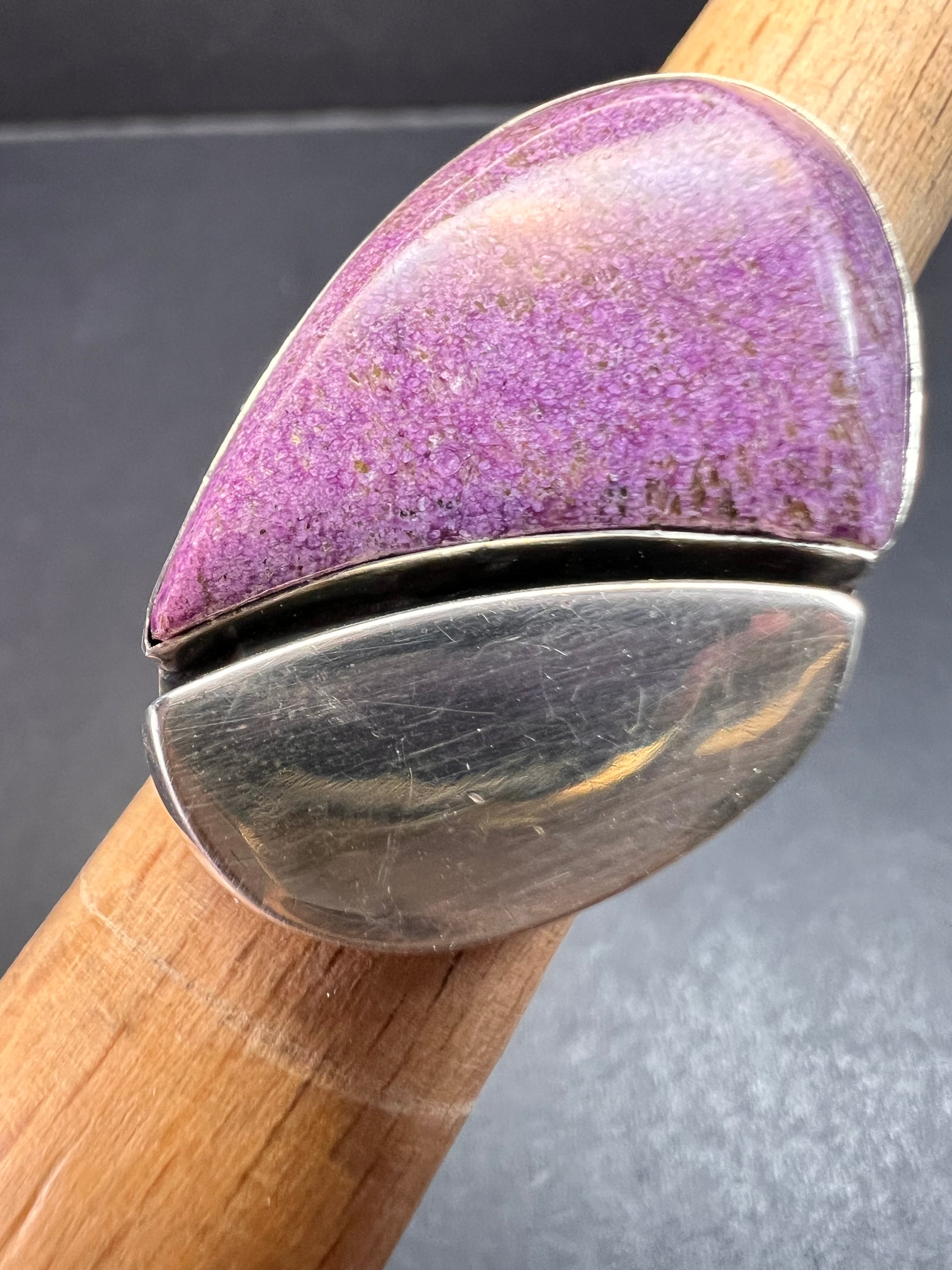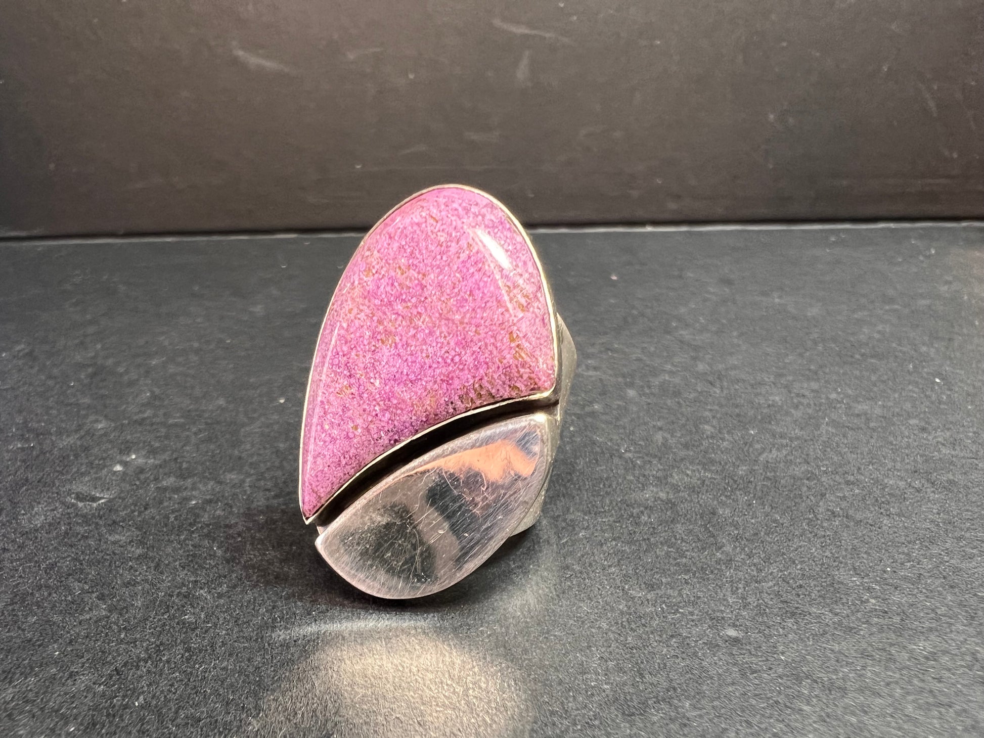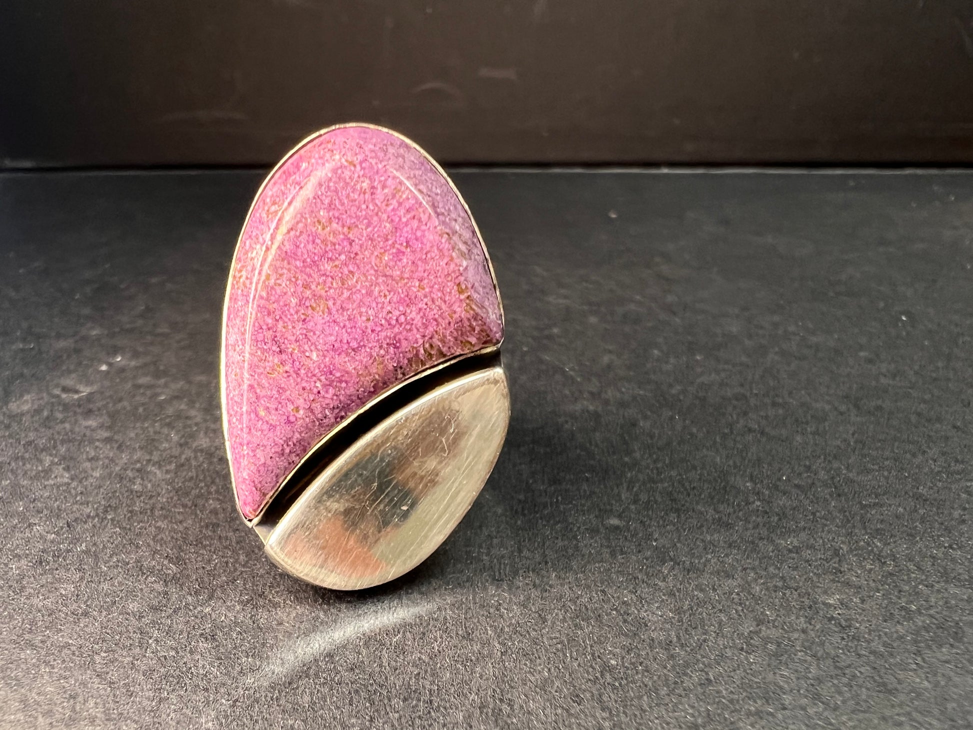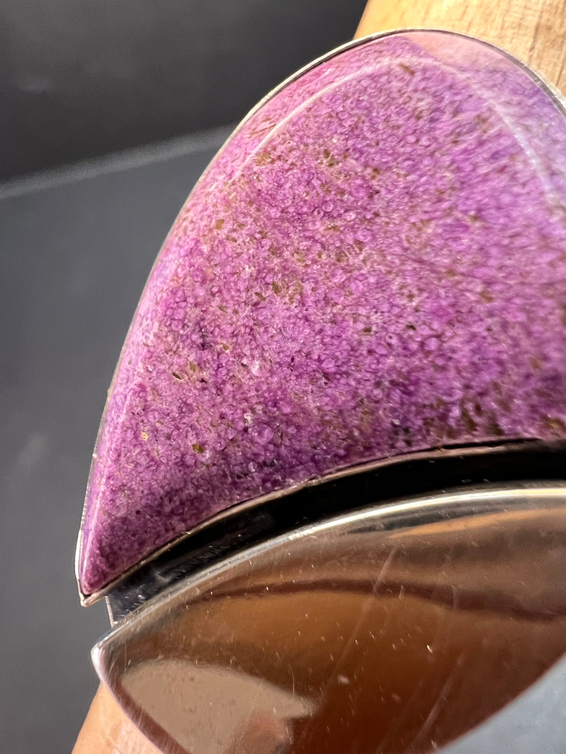 Genuine people stichtite stone set in authentic 925 sterling silver. Measures a size 6. Signed DTR China 925. Desert Rose Trading for Jay King. Jay’s jewelry is considered highly collectible and quality made. Total weight is 13.12 grams.