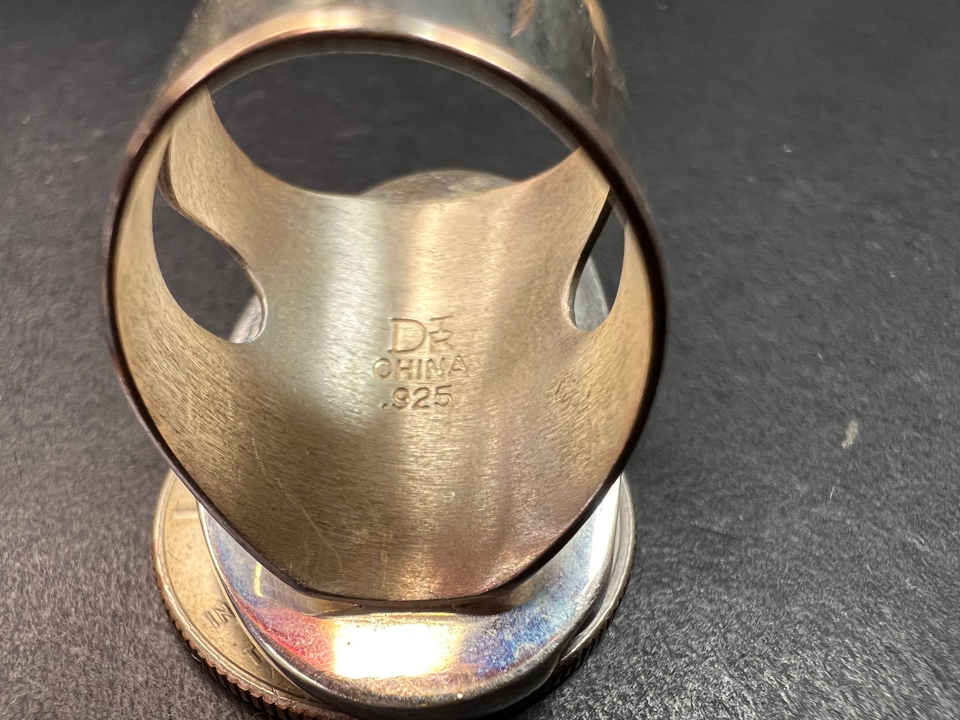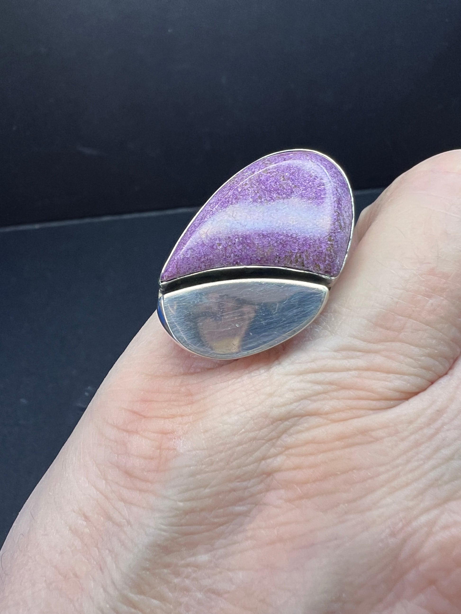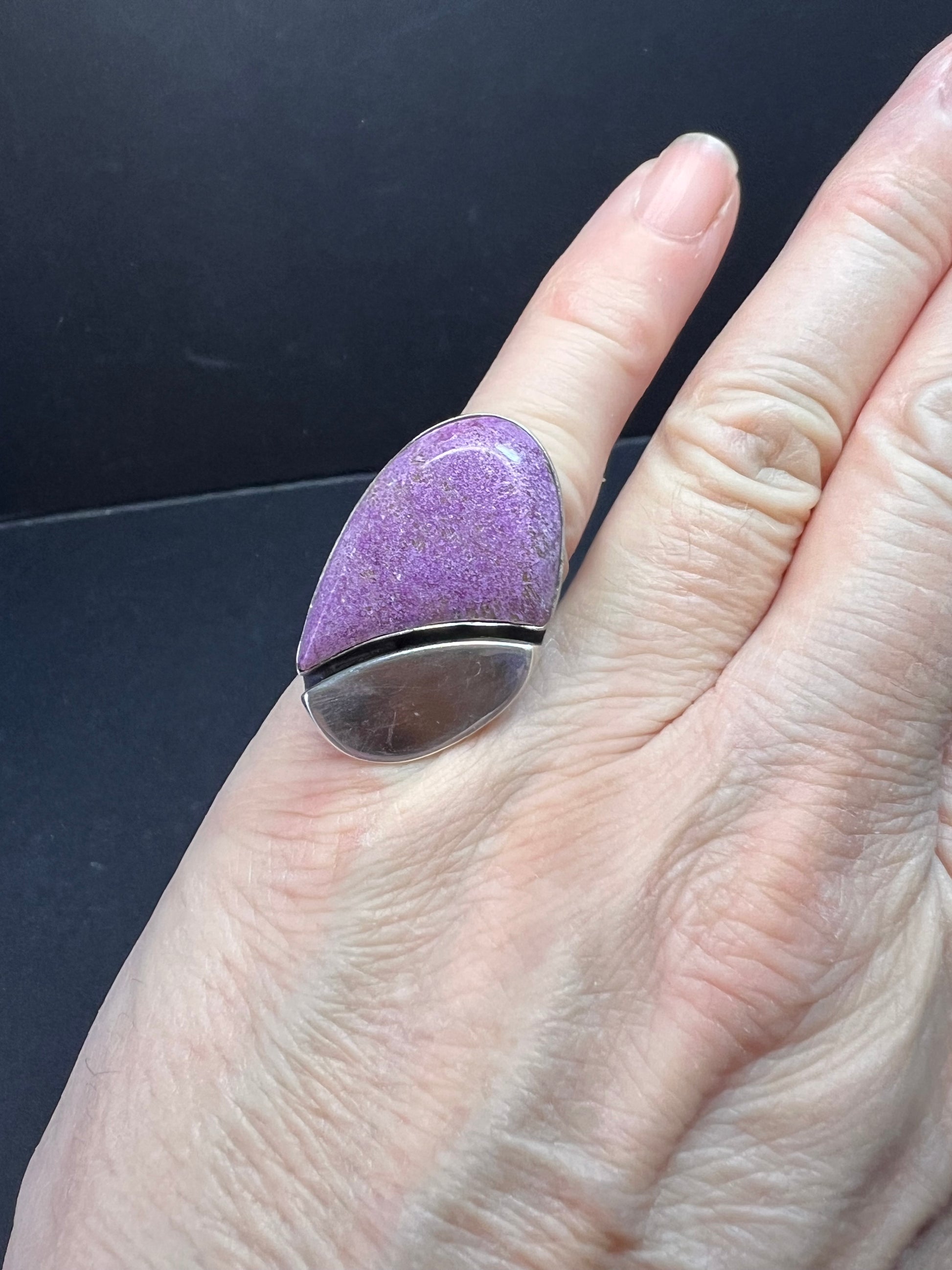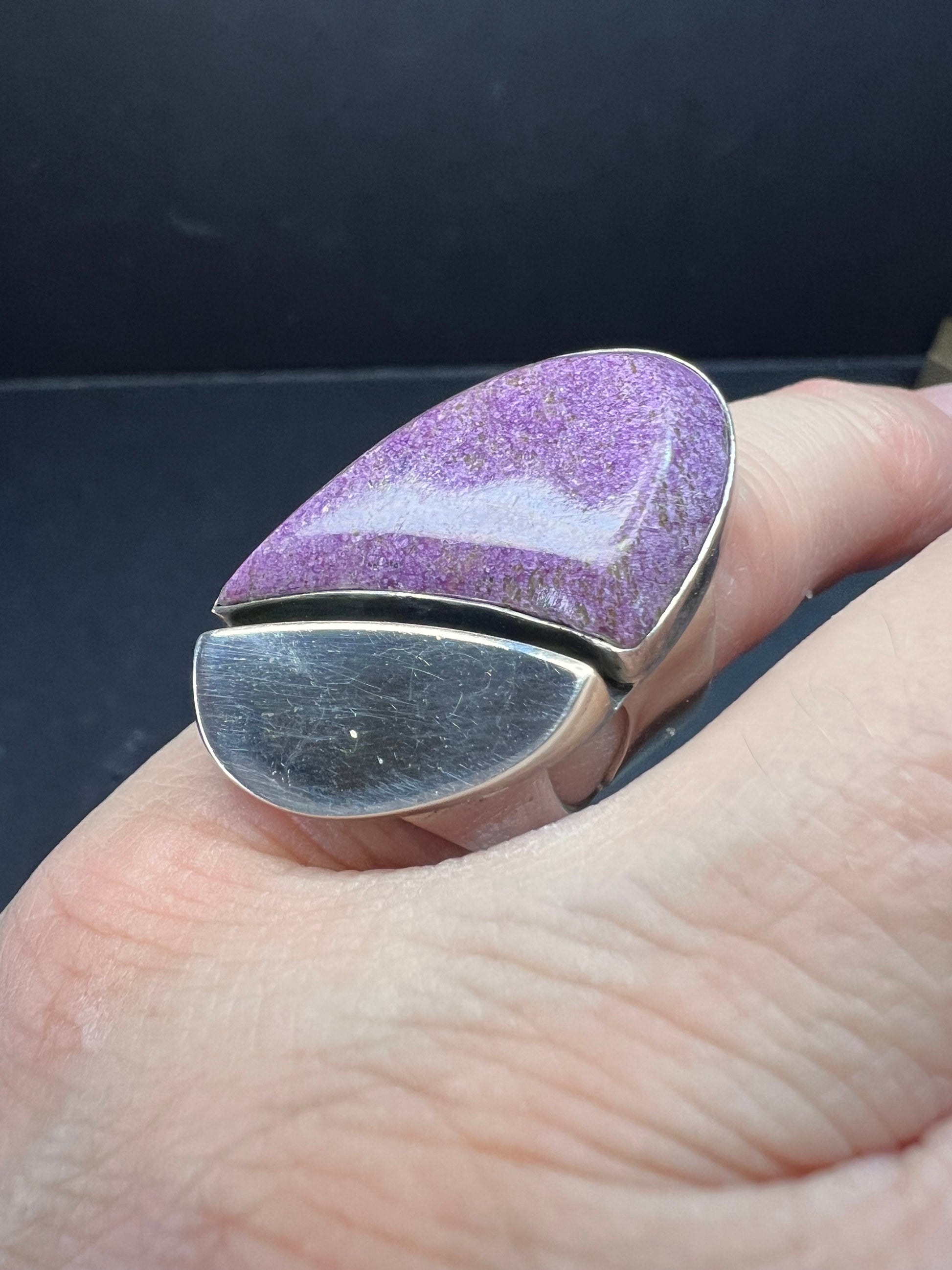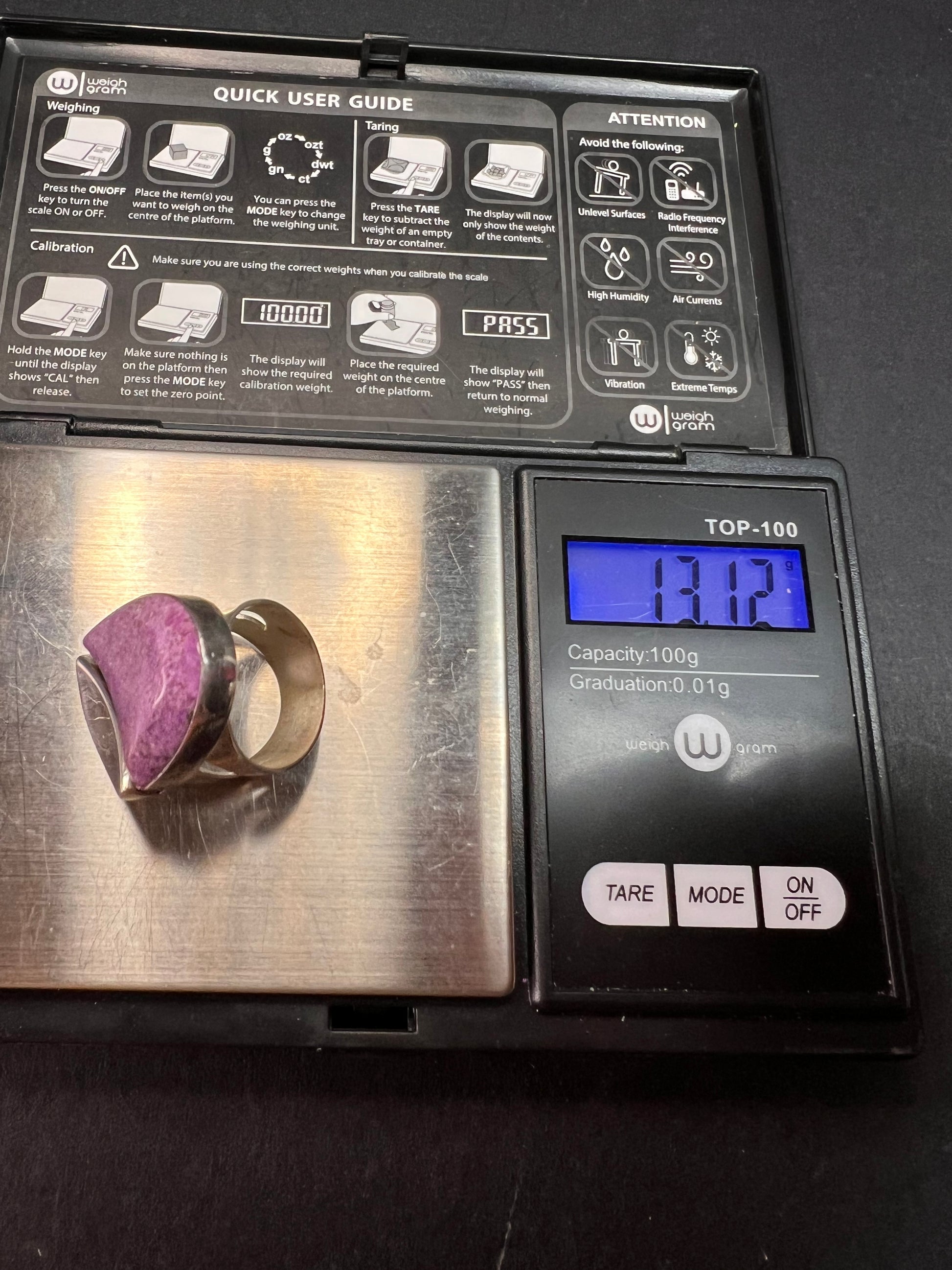 Genuine people stichtite stone set in authentic 925 sterling silver. Measures a size 6. Signed DTR China 925. Desert Rose Trading for Jay King. Jay’s jewelry is considered highly collectible and quality made. Total weight is 13.12 grams.