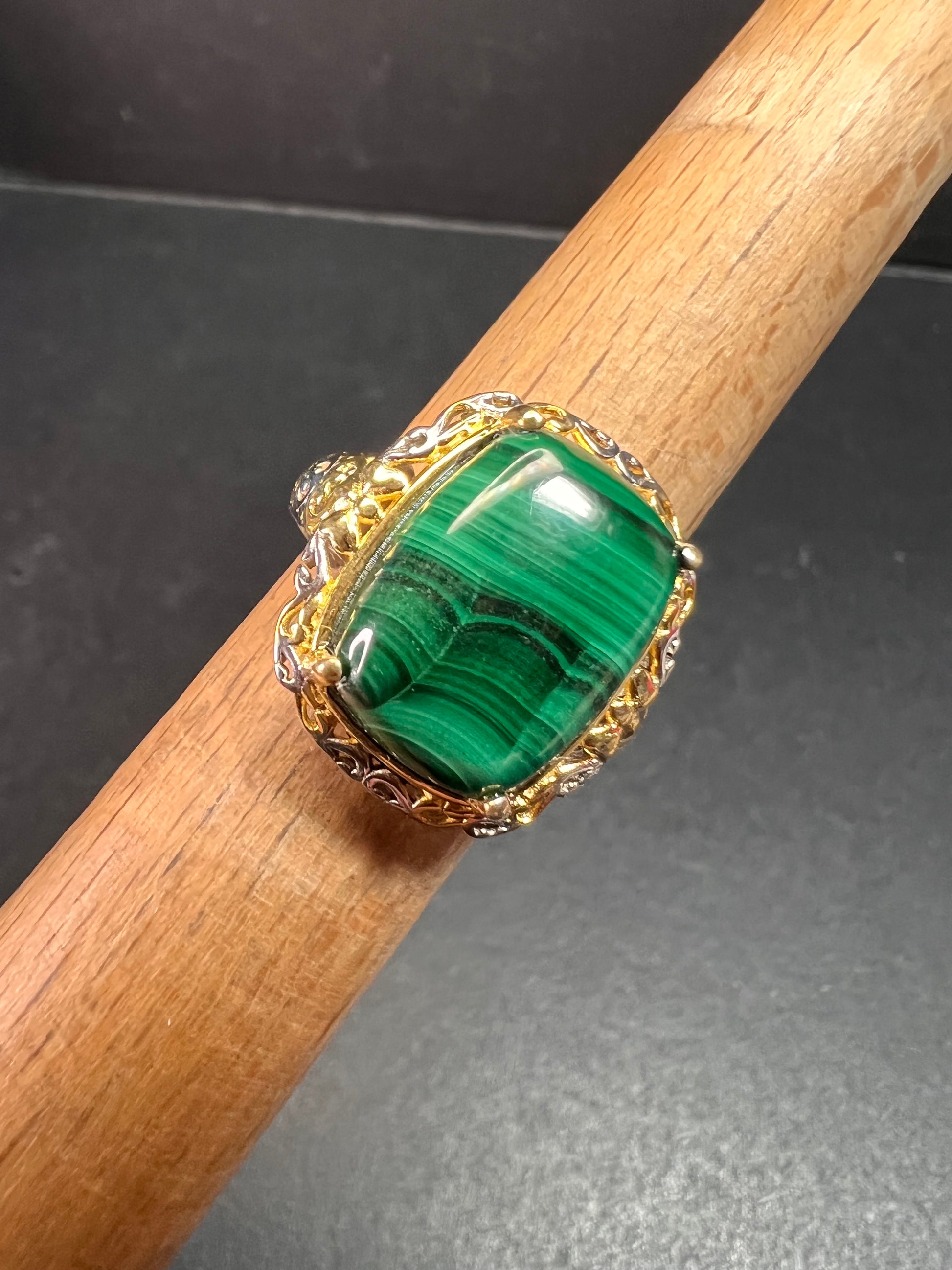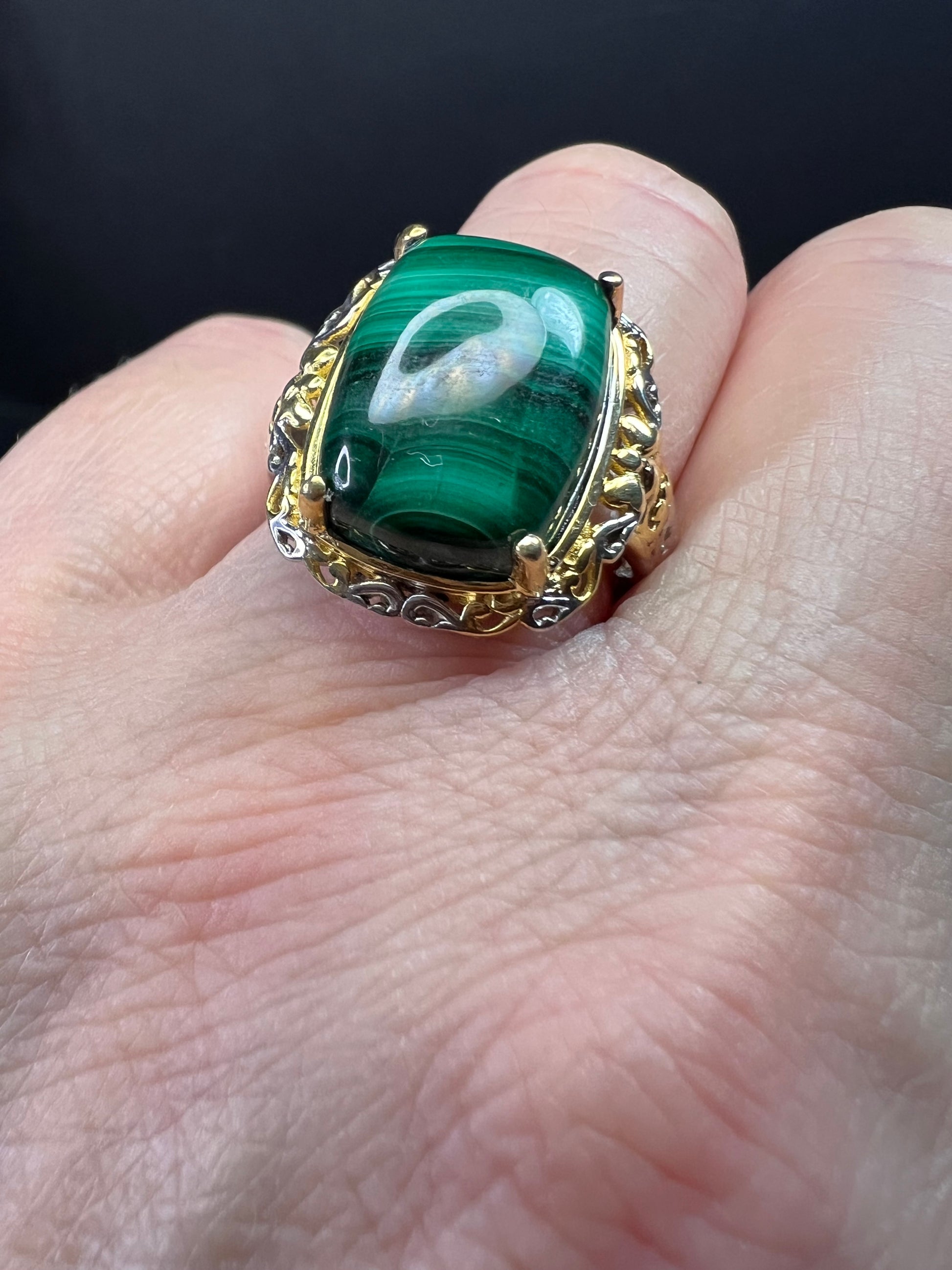 Karis Platinum & 18K Gold Plated Malachite Statement Ring Size 7