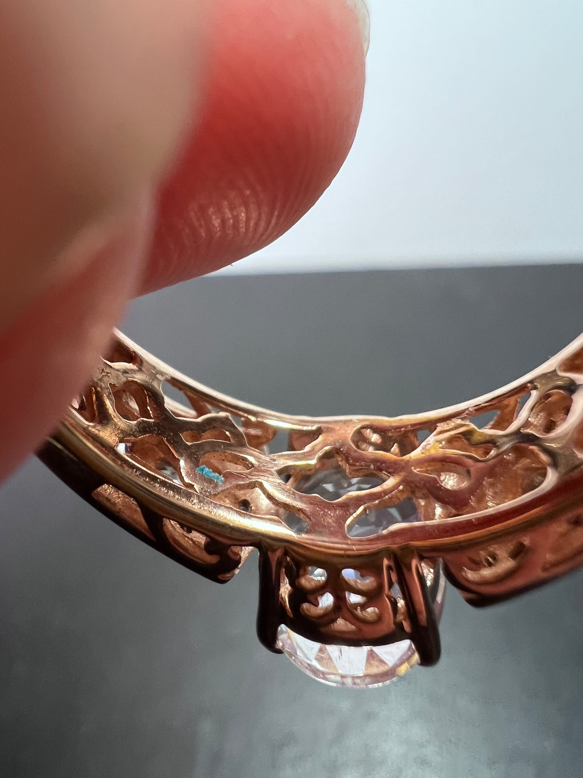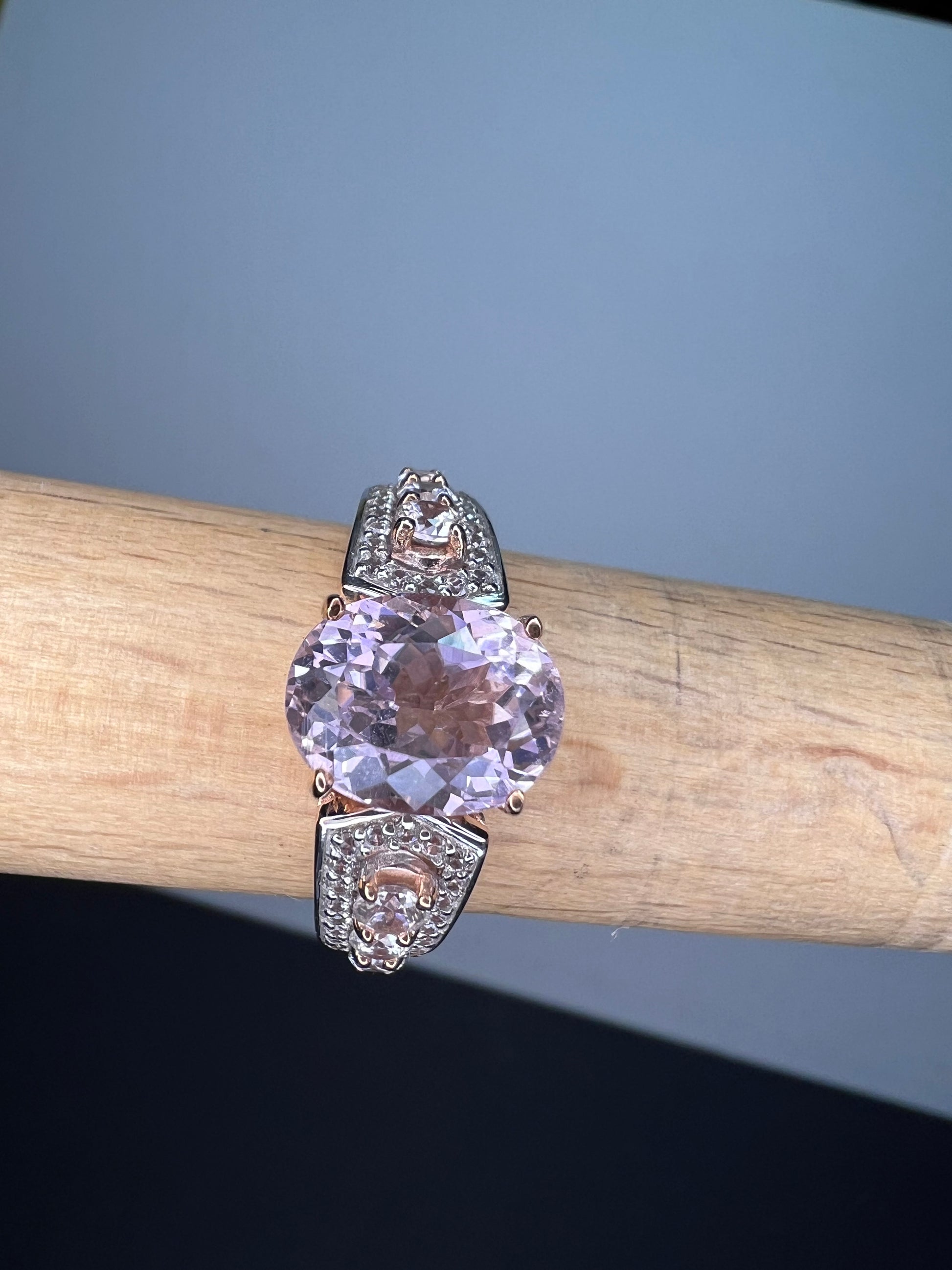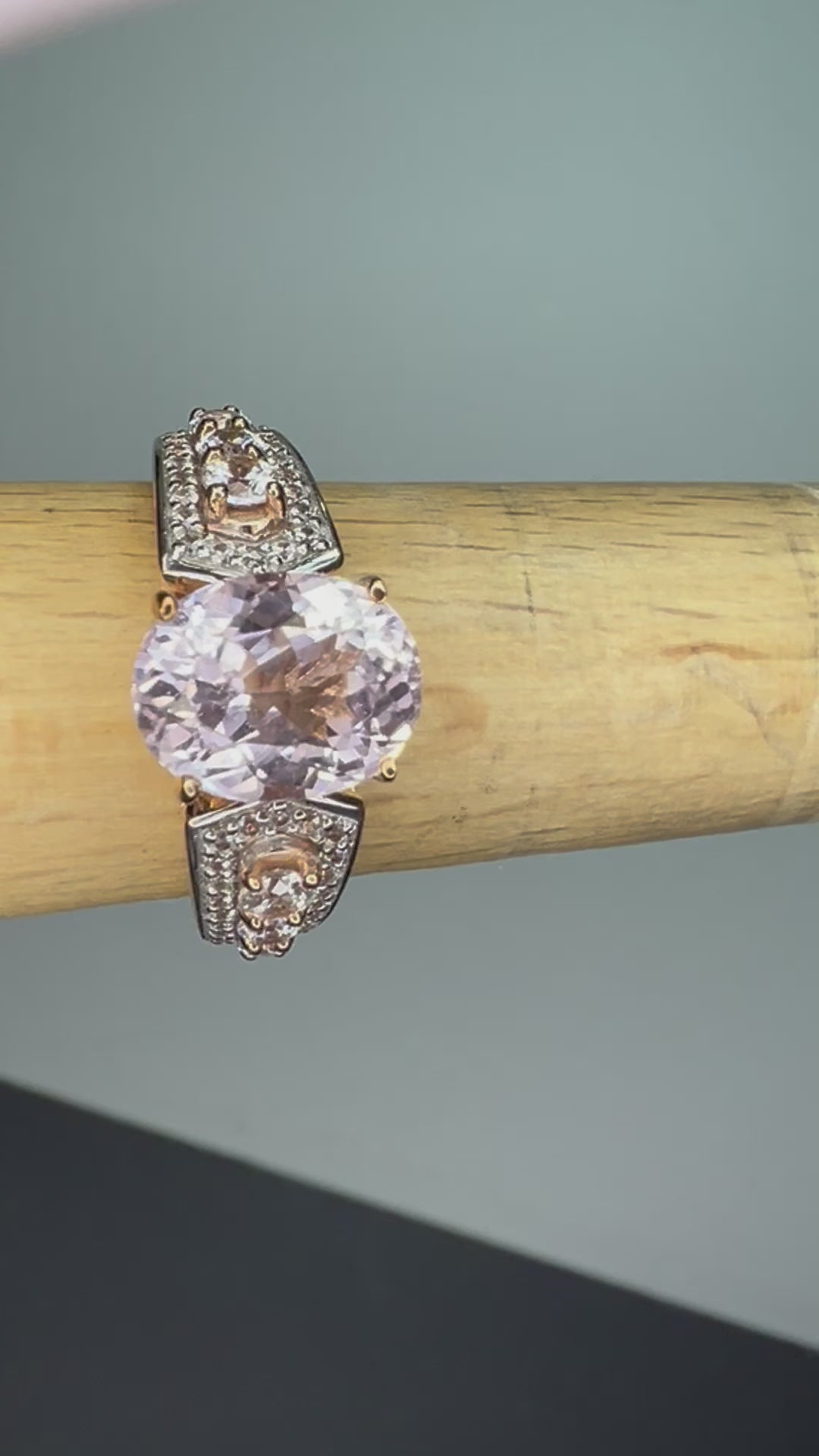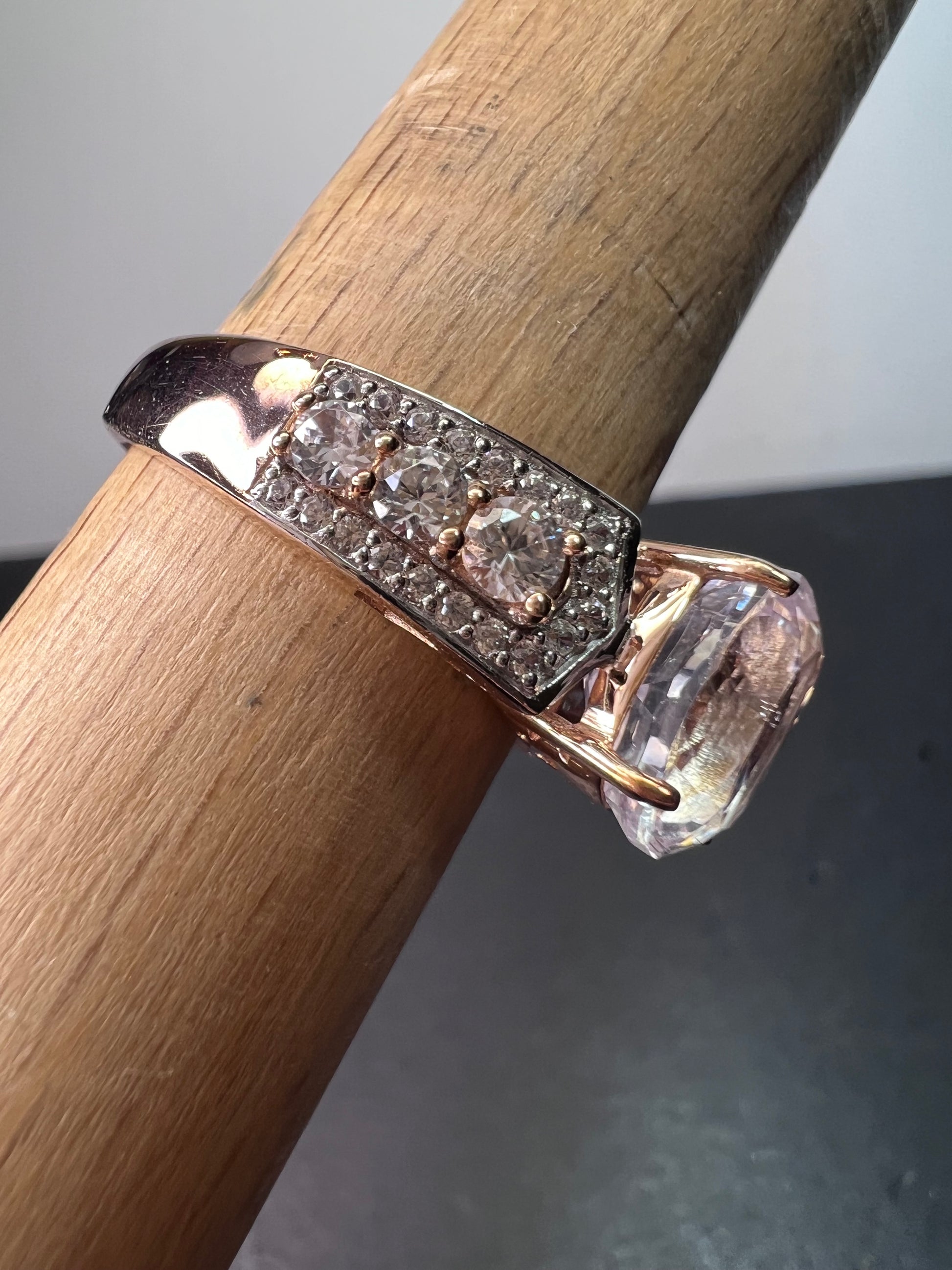 Kunzite and white topaz 18k rose gold over sterling silver ring size 9