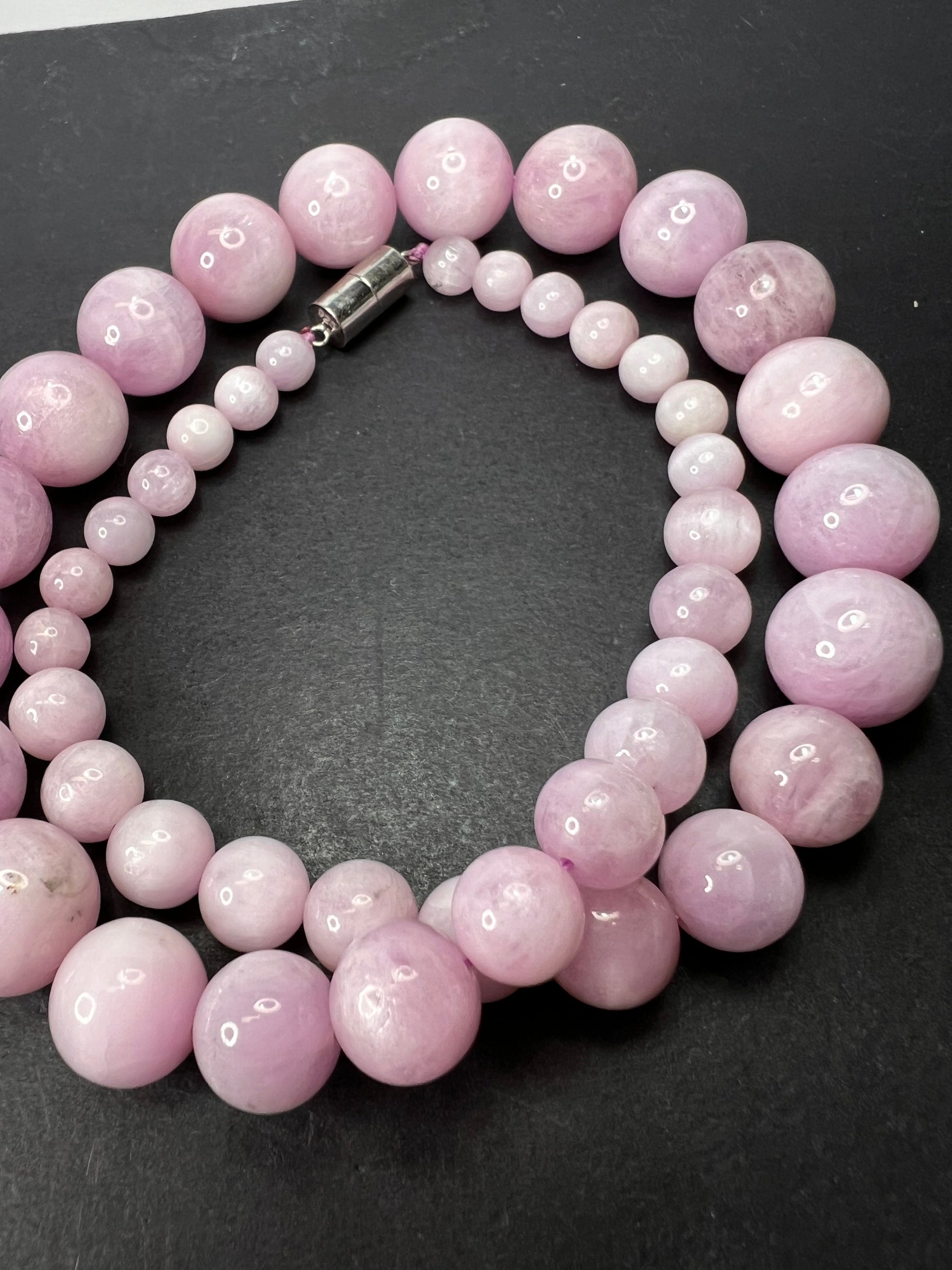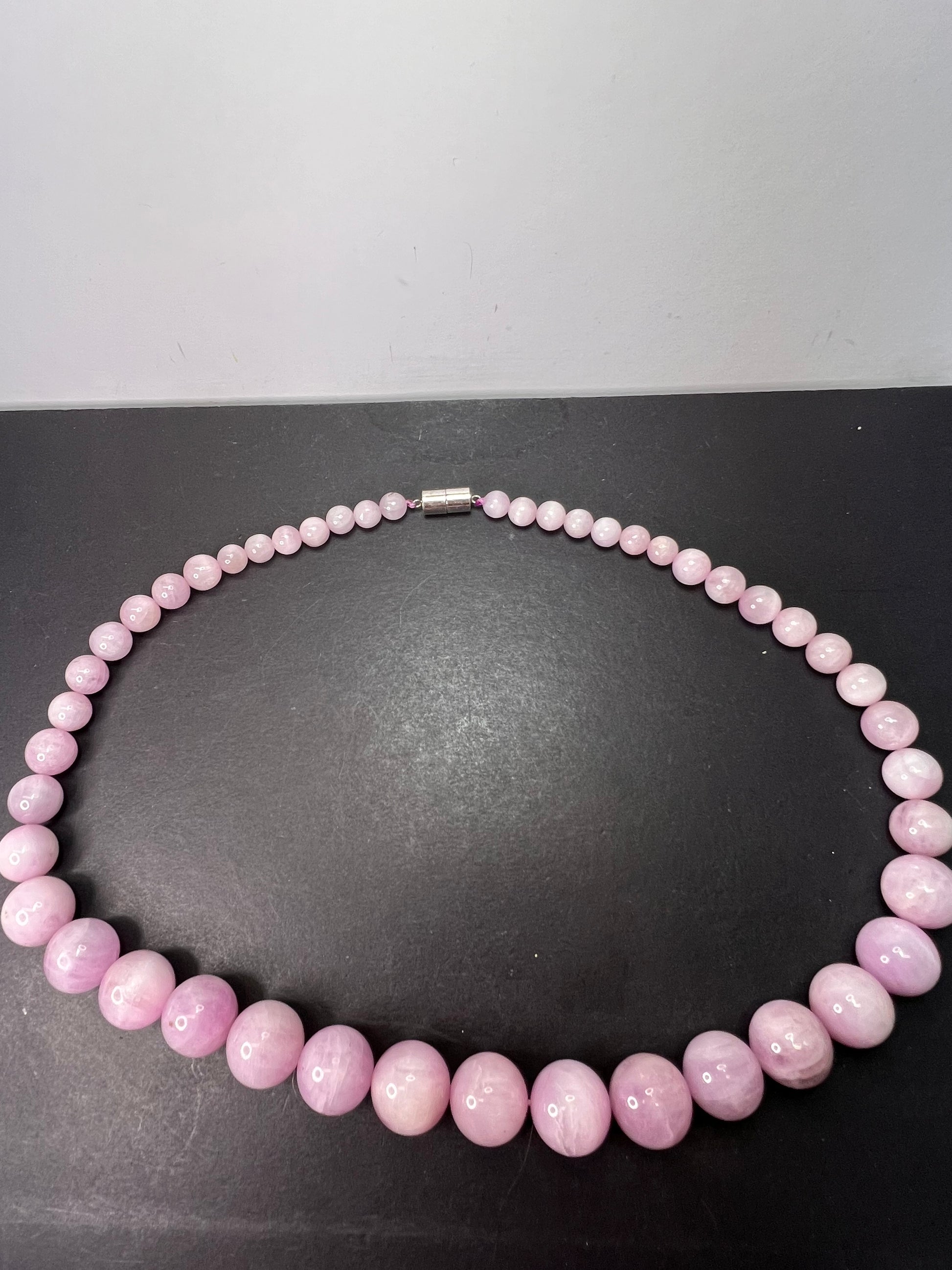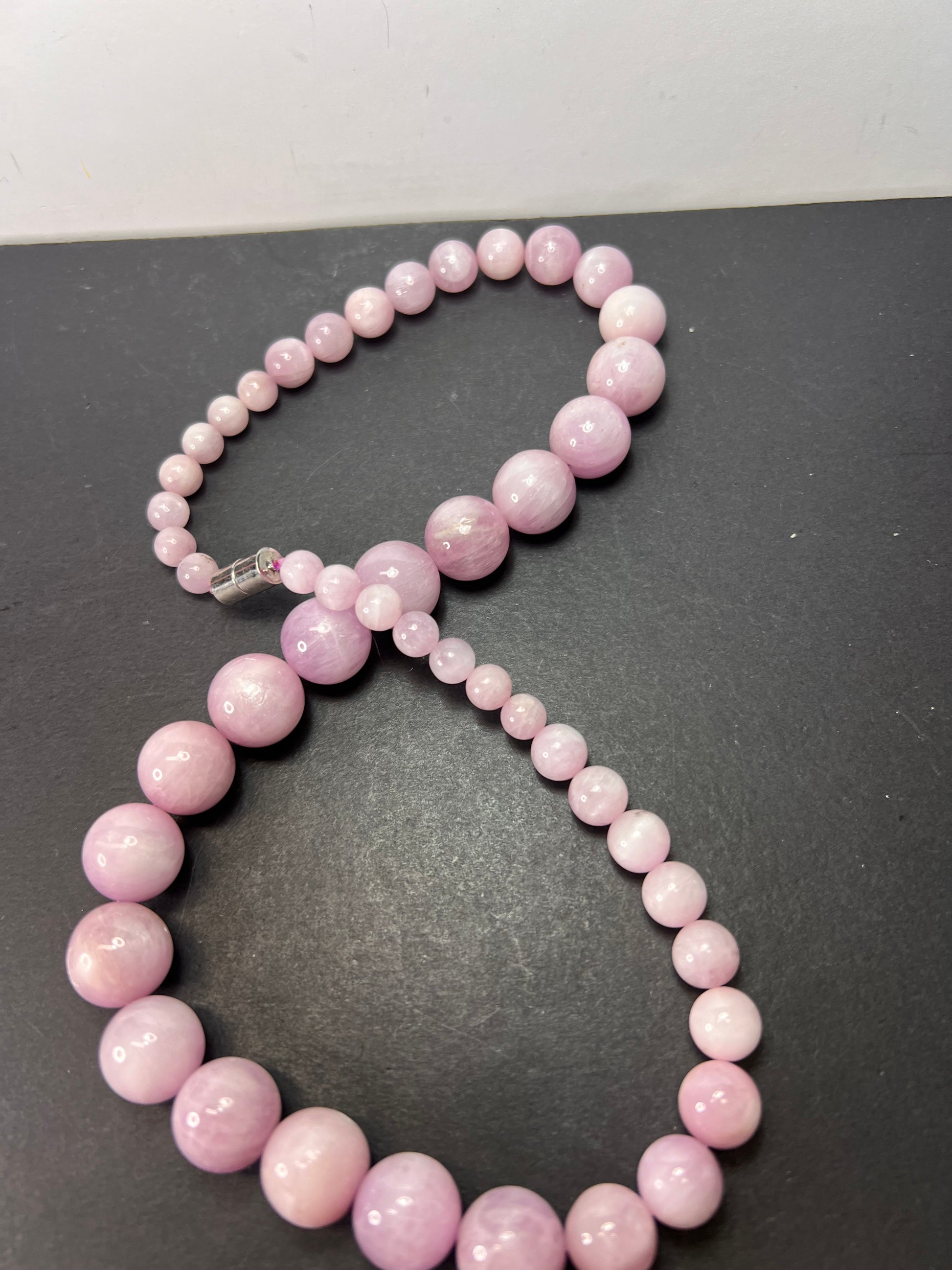 Kunzite graduated beaded 20 inch necklace with 925 magnetic clasp