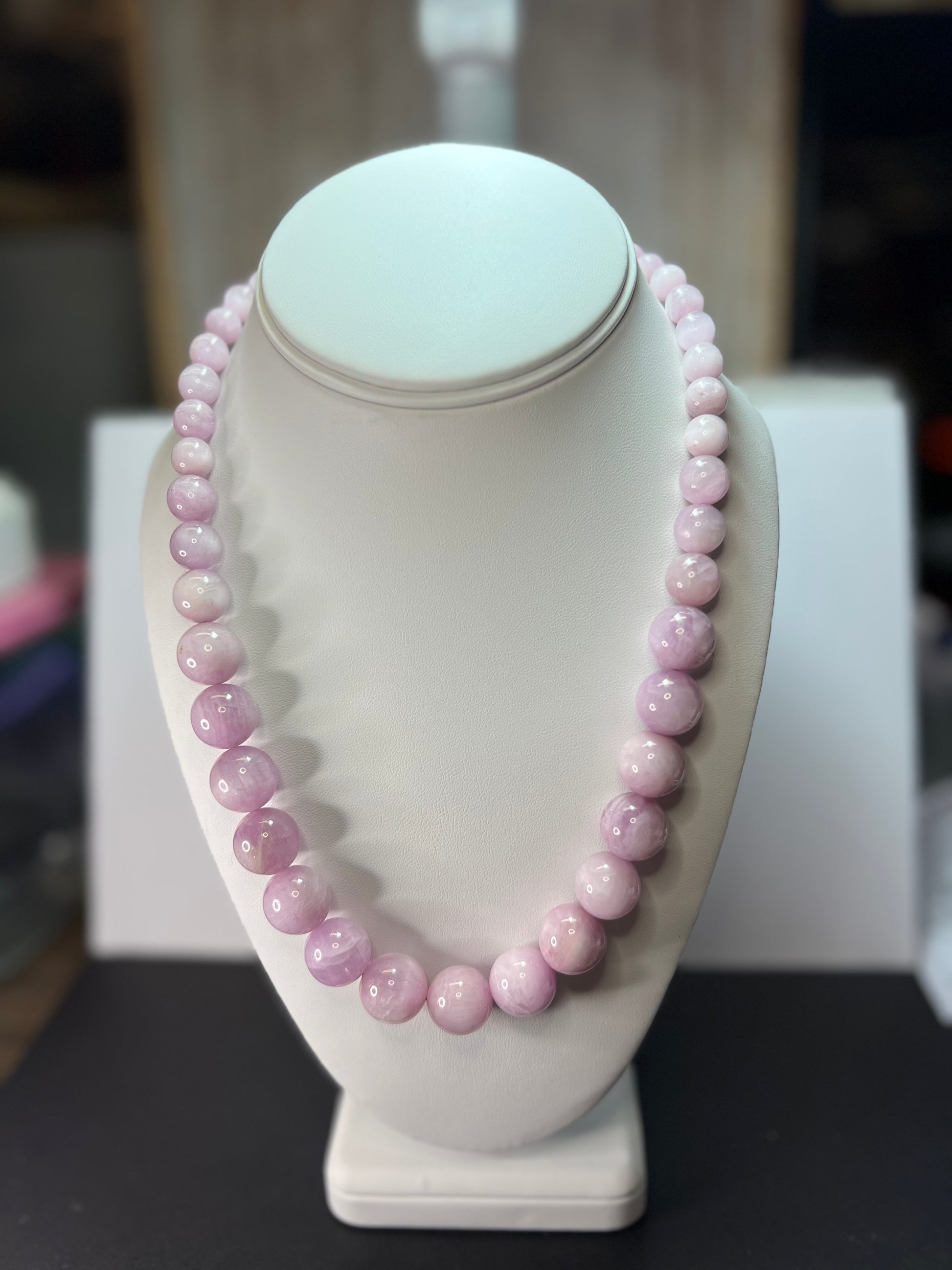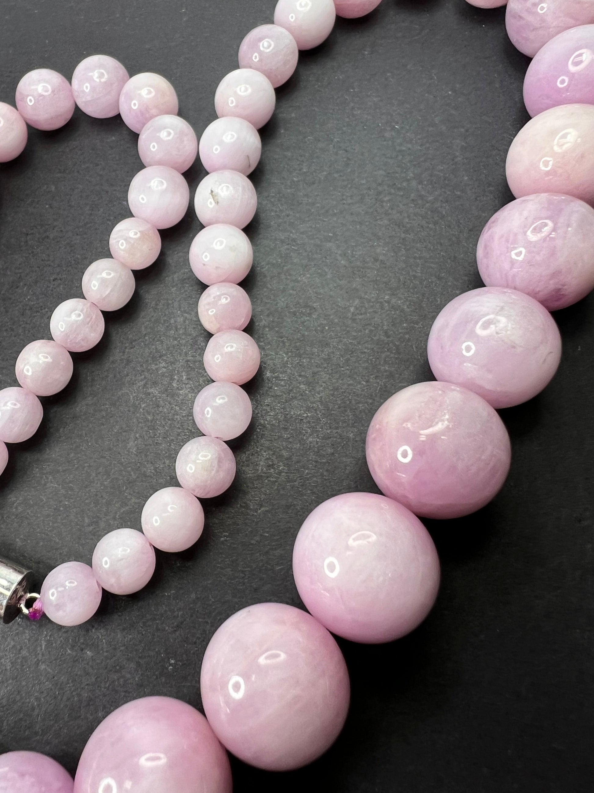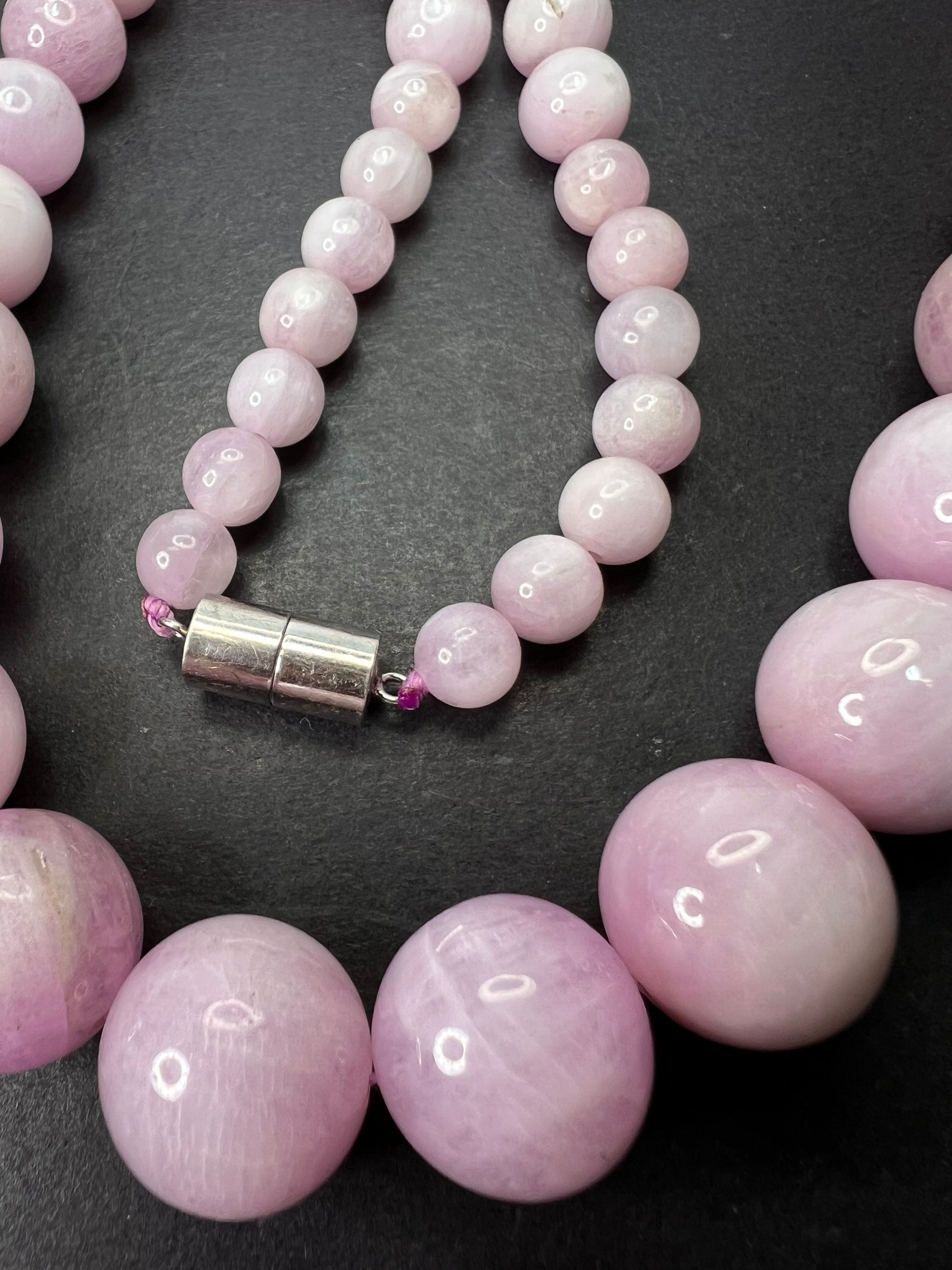 Kunzite graduated beaded 20 inch necklace with 925 magnetic clasp