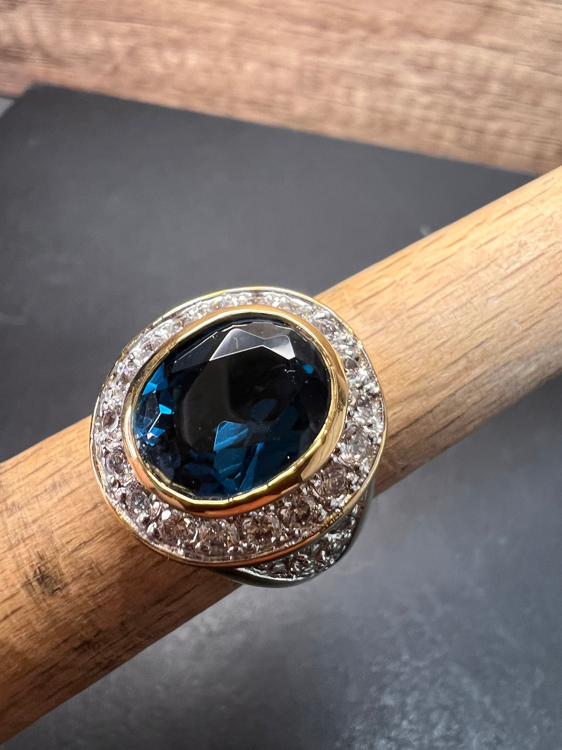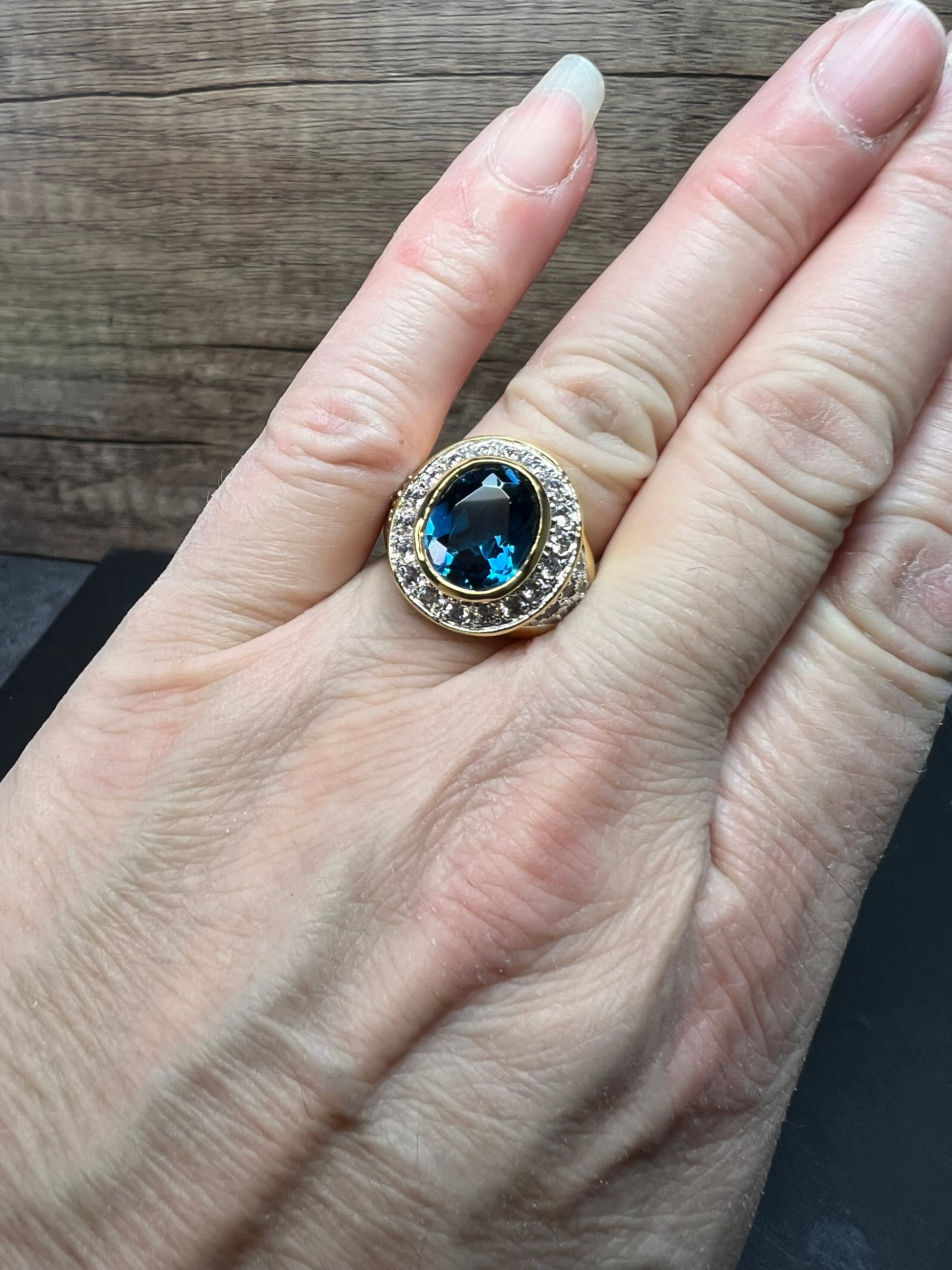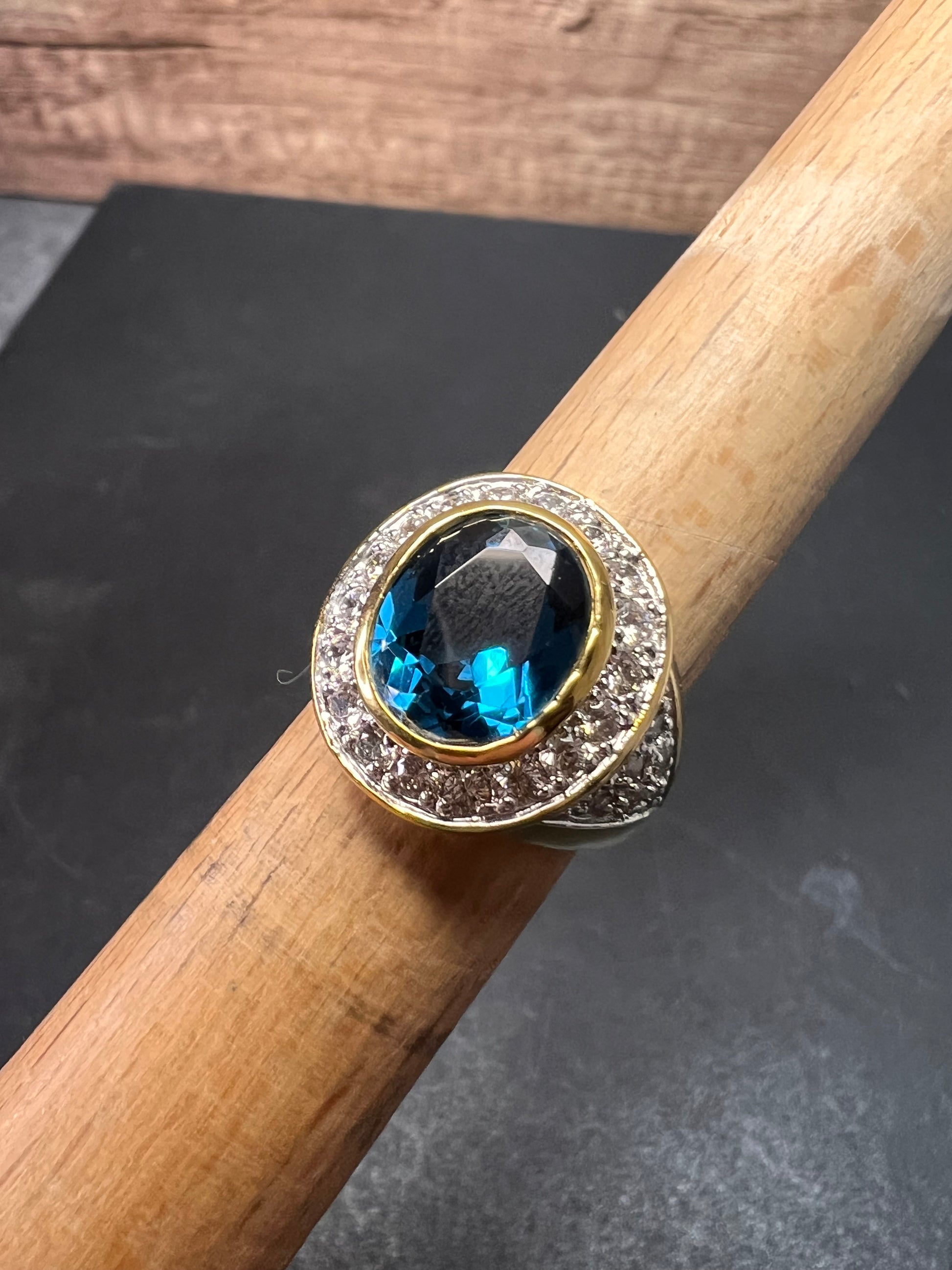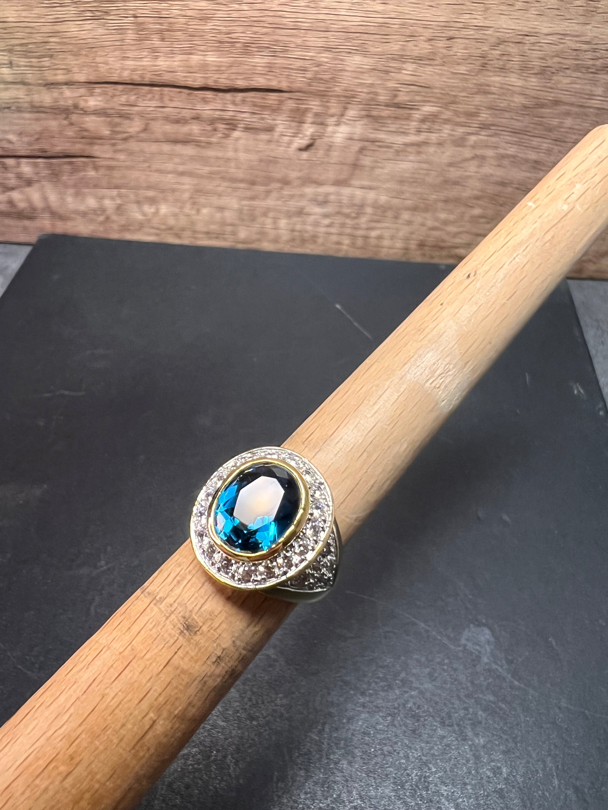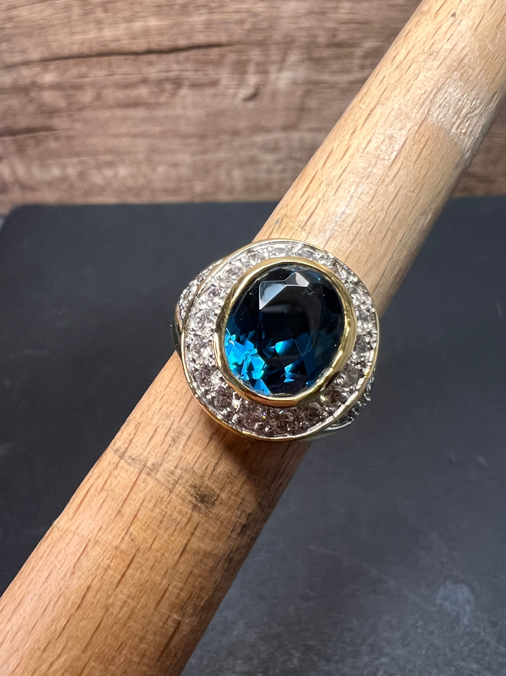 Lab blue spinel and CZ 18k rolled gold plated ring size 7