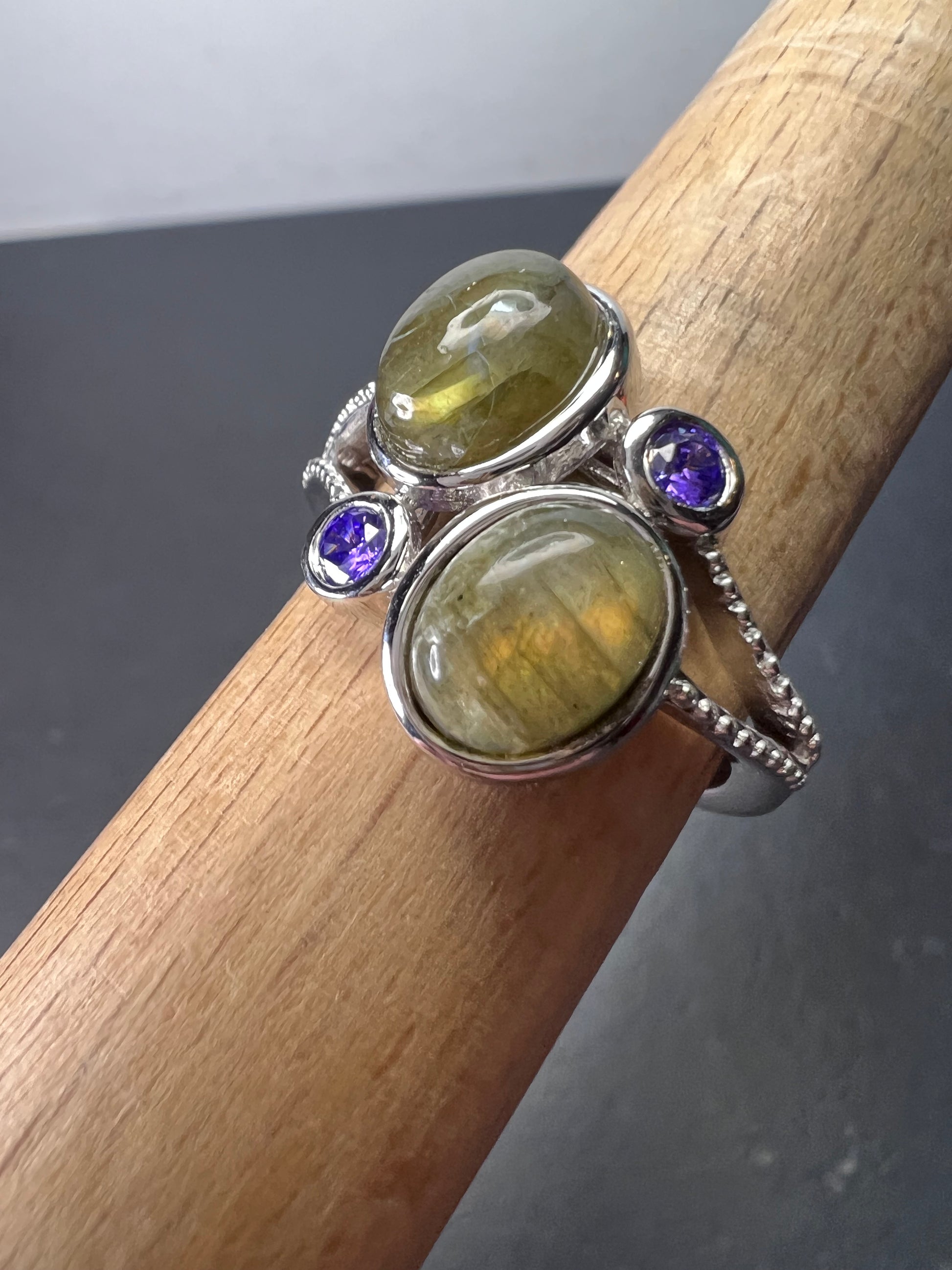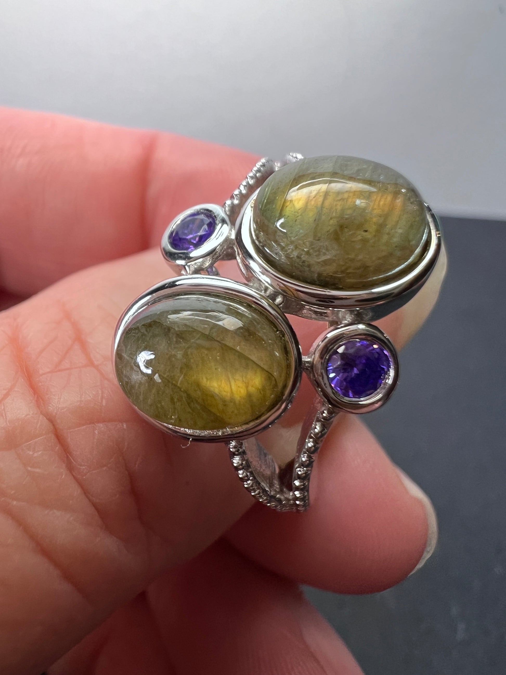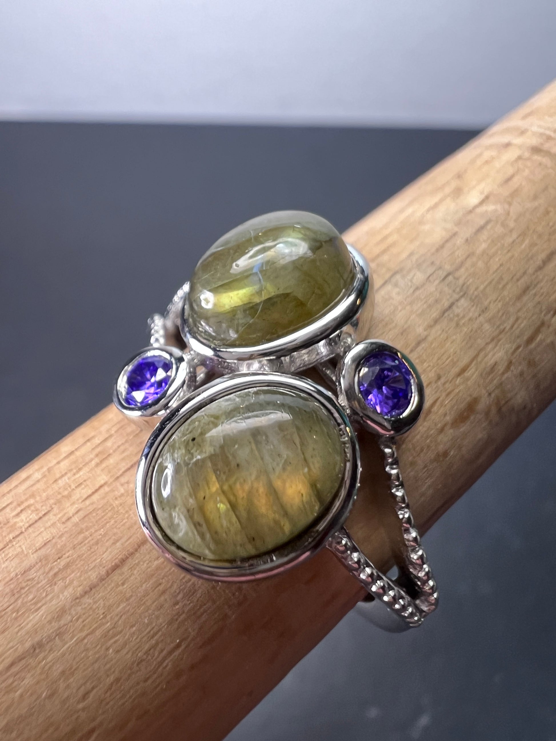 Labradorite and purple CZ sterling silver ring size 9