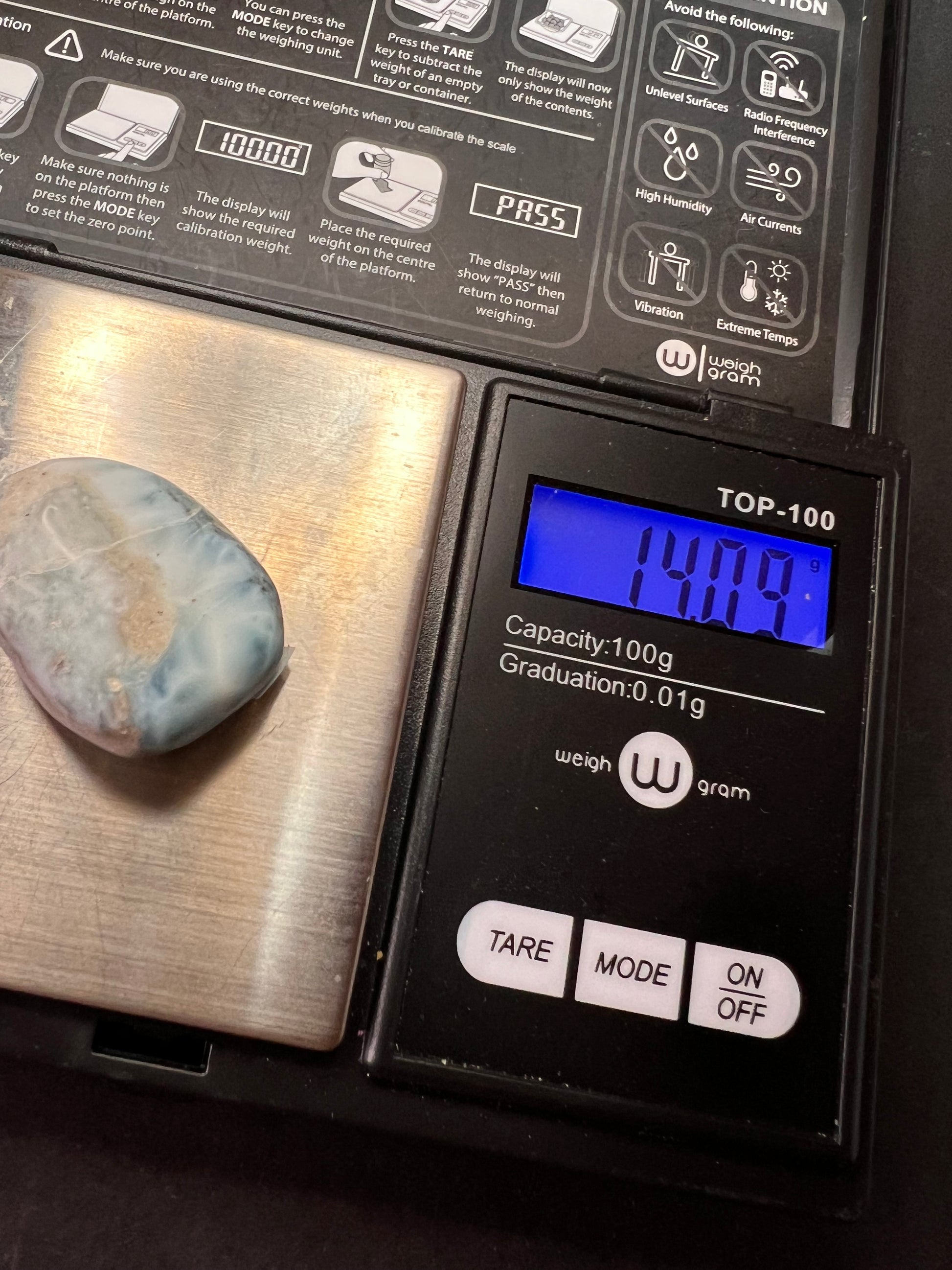 Larimar tumble from the Dominican Republic weighing 14.09 grams